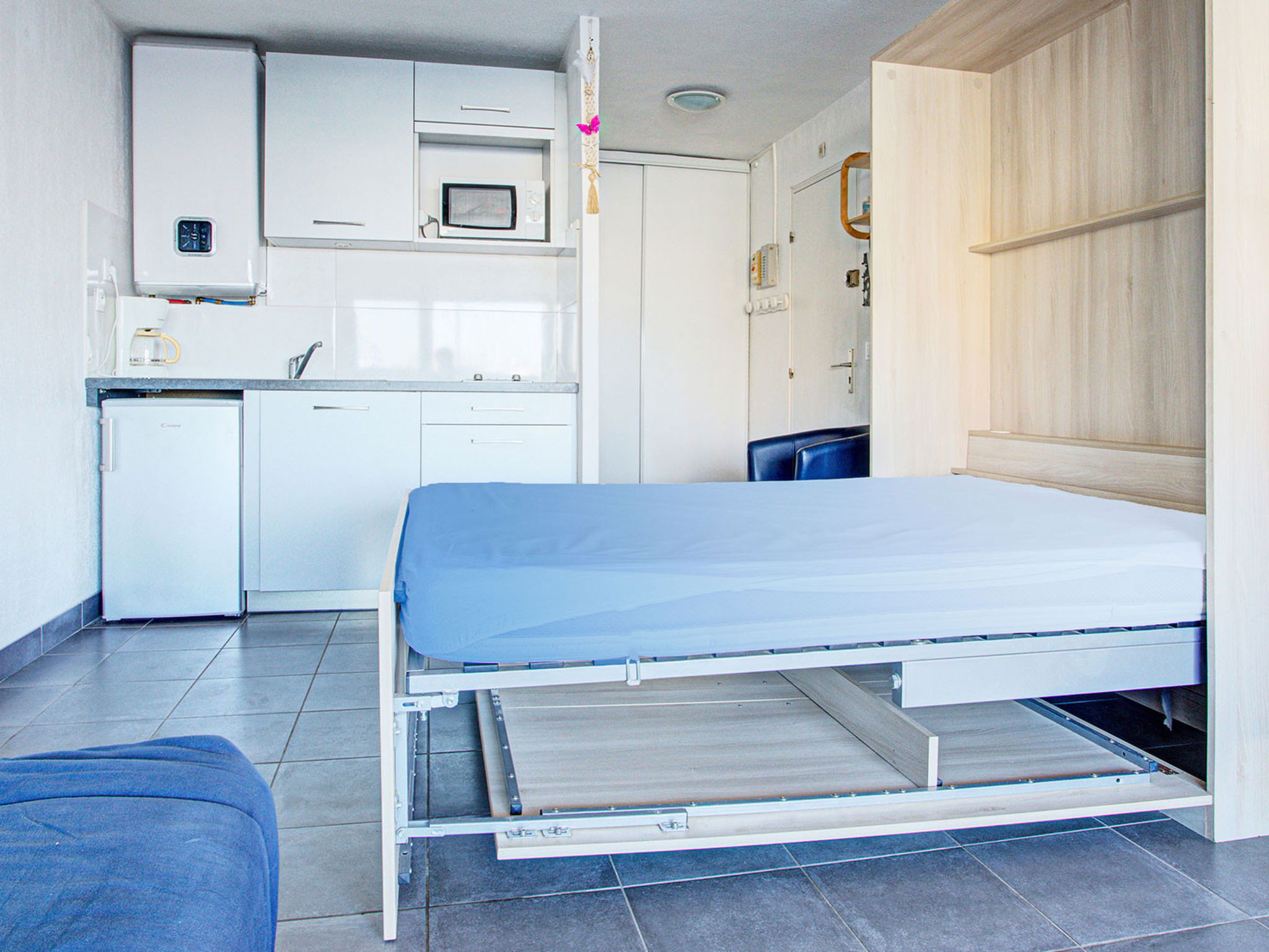 "La Croisette", 1-room studio 20 m2, on the ground floor. Object suitable for 3 adults. Living room with 2 sofabeds, 2 pull-out beds and TV. Kitchen (2 hot plates, microwave, electric coffee machine). Shower/WC. Balcony. View of the port. Please note: non-smokers only. Smoke alarm. Offer by a commercial proprietor according to Art. 155, IV, CGI