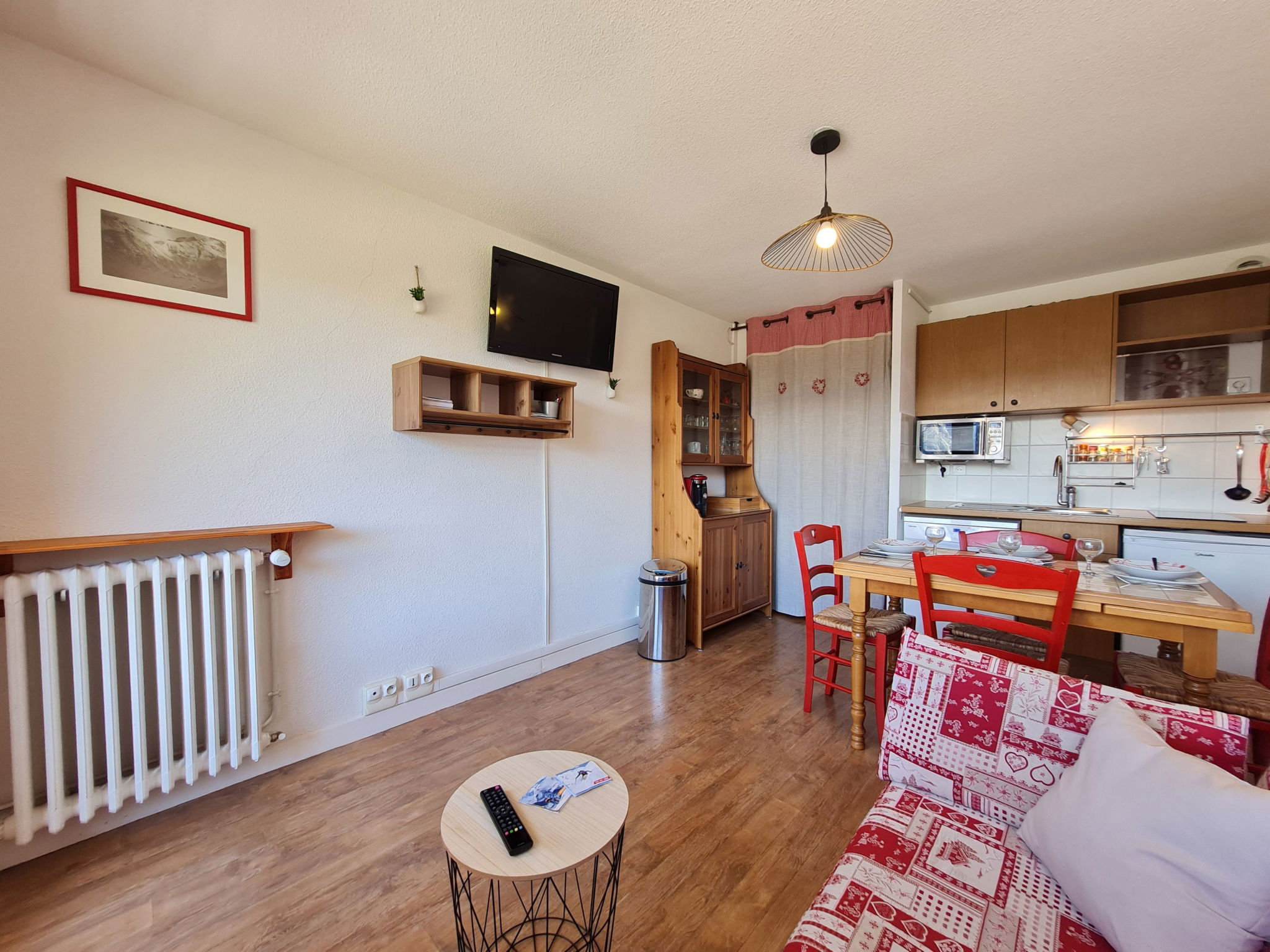 "Janremon", 1-room studio 25 m2 on 2nd floor. Object suitable for 4 adults. Living room with 1 x 2 bunk beds, TV with TV. Open kitchen (2 hot plates, dishwasher, toaster, kettle, microwave, electric coffee machine). Shower/WC. Balcony. View of the mountains and the ski run. Please note: non-smokers only. Offer by a commercial proprietor according to Art. 155, IV, CGI 38253004346HT