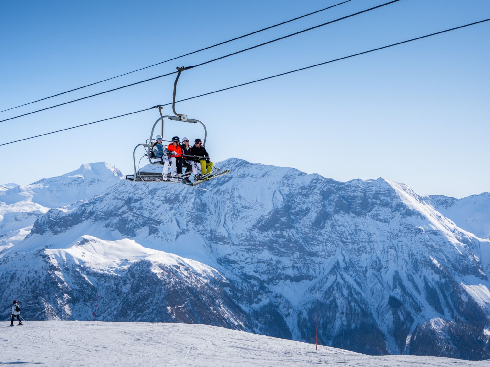 "Les Marmottes 2", 2-room apartment 60 m2 on 1st floor. Object suitable for 5 adults. 1 room with 2 beds and TV. 1 room with 1 bed and 1 x 2 bunk beds. Open kitchen (oven, Gas stove, 4 gas rings, toaster, kettle, microwave, electric coffee machine). Bath/WC. Balcony. View of the mountains. Offer by a commercial proprietor according to Art. 155, IV, CGI
