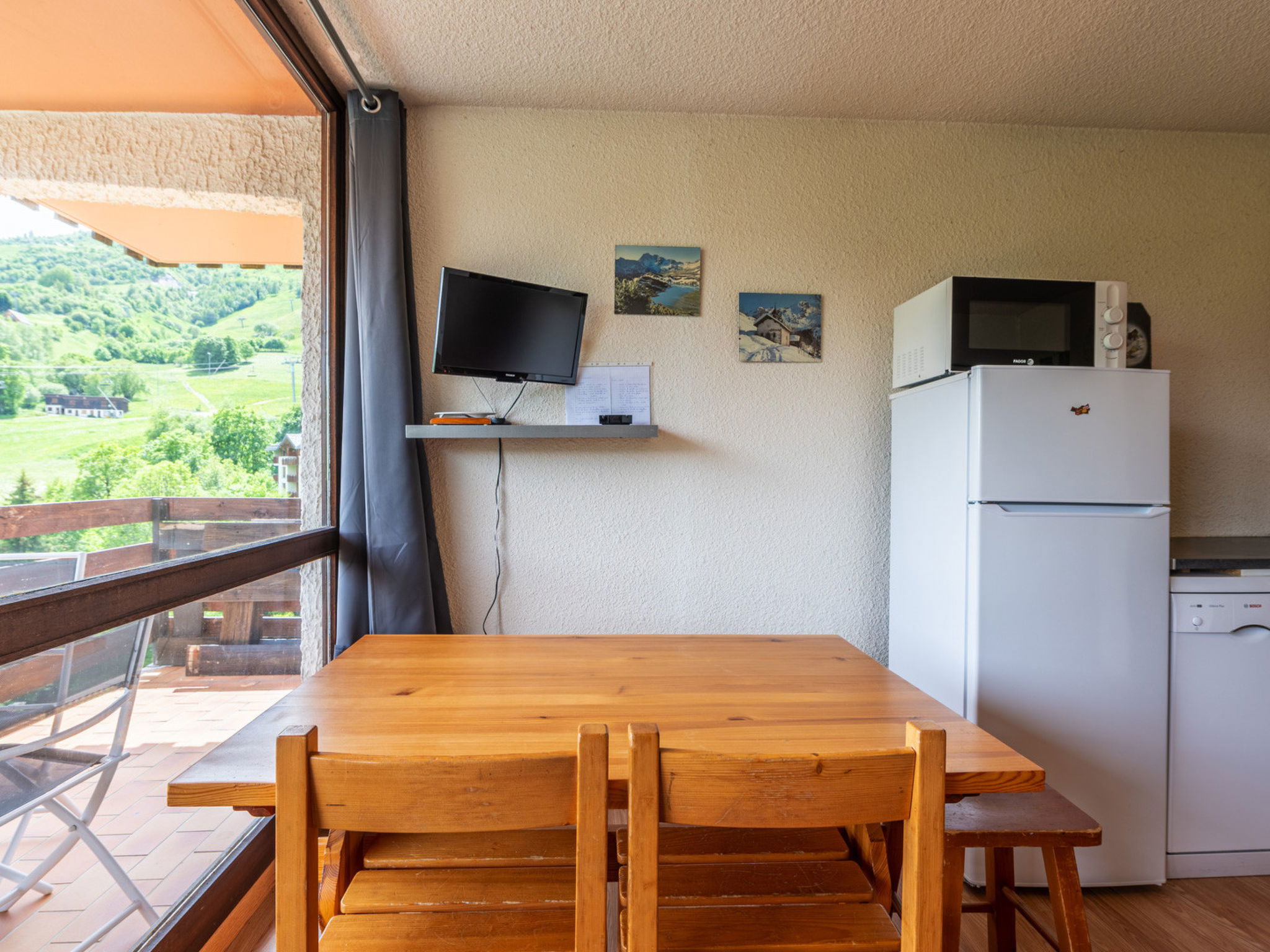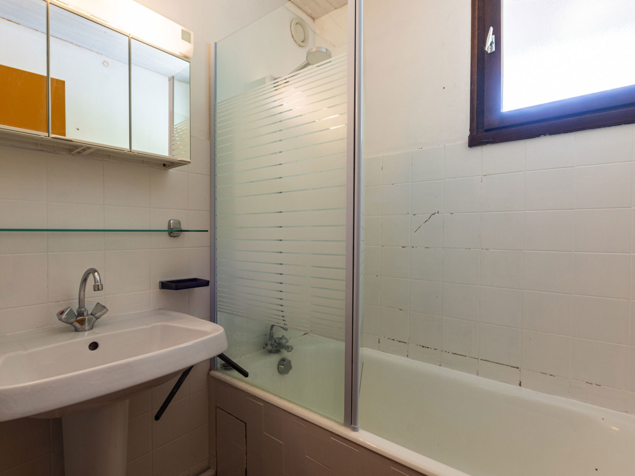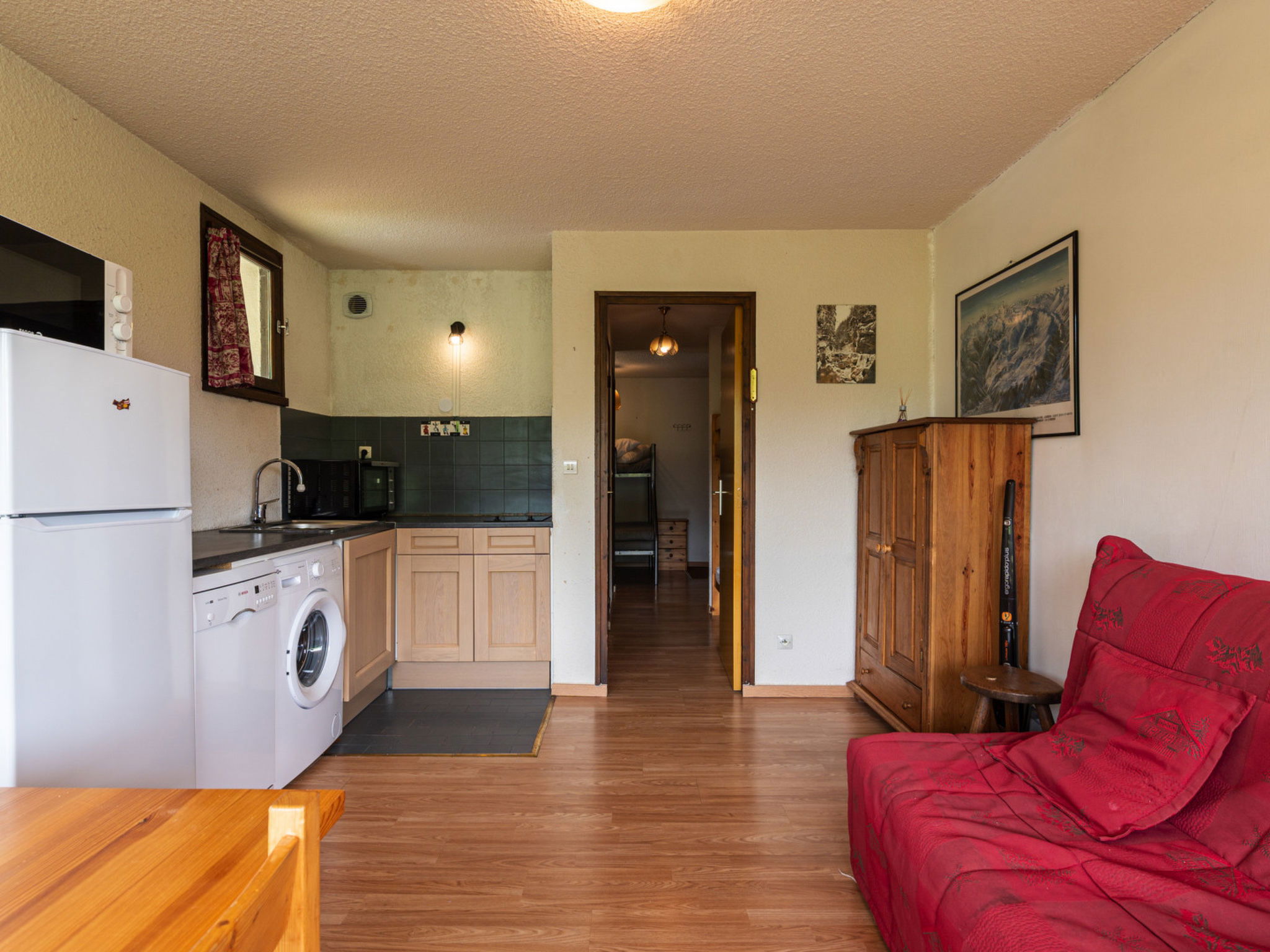 "Plein Sud", 1-room studio 35 m2 on 2nd floor. Object suitable for 7 adults. Living room with 1 sofabed and 3 x 2 bunk beds, 1 double bed, 1 pull-out bed and TV. Open kitchen (2 hot plates, oven, dishwasher, microwave, freezer, electric coffee machine). Bath/WC. Balcony. View of the mountains and the ski run. Facilities: washing machine. Please note: non-smokers only. Offer by a commercial proprietor according to Art. 155, IV, CGI