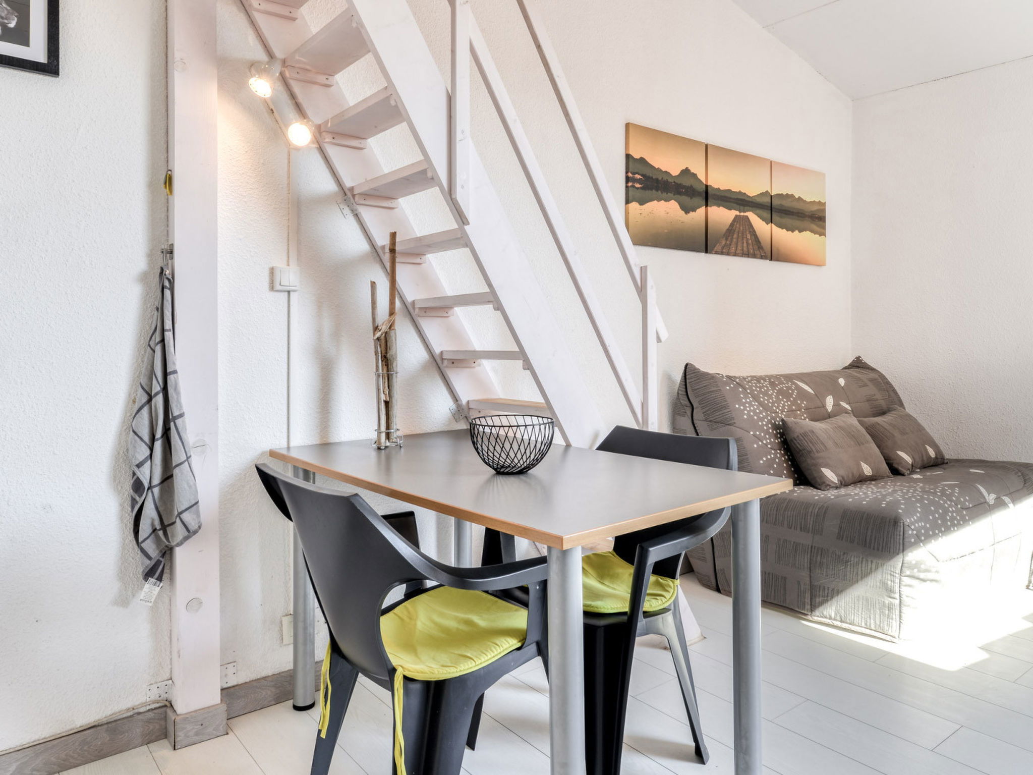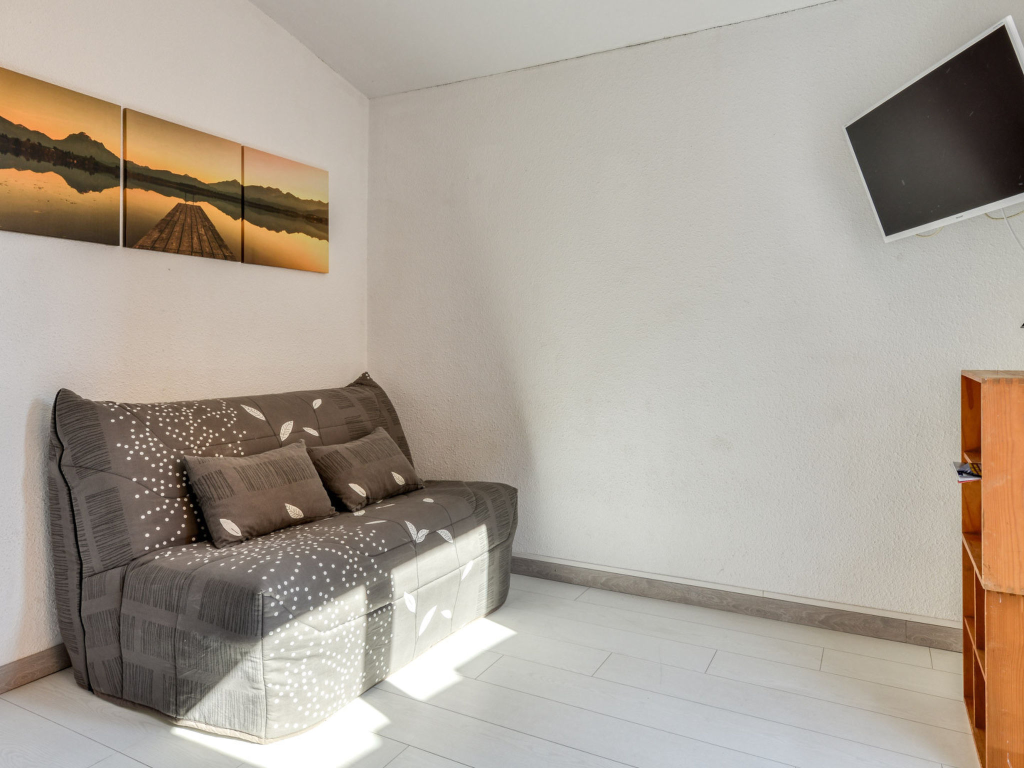 "Les 4 Soleils AB", 1-room studio 20 m2 on 1st floor. Object suitable for 4 adults. Living room with 1 sofabed, 1 double bed, 1 pull-out bed and TV. Kitchen (2 induction hot plates, microwave, freezer, electric coffee machine). Shower/WC. Terrace. Facilities: washing machine. Parking (1 car). Please note: non-smokers only. Smoke alarm. Offer by a commercial proprietor according to Art. 155, IV, CGI