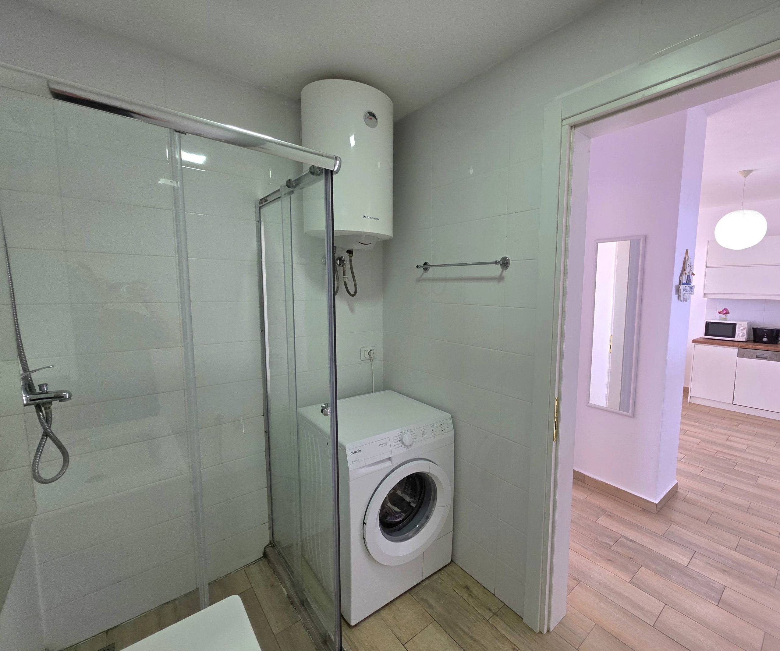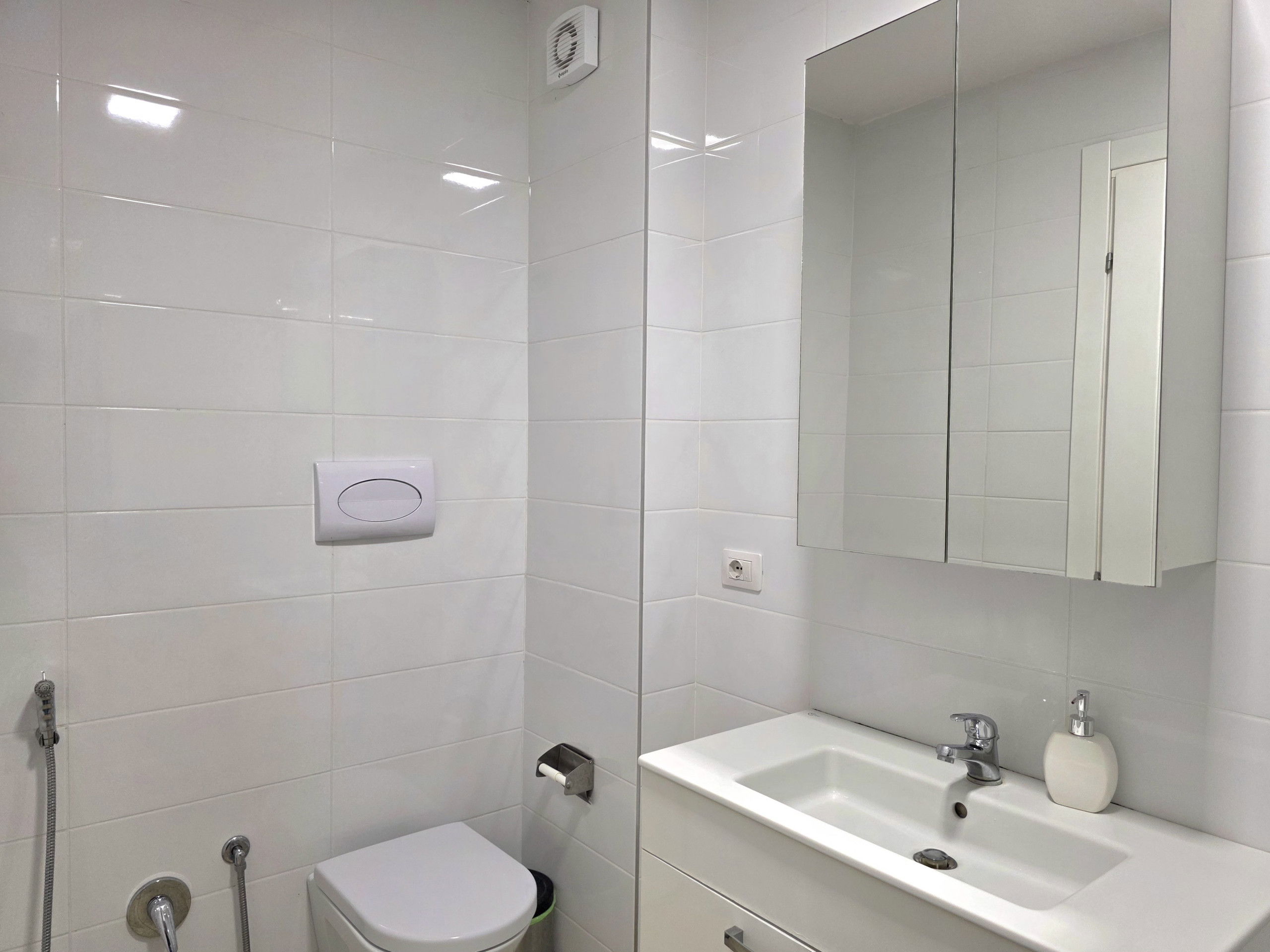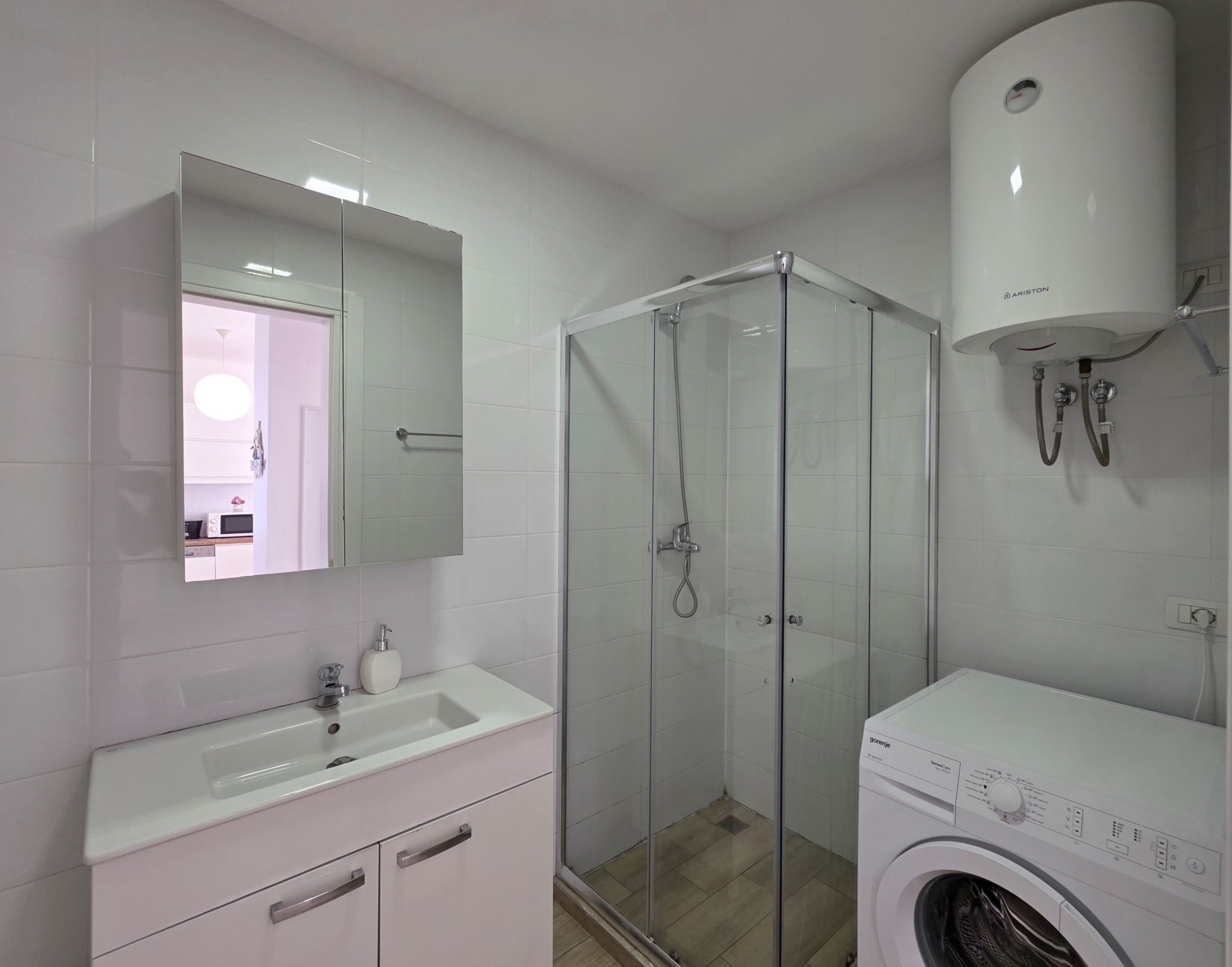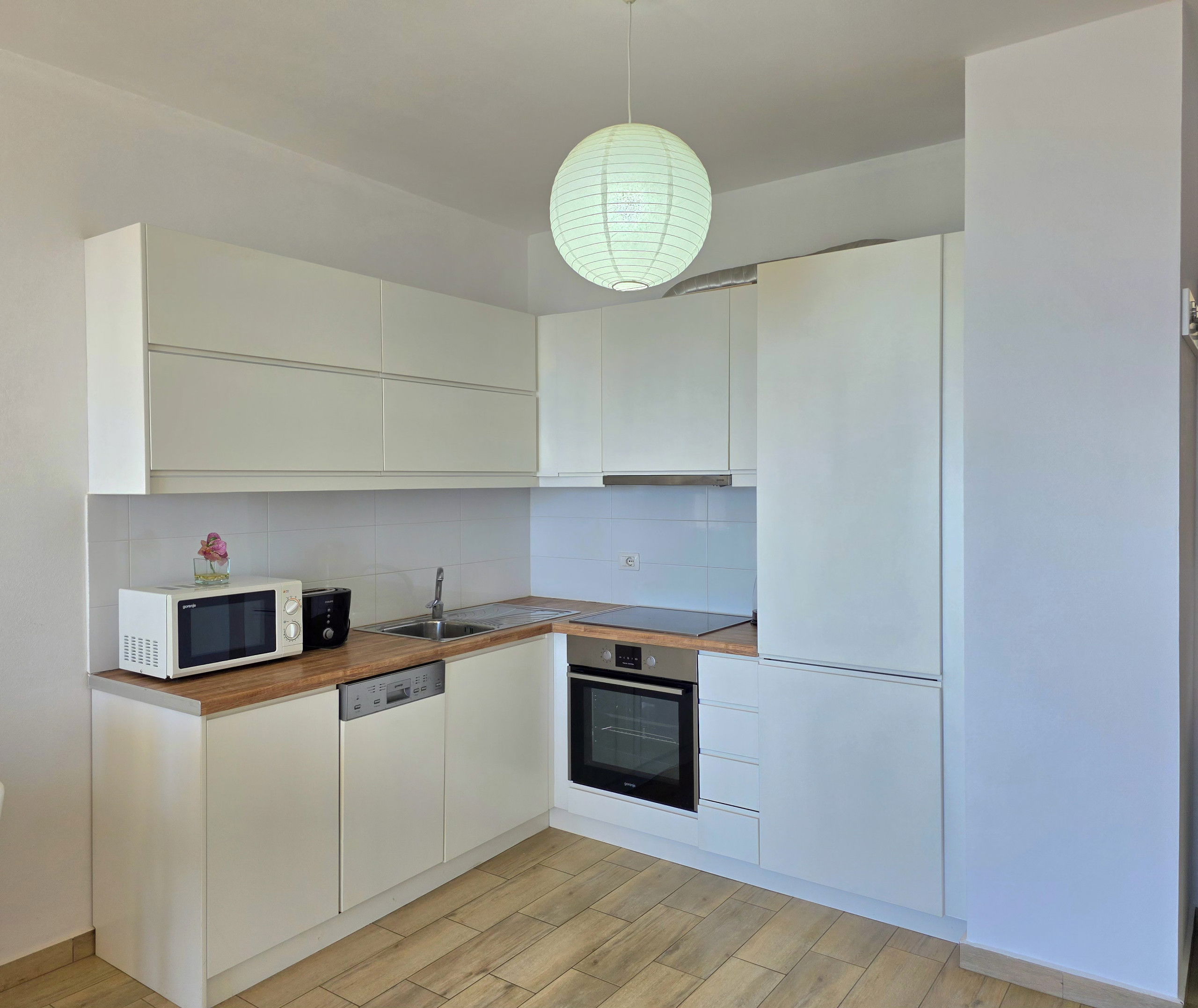 The apartment features one bedroom with a comfortable queen-size bed and a double sofa bed in the living area, accommodating up to four guests. The modern kitchen is fully equipped with a stove, fridge, freezer, oven, and all the necessary kitchenware, allowing you to prepare delicious meals during your stay. The bathroom comes with a shower, and the apartment is equipped with central heating and air conditioning for your comfort.