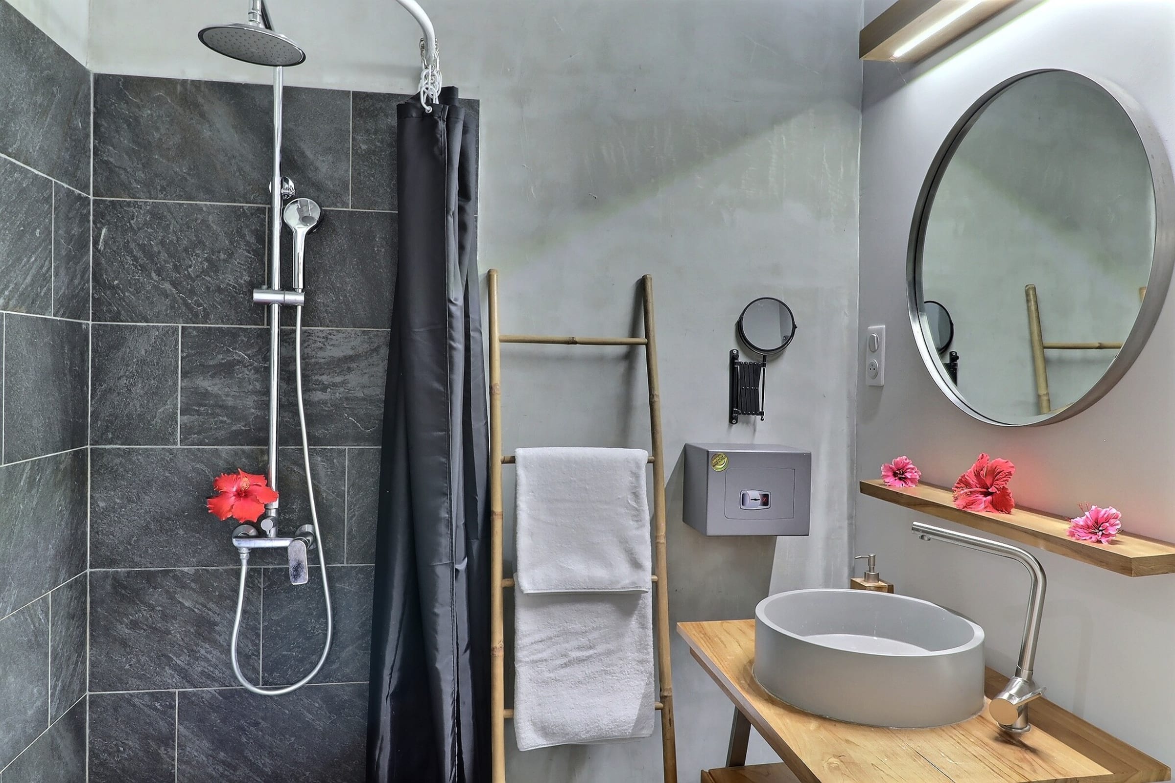 The outdoor spaces – infinity pool, garden, terrace – are shared with the owner, who resides in the main house. She is very rarely present during the day, ensuring great tranquility while remaining available if needed.