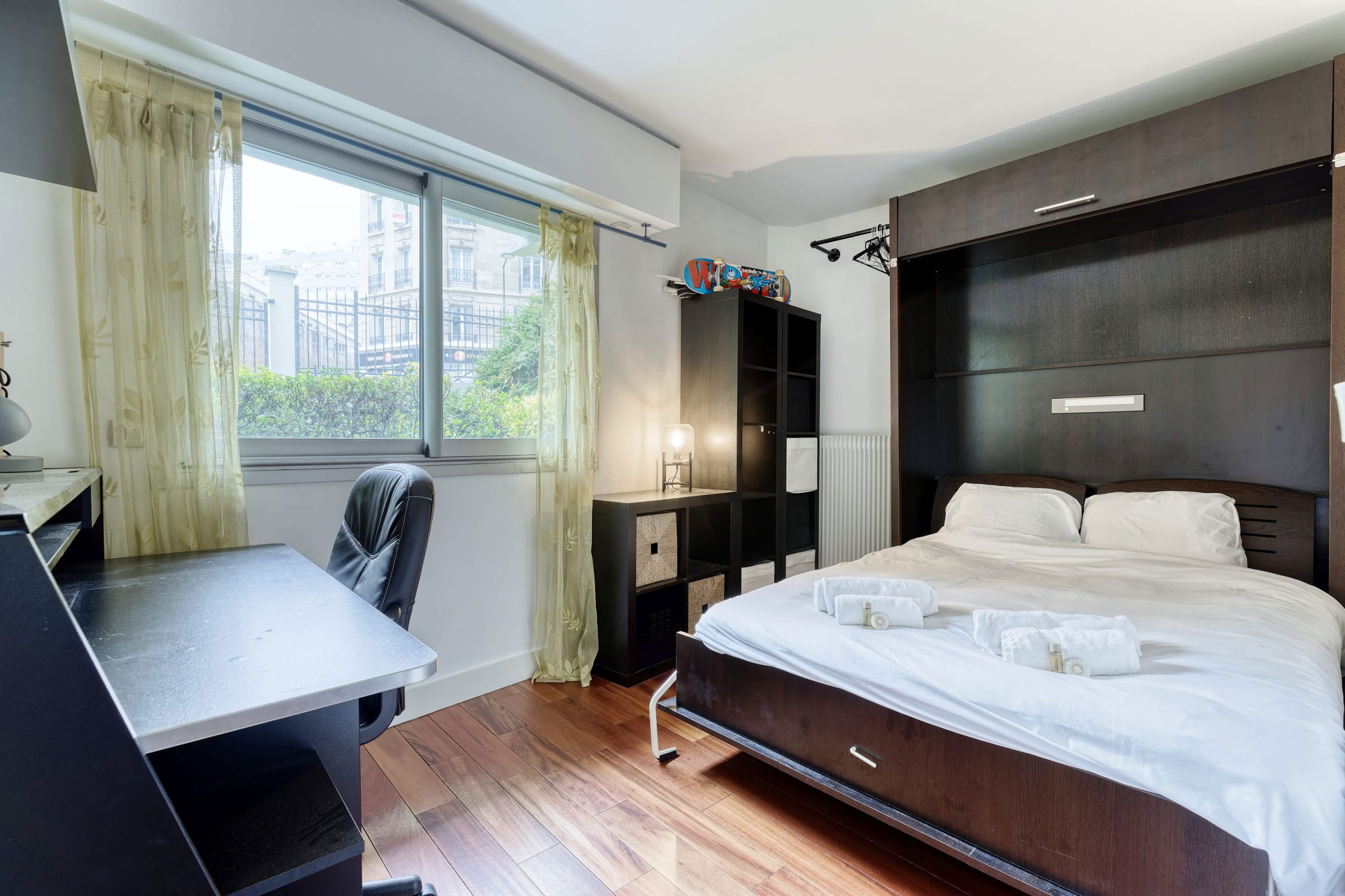 - one bedroom with queen-size bed (160 cm) and work desk,
