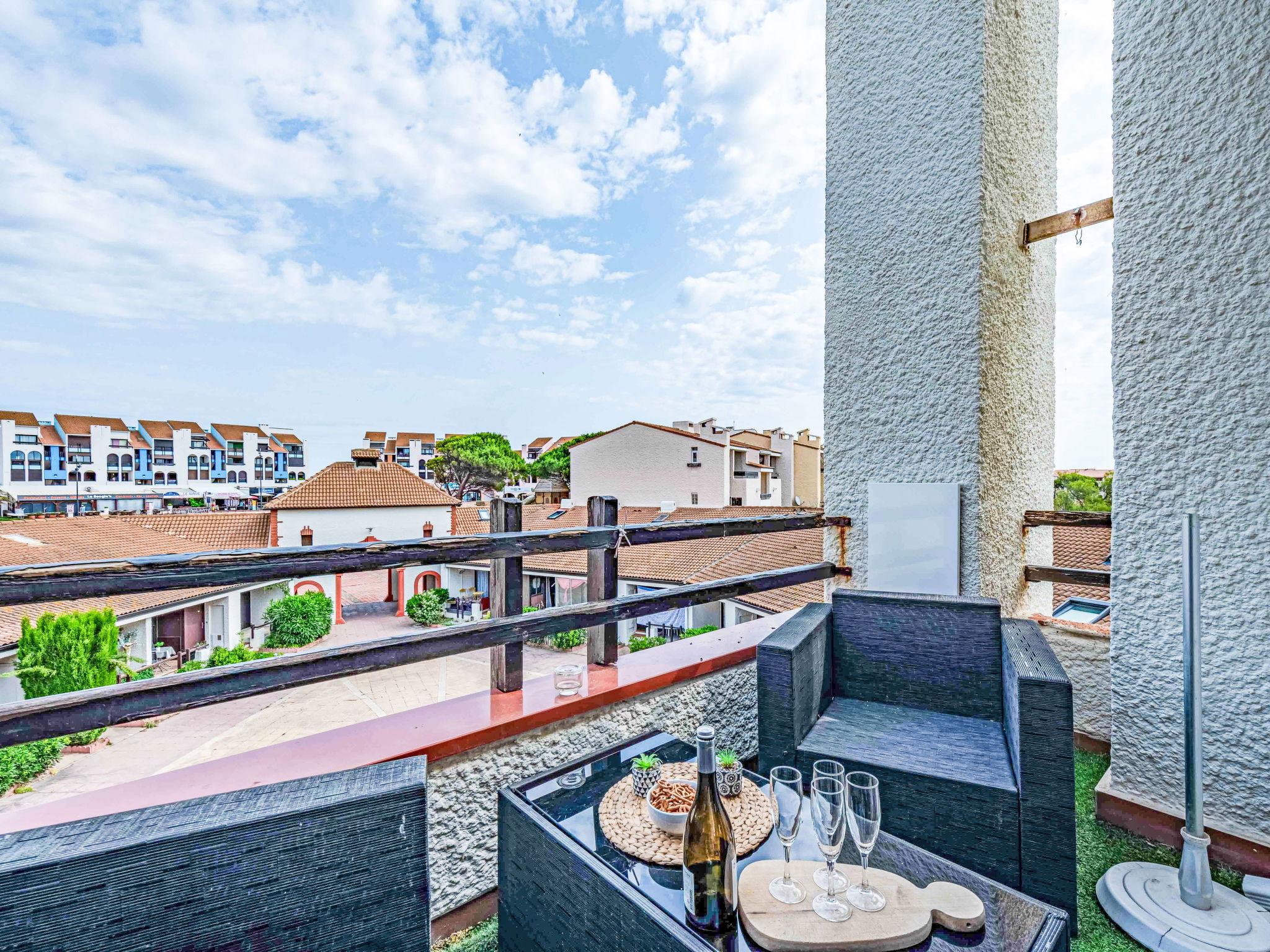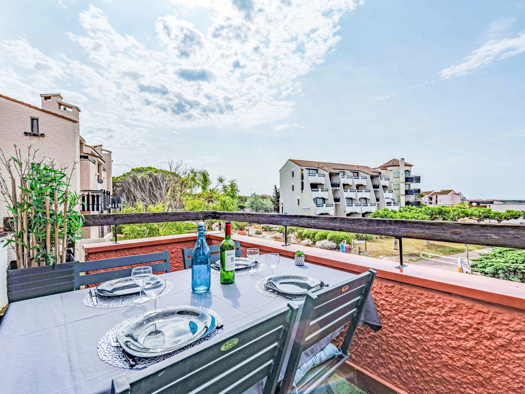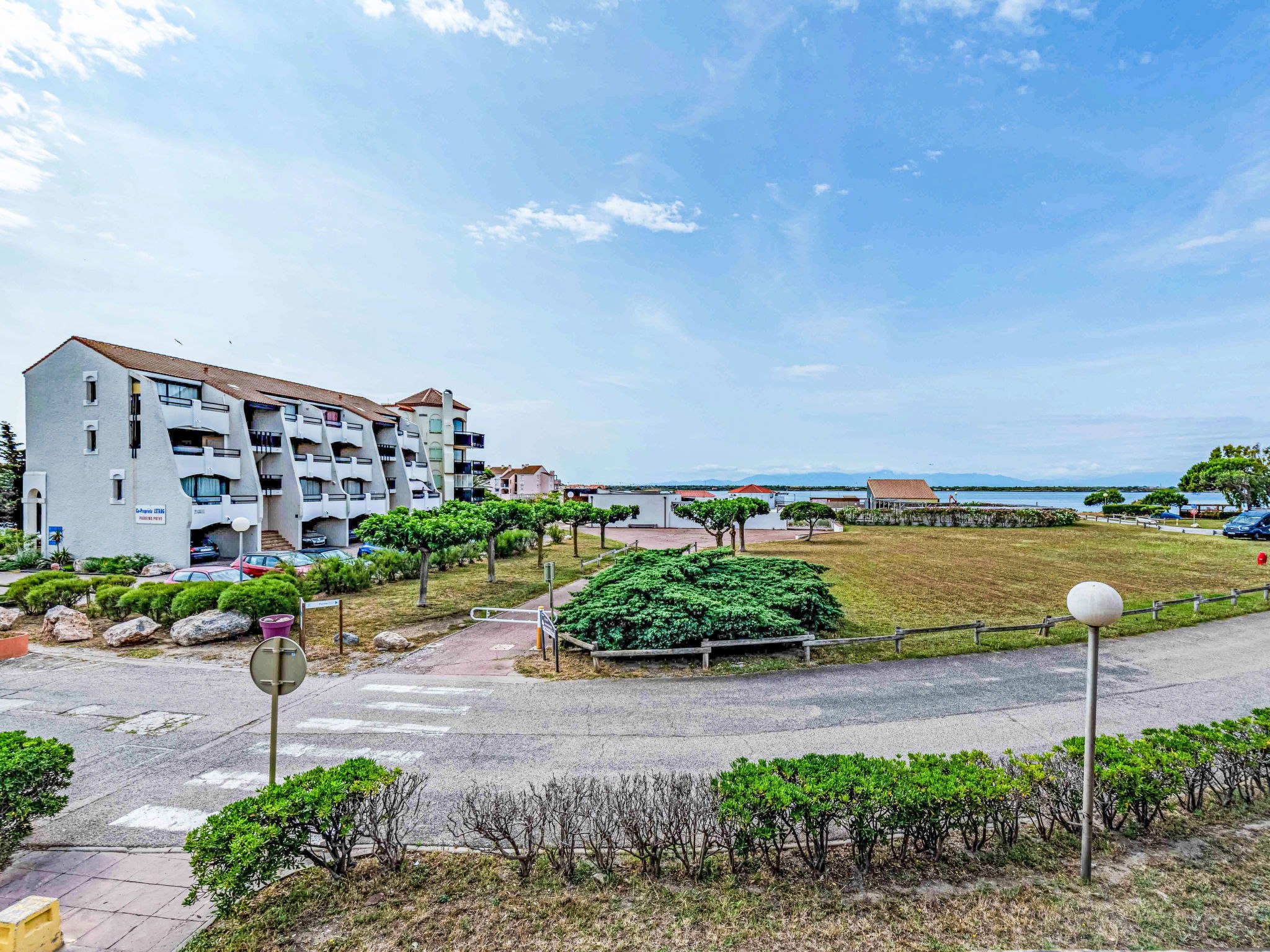 Coudalère 5 km from Barcarès centre: As part of the water restriction measures linked to the drought in some of our departments, please note that the rental swimming pool may be closed by prefectural decree. Set of residences with 3 heated swimming pools including 1 children's pool, 1 10m/15m pool and a 25m/15m pool (open from 15.04 to 15.10) free of charge and 5 paying tennis courts. Residence "Sombrero", 3 storeys. In the district of de la Coudalère, 2.5 km from the sea, 50 m from the lake, 2.5 km from the beach. For shared use: natural pond, 2 swimming pools (10 x 15 m, seasonal availability: 15.Apr. - 15.Oct.). Children's pool, tennis (extra), basketball (extra), children's playground (slide), public parking. Shop, grocery 100 m, supermarket 6 km, restaurant, bar, bakery, café 100 m, bus stop "La Coudalère" 950 m, railway station "Perpignan" 22 km, sandy beach 2.5 km. Sailing school 50 m, minigolf 1.3 km, riding stable 12 km. Nearby attractions: Réserve Africaine de Sigean 41 km, Aqualand Port Leucate 7 km, parcours aventure 7 km, cinéma 5 km, Téleski nautique site des dosses 5 km, Spot de windsurf 50 m. Well-known lakes can easily be reached: Lac de villeneuve de la Raho 34 km. Hiking paths: Sentier du guetteur 8 km, la forteresse de salses 15 km, Sentier du littoral Collioure 40 km. Please note: car recommended, no lift. Entertainment in the season. The keys‘ handover takes place by the agency Barcares 3 km. The apartment is located in a zone with limited traffic. The photograph shows a typical example. Additional accommodations can be booked.