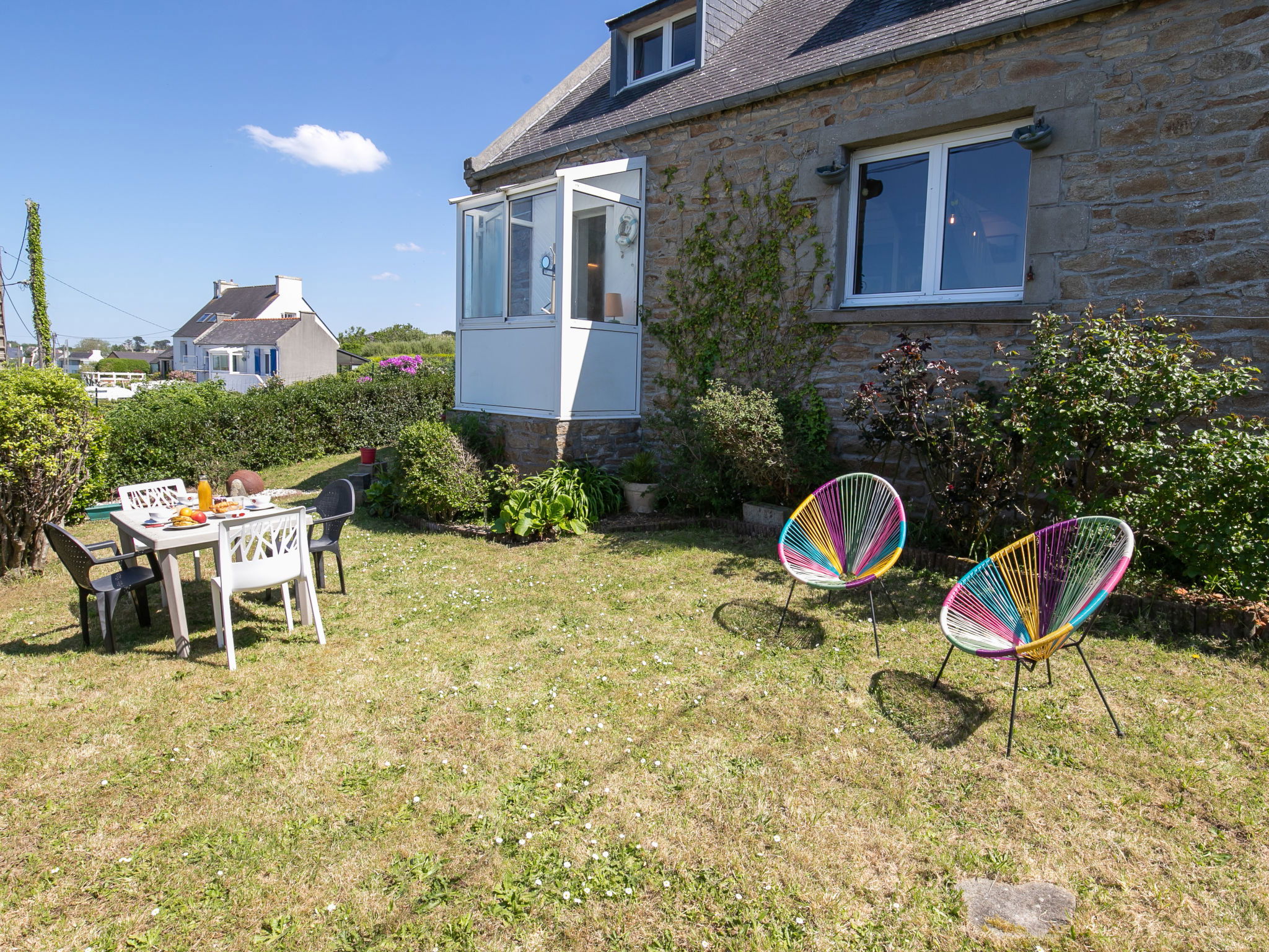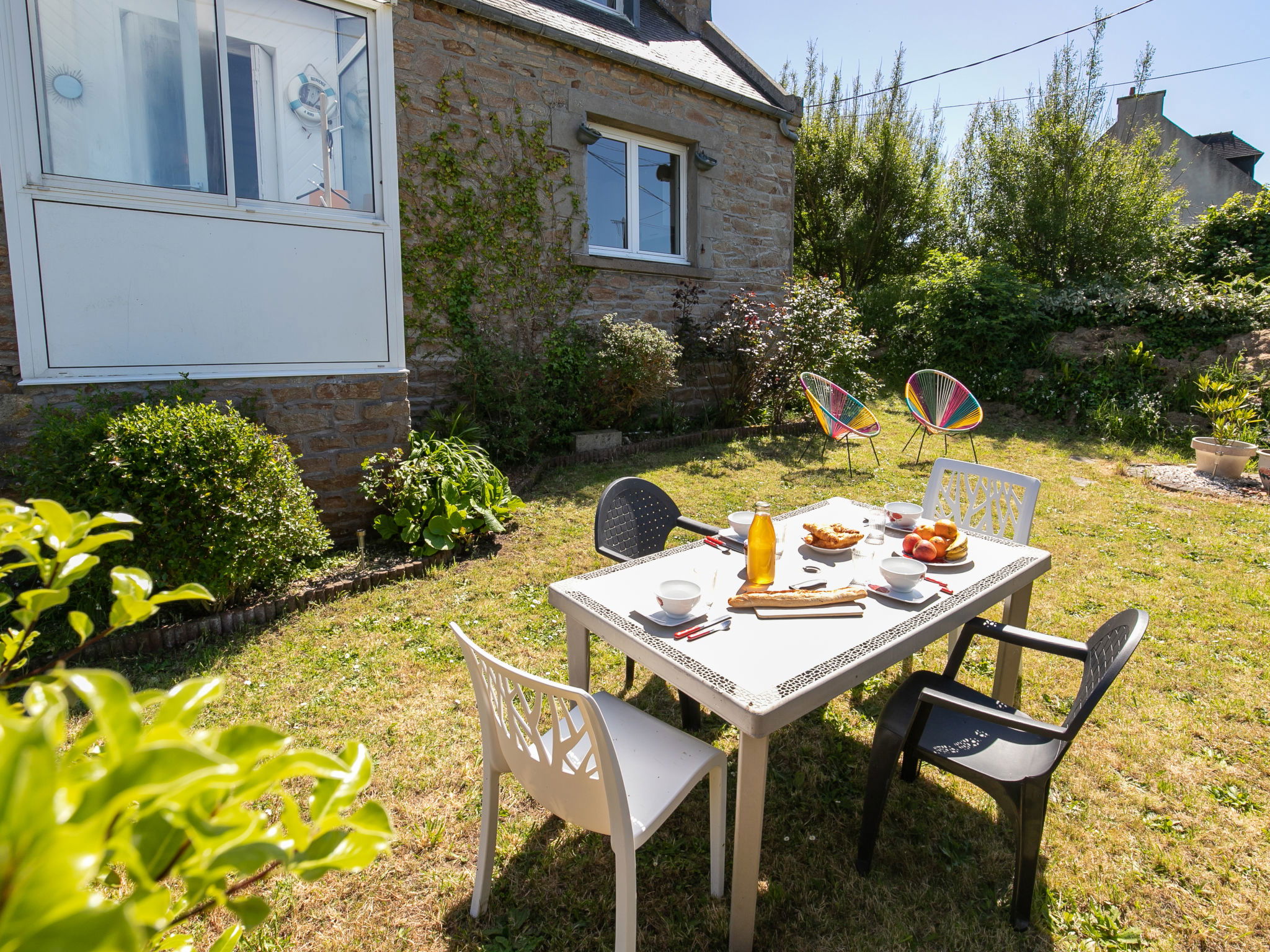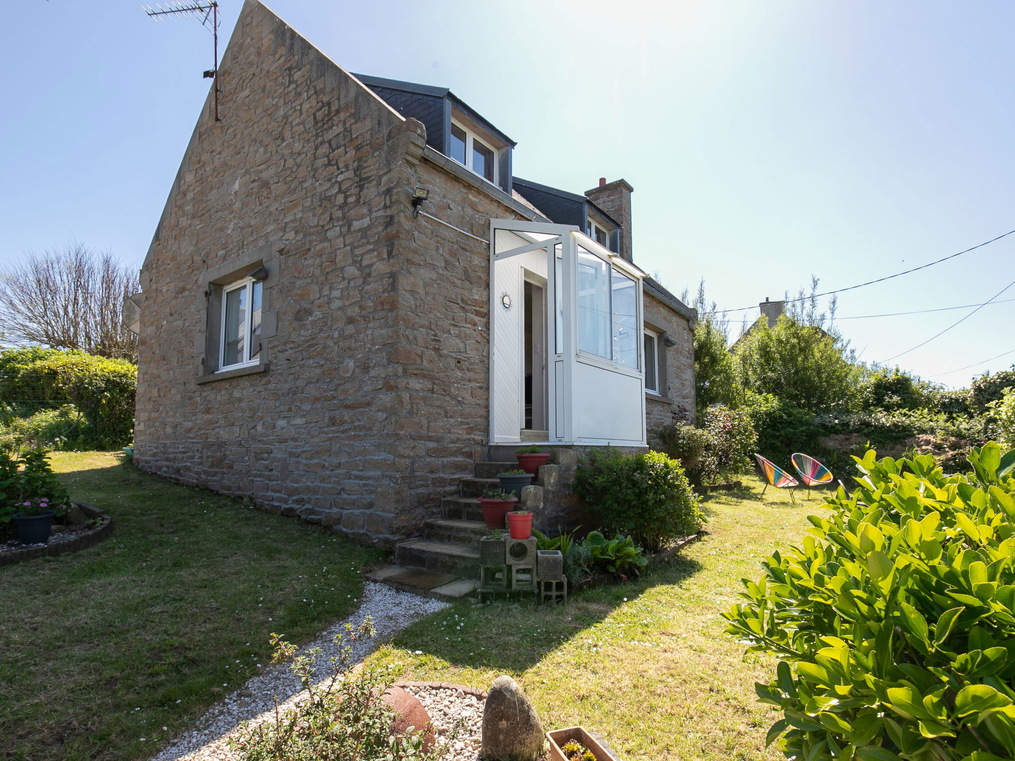 Cosy single-family house "La Grande Roche", renovated in 2024. 500 m from the centre of Porspoder, 28 km from the centre of Brest, in the residential district, excellent location: right in the centre but still quiet, 600 m from the sea, 600 m from the beach. Private: property 400 m2 with lawn and wildlife garden. In the house: storage room for bicycles. Parking (for 2 cars) at the house. Shop, grocery 500 m, supermarket 1 km, restaurant 550 m, bakery 500 m, bicycle rental 200 m, bus stop "Breiz'h Go, Park Nevez" 600 m, sandy beach "Plage du Bourg" 600 m, outdoor swimming pool 12 km. Sports harbour 6 km, golf course (18 hole) 12 km, tennis, indoor tennis centre, walking paths from the house 400 m. Nearby attractions: La Récré des trois Curés 20 km, Parc animalier 12 km, Lannilis 29 km, Le Conquet 32 km, Pointe de St Mathieu 28 km, Saint Renan 18 km.