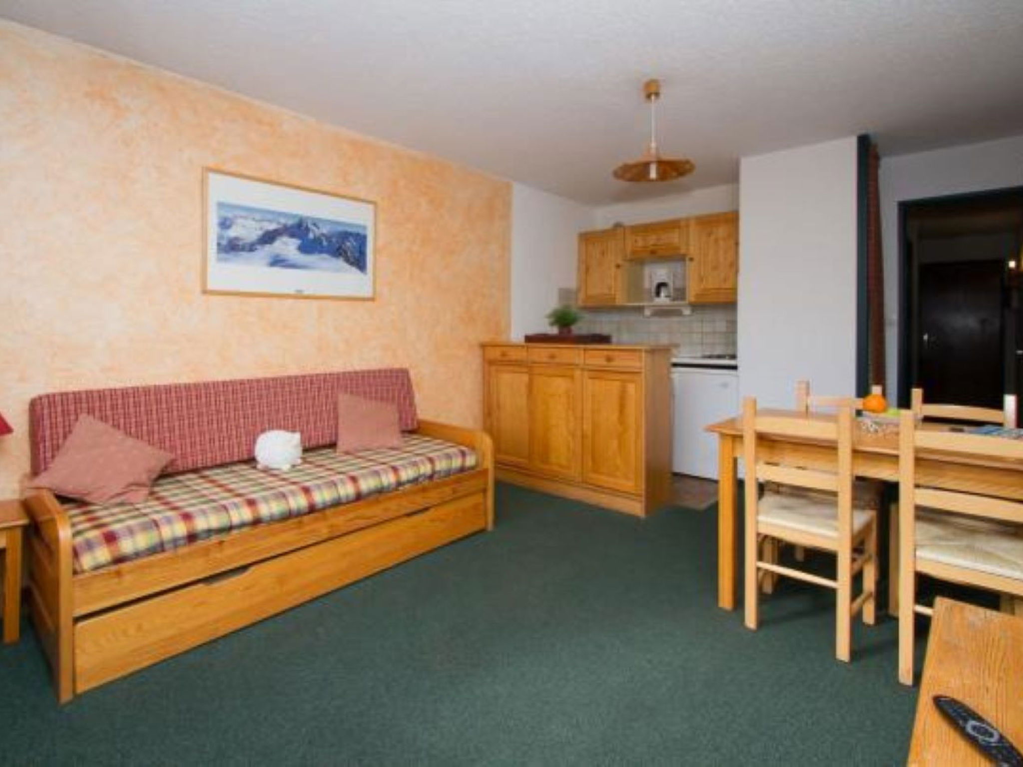 "Meijotel B", 1-room studio 30 m2 on 2nd floor. Object suitable for 4 adults. Living room with 2 sofabeds and 1 x 2 bunk beds, TV. Open kitchen (2 hot plates, oven, dishwasher, toaster, electric coffee machine). Bath/WC. Balcony. View of the mountains. Please note: non-smokers only. Smoke alarm. Offer by a commercial proprietor according to Art. 155, IV, CGI 38253003569WF