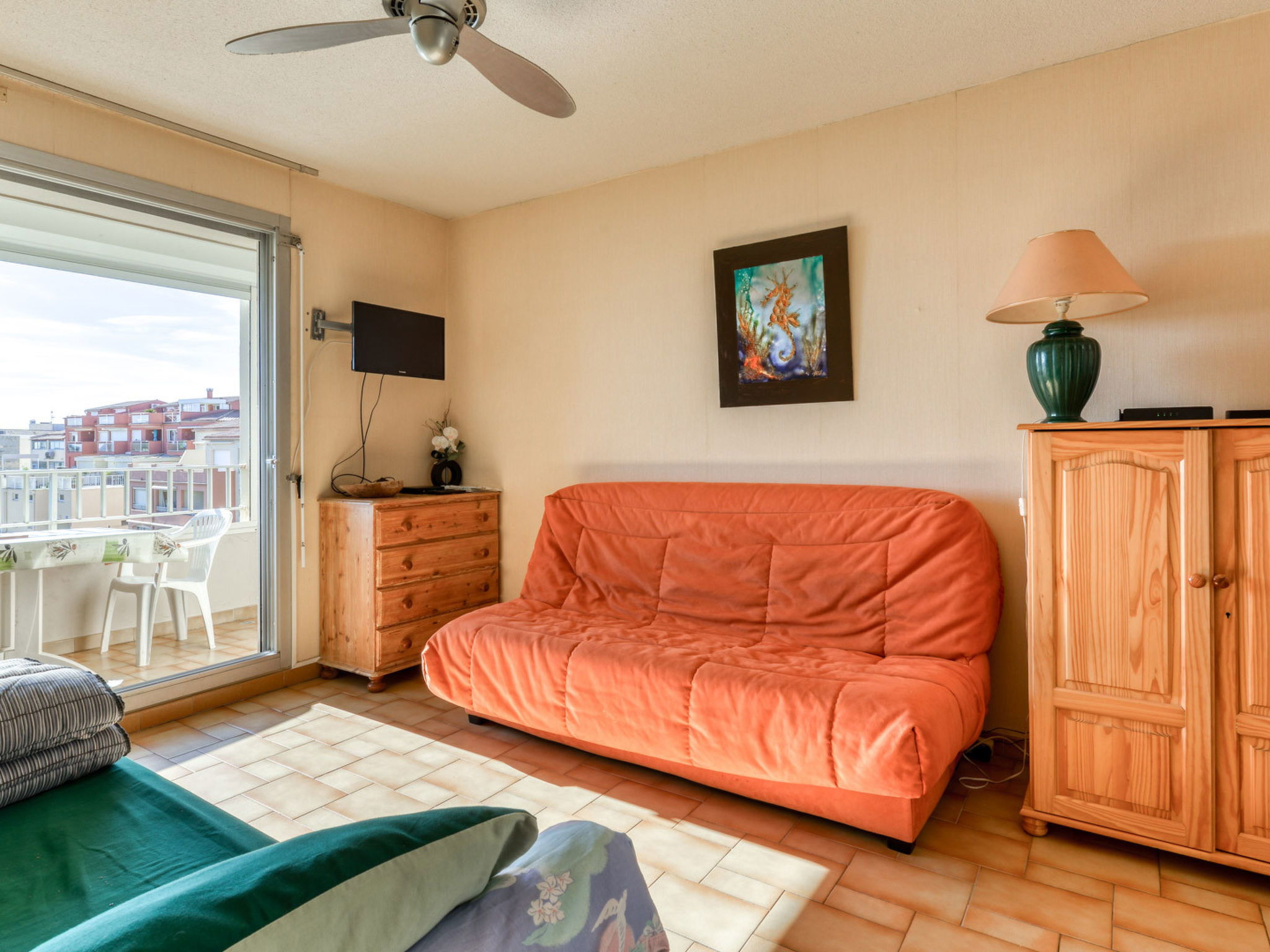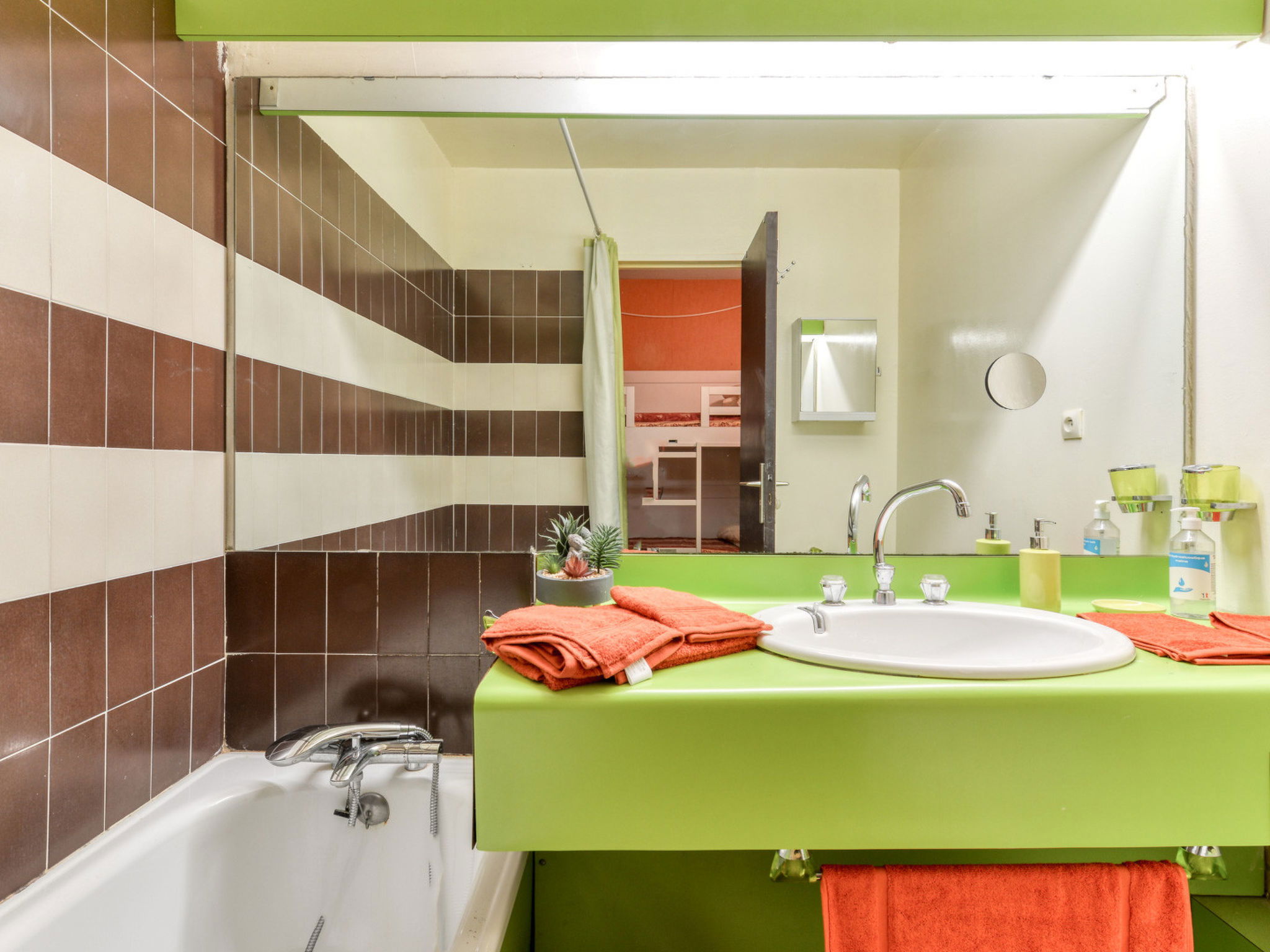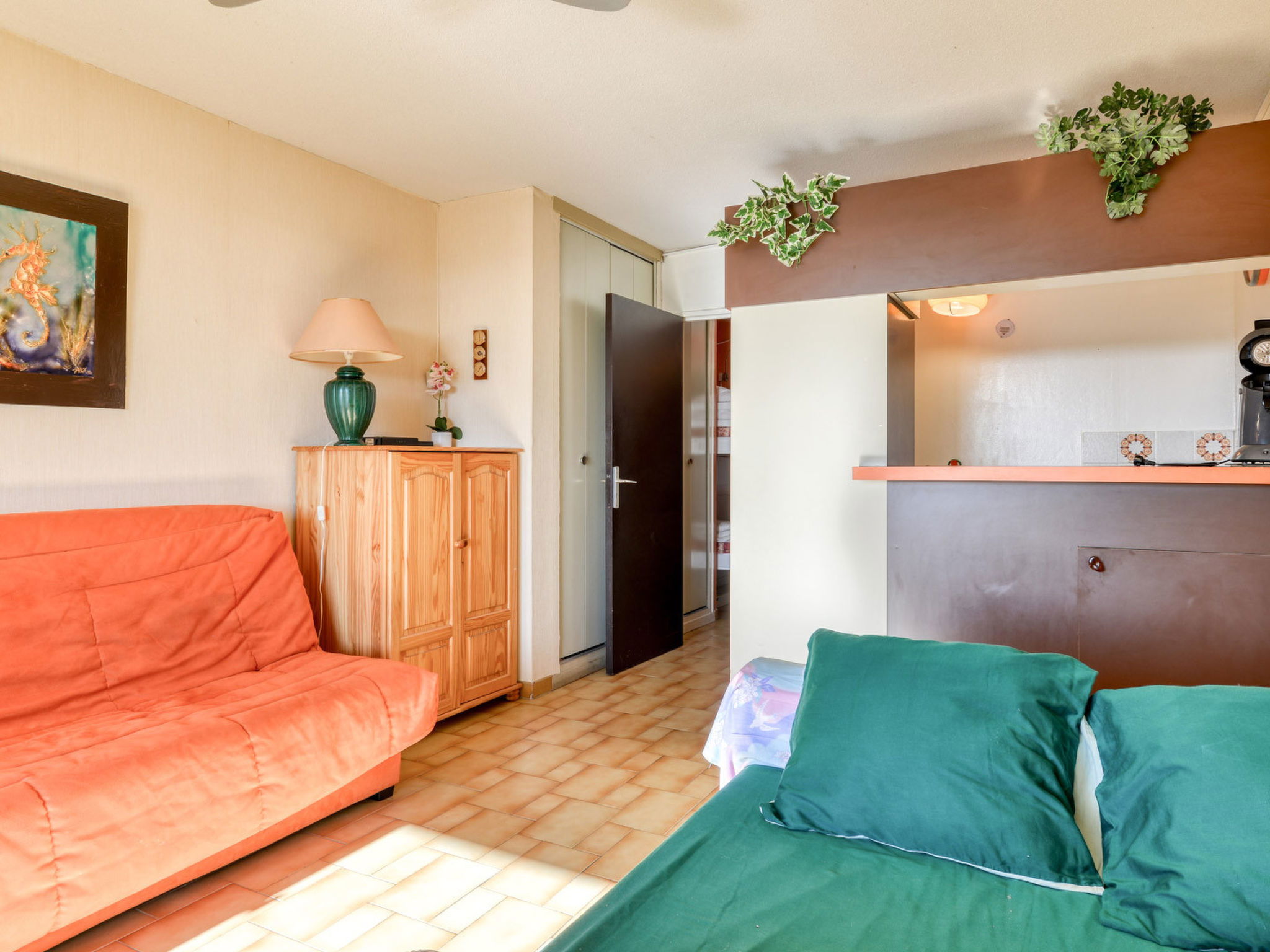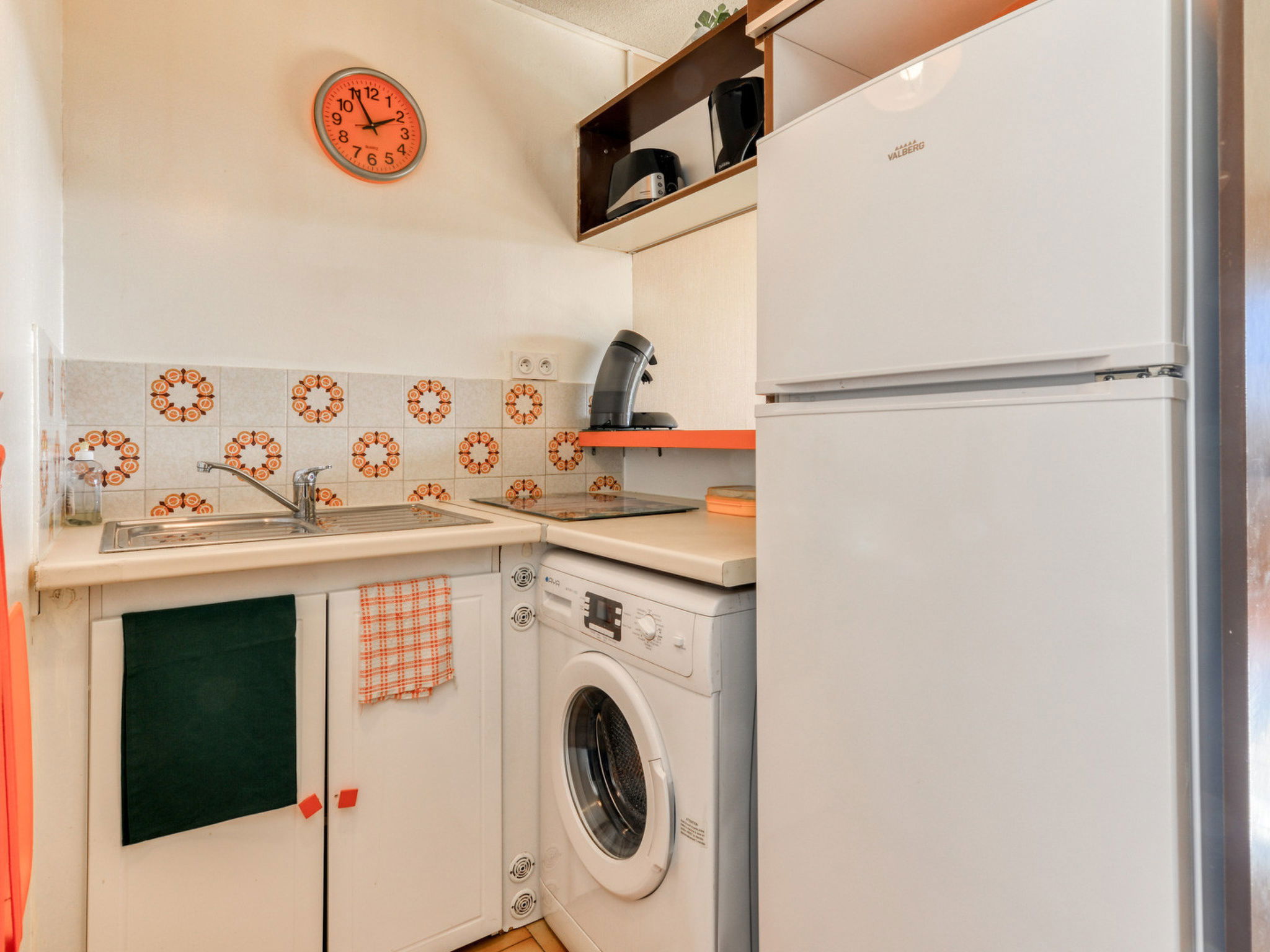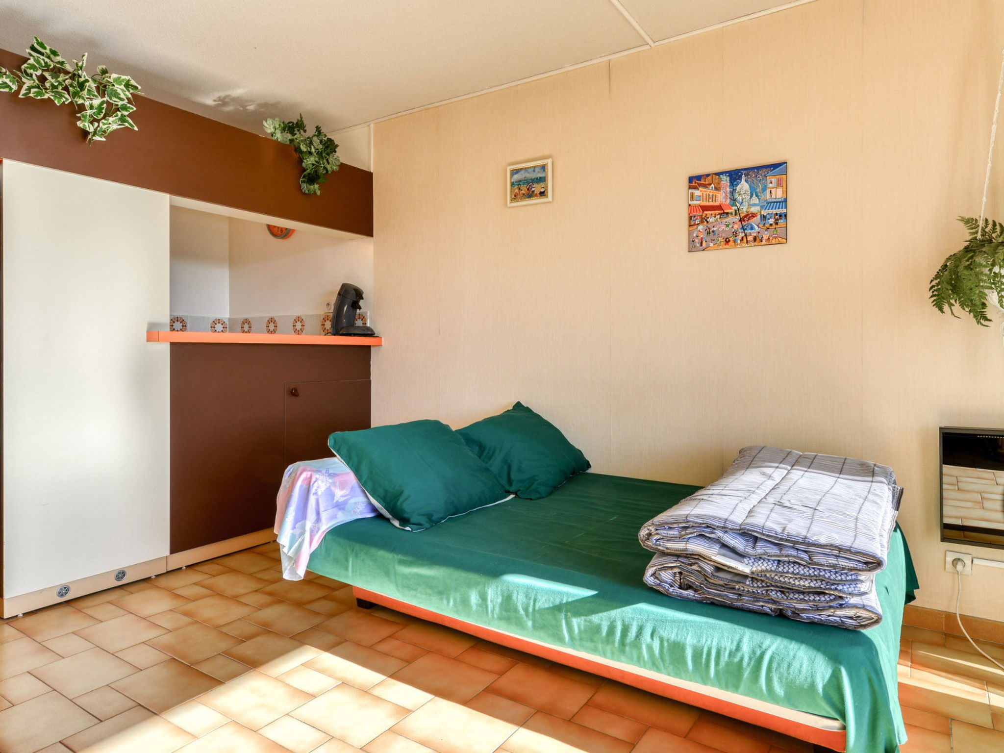 "Les Indes Galantes", 1-room studio 28 m2 on 4th floor. Object suitable for 6 adults. Living room with 2 sofabeds and 1 x 2 bunk beds, 2 pull-out beds and TV. Kitchen (2 induction hot plates, toaster, kettle, microwave, freezer, electric coffee machine). Bath/WC. Balcony. View of the sea and the swimming pool. Facilities: washing machine, iron. Internet (WiFi, free). Parking (1 car). Please note: non-smokers only. Smoke alarm. Offer by a commercial proprietor according to Art. 155, IV, CGI