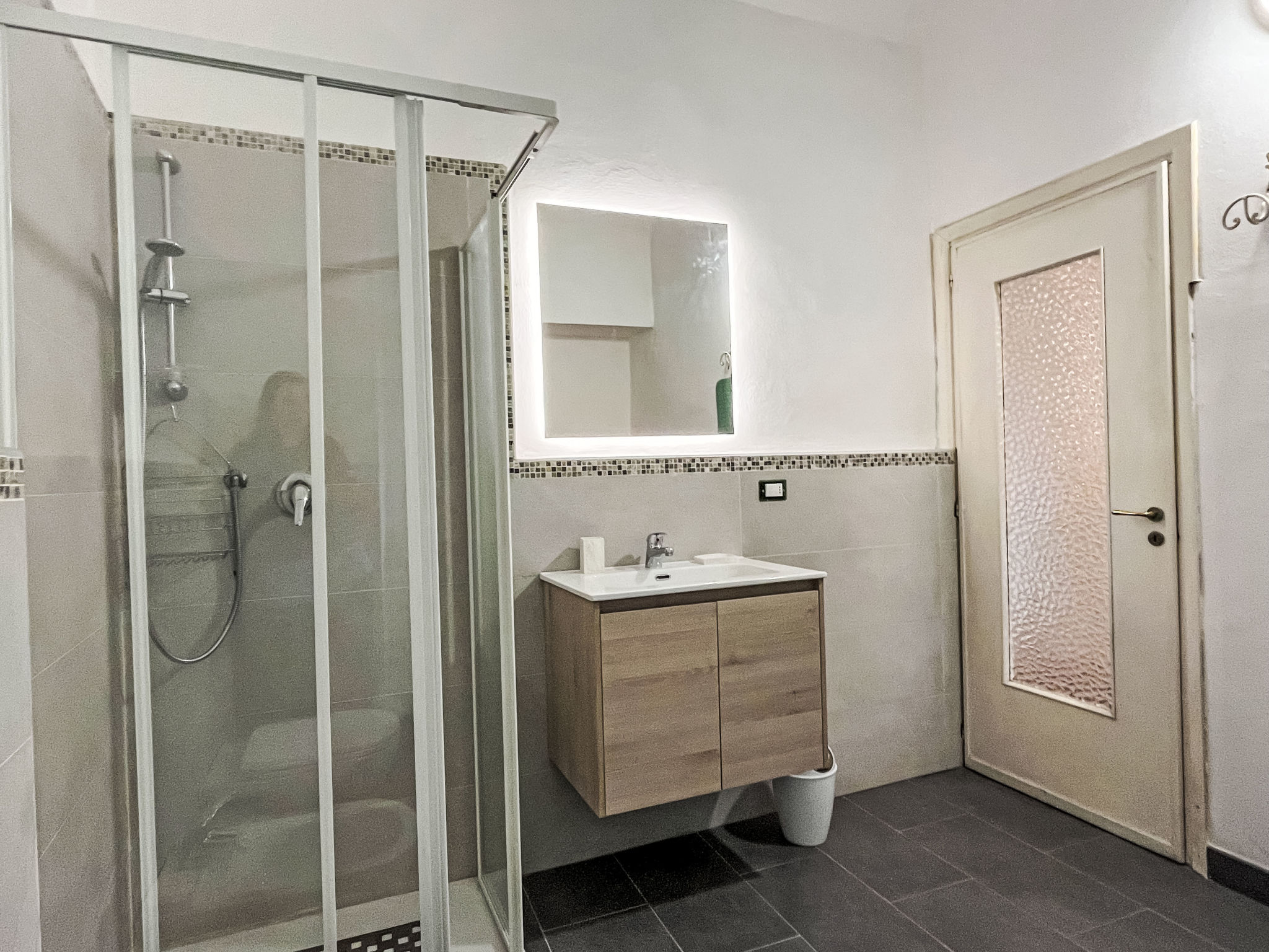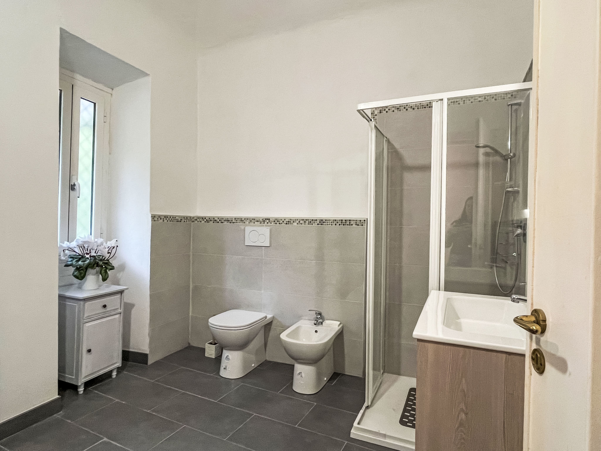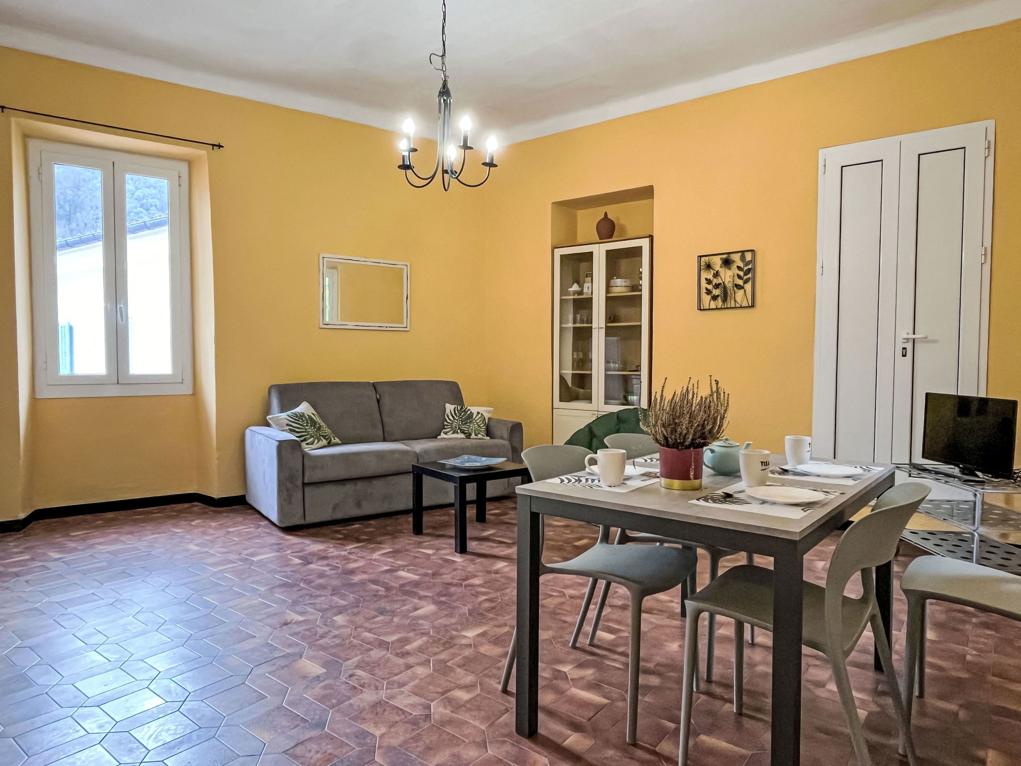 Agriturismo "Borgo Olimpo", 2 storeys, renovated in 2024, surrounded by trees and vineyards. 4 apartments in the property. In the centre of Molini di Prelá 3 km from the centre of Dolcedo, 12 km from the centre of Imperia, in a quiet, sunny position, 12 km from the sea. For shared use: property 3'000 m2, large, beautiful terraced garden (fenced), lawn for sunbathing, swimming pool secured, fenced (10 x 3 m, depth 140 cm, seasonal availability: 01.May. - 10.Oct.). Shower/WC in the pool area, outdoor shower, poolhouse with fridge and cooking stove, boccia, patio, terrace, garden furniture, pool maintenance by the owner/gardener. Private: natural garden, orchard. In the house: internet access, WiFi, spa area, storage room for bicycles. Cook on request (extra). Bread roll service and beverage service. Public parking 20 m. Grocery 200 m, supermarket 8 km, shopping centre 12 km, restaurant, bar 20 m, bakery 200 m, café 20 m, bicycle rental 4 km, bus stop 20 m, railway station "Imperia Oneglia" 12 km, sandy beach "Borgo Marina Imperia" 12 km pebble beach "Borgo Prino" 10 km, shingle beach "Borgo Foce Imperia" 10 km, bathing lake "Laghetti di Prelá" 500 m. Walking paths from the house 10 m, cycle lane 12 km, children's playground 30 m. Nearby attractions: Valloria (160 bemalte Türen) 4 km, Porto Maurizio Altstadt Parasio 12 km, Bussana Vecchia Erdbebendorf 25 km, Triora Hexendorf 45 km, Monte Carlo Monaco 76 km, San Remo 30 km. Hiking paths: Monte Faudo (1149 m) Mountainbike Trails 15 km, Laghetti di Lecchiore (Wanderweg) 10 km. Please note: car recommended.