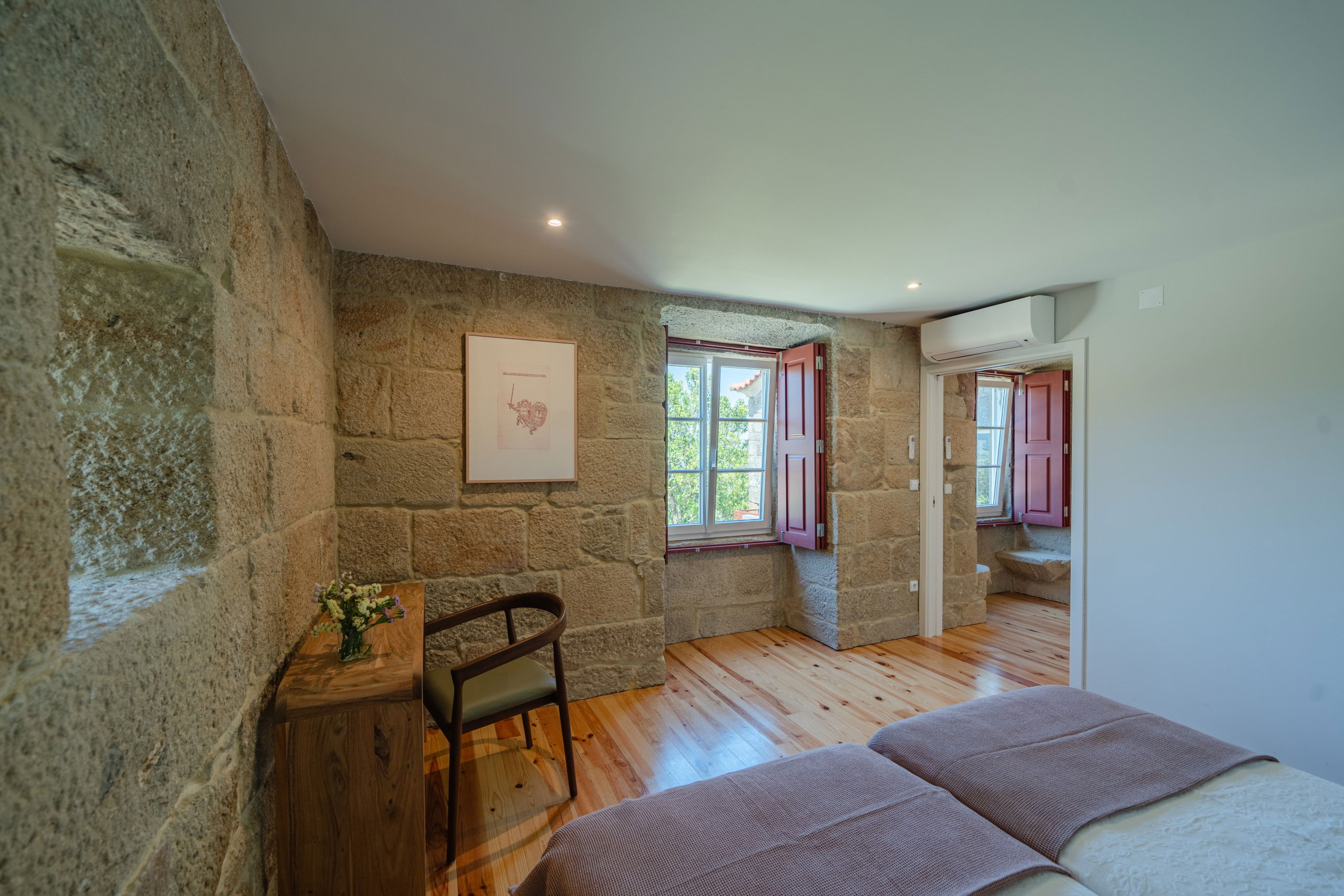 The Tower, one of the buildings of Casa da Granja, ideal for 2 people, consists of an elegant and charming bedroom. No need to worry about bringing sheets or towels; everything will be ready for you on arrival!