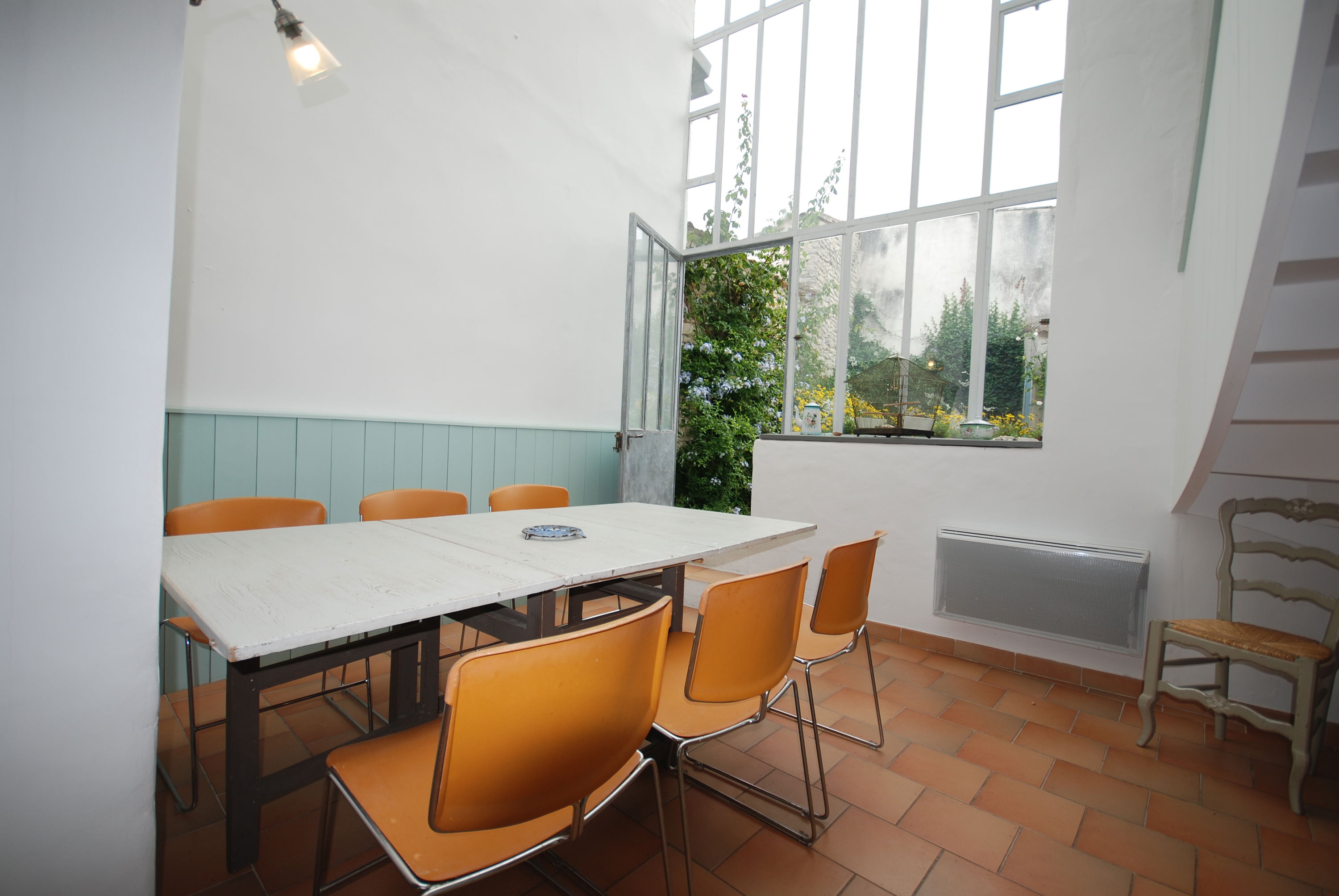 When the weather is nice, you can enjoy the 45m² flower-filled courtyard, which can be accessed either from the kitchen or the dining area. You can also park your bikes there and use the washing machine, which is located in the small room at the back of the courtyard.