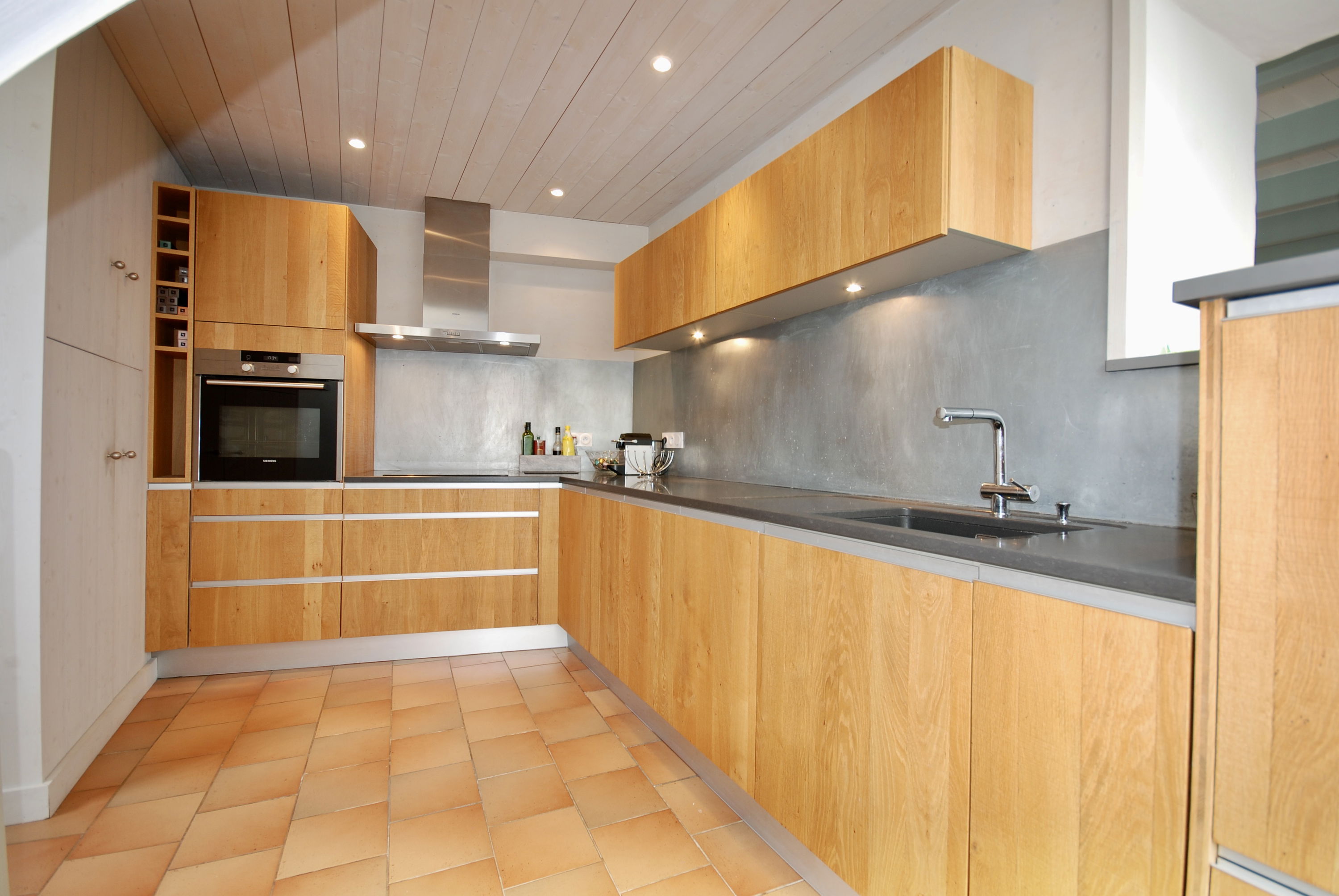 The spacious ground floor consists of a living room, a dining room under glass roof and a fully equipped kitchen.