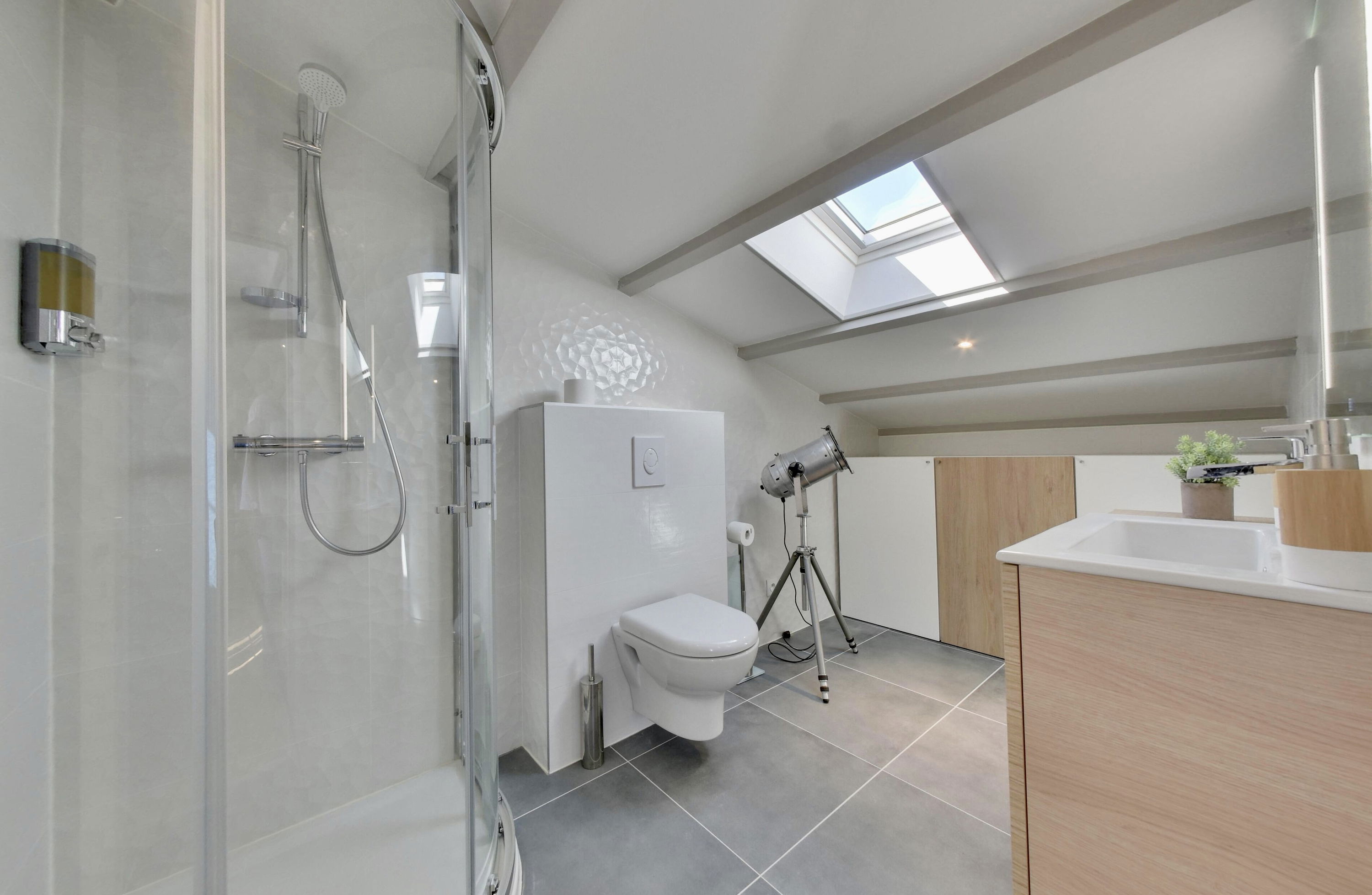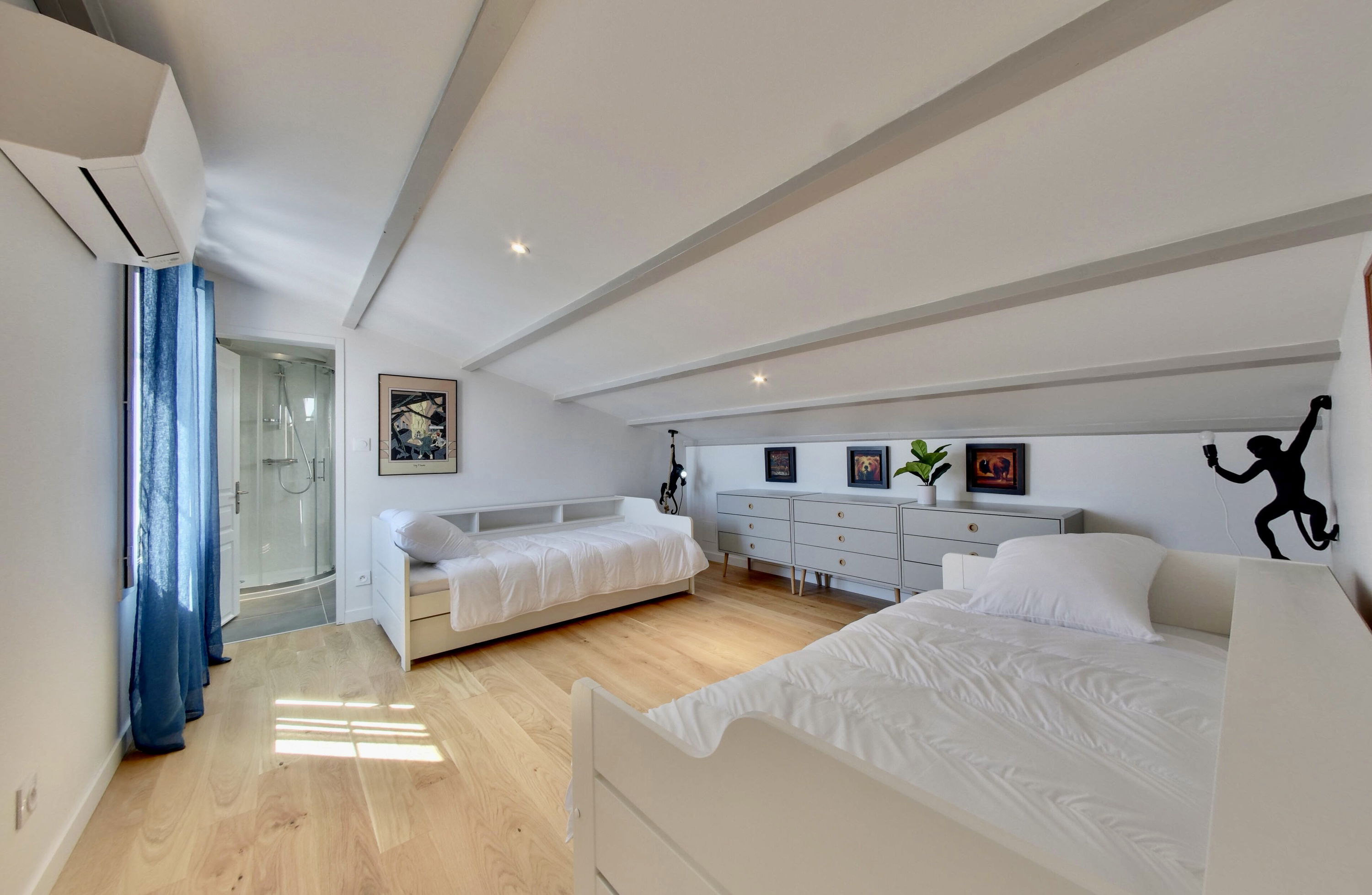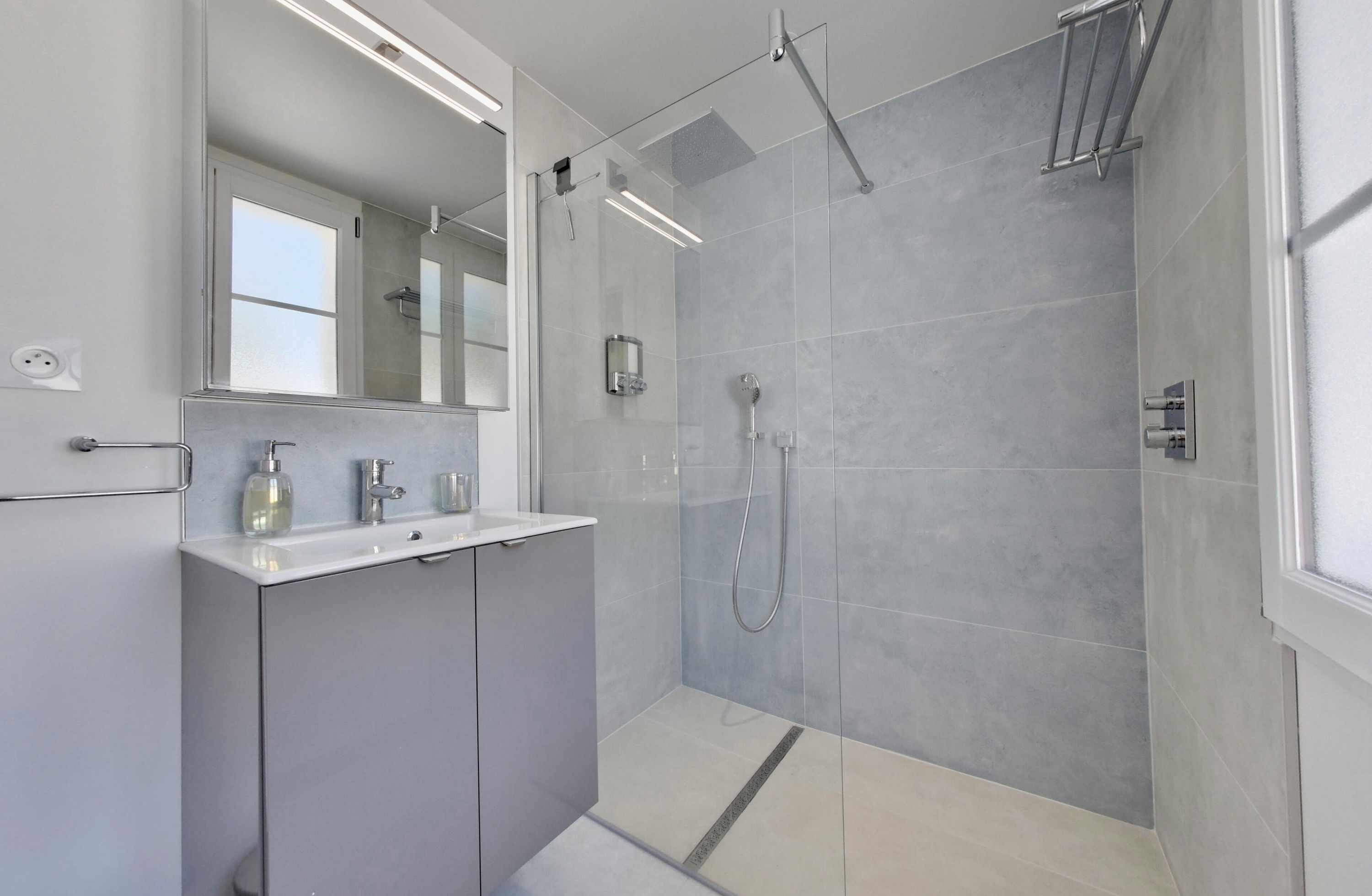 Regarding the sleeping areas, the ground floor offers a large master suite of 44m2 including dressing room, bathroom and WC as well as a bedroom with its shower room; both opening directly onto the swimming corridor.