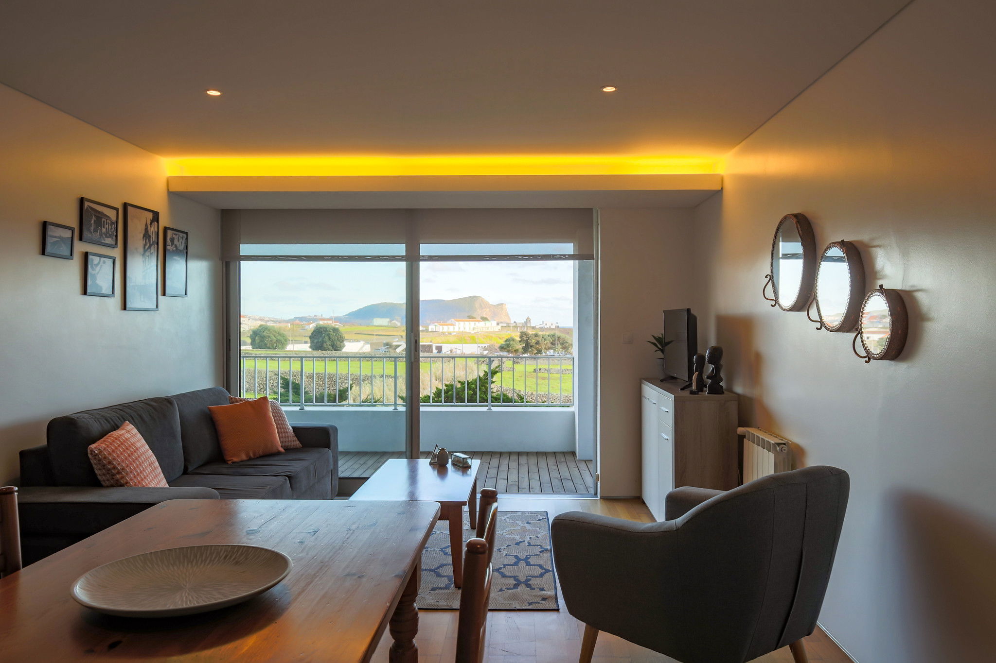 Our apartment has a unique feature: you can watch the sun rise over the ocean and Monte Brasil