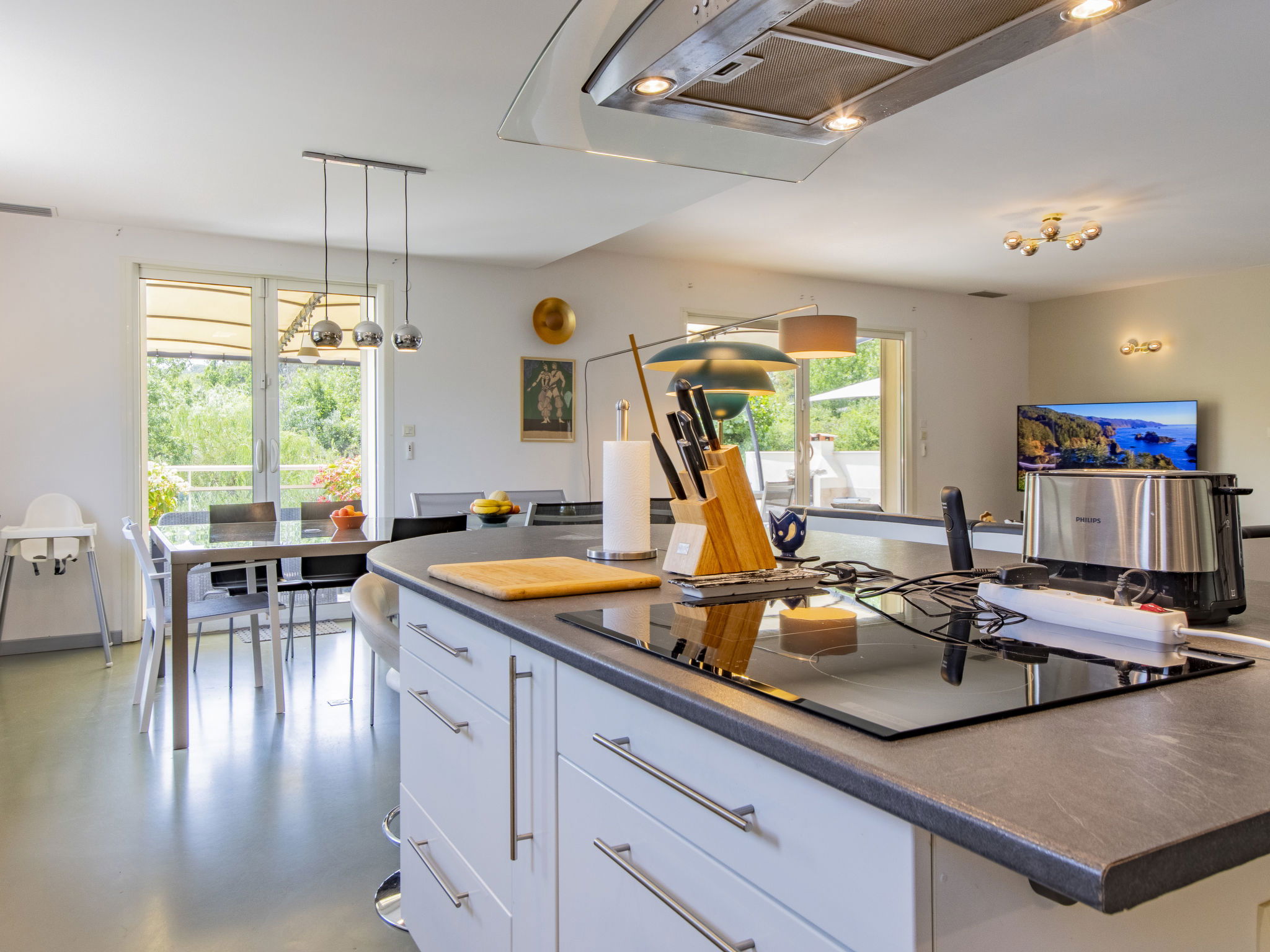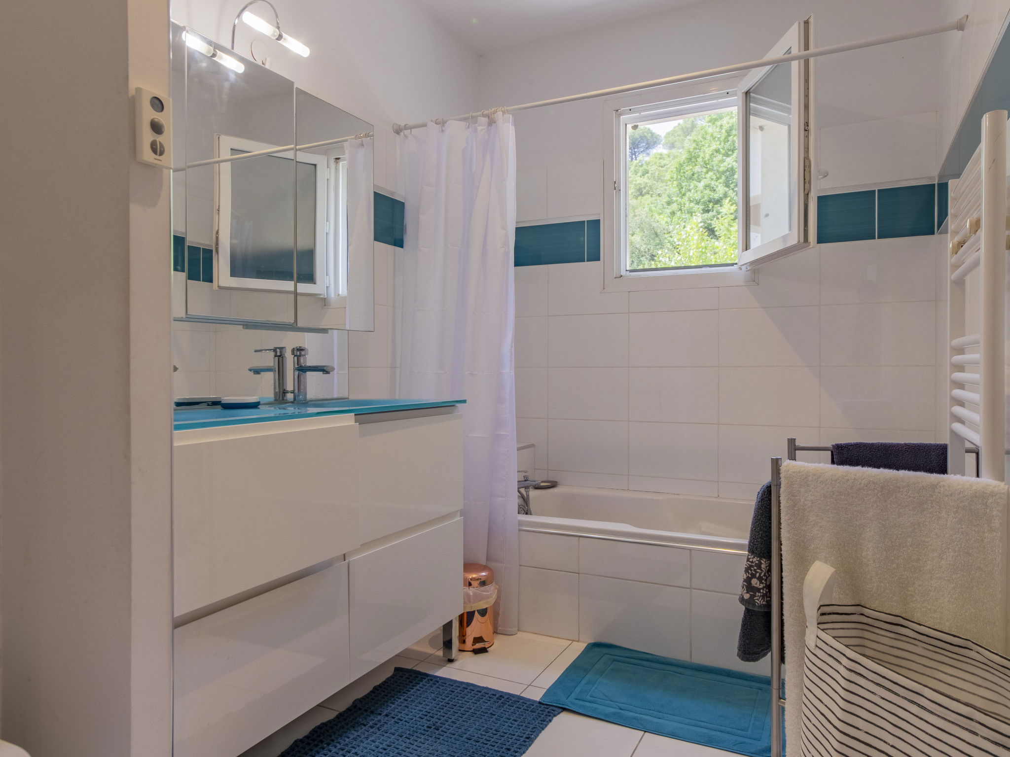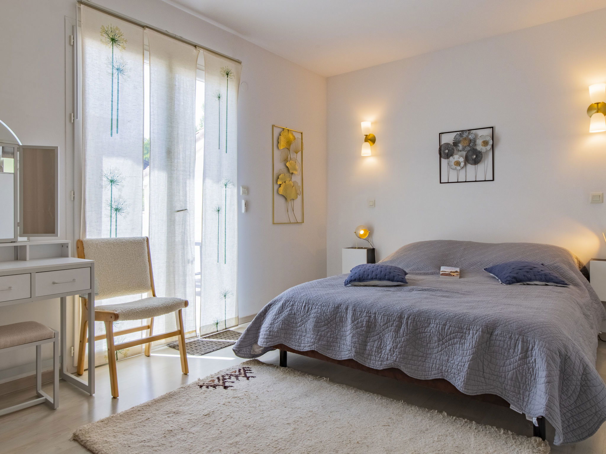 5-room villa 160 m2 on 2 levels. Beautiful and modern furnishings: living/dining room 50 m2 with panoramic window with TV (flat screen). Exit to the terrace. Open kitchen (oven, dishwasher, 4 induction hot plates, toaster, kettle, microwave, freezer, electric coffee machine, Capsules for coffee machine (Nespresso et Senseo) extra). Air-conditioning, underfloor heating. On the lower ground floor: shower/WC. Air-conditioning. Upper floor: 1 room with 1 french bed (160 cm, length 200 cm), bath/shower. 1 room with 1 french bed (140 cm, length 190 cm), TV (flat screen). 1 room with 1 french bed (140 cm, length 200 cm), TV. 1 room with 2 beds (90 cm, length 200 cm). Bathroom, sep. WC, hydro massage bath. Air-conditioning. Terrace 100 m2 partly roofed, south facing position and west facing position. Terrace furniture, barbecue, deck chairs (8). Beautiful view of the valley. Facilities: washing machine, dryer, children's high chair, baby cot for up to 2 year olds, hair dryer. Internet (WiFi, free). Please note: non-smokers only. 1 small pet/ dog allowed. Smoke alarm. Offer by a private individual according to Art. 155, IV of CGI.