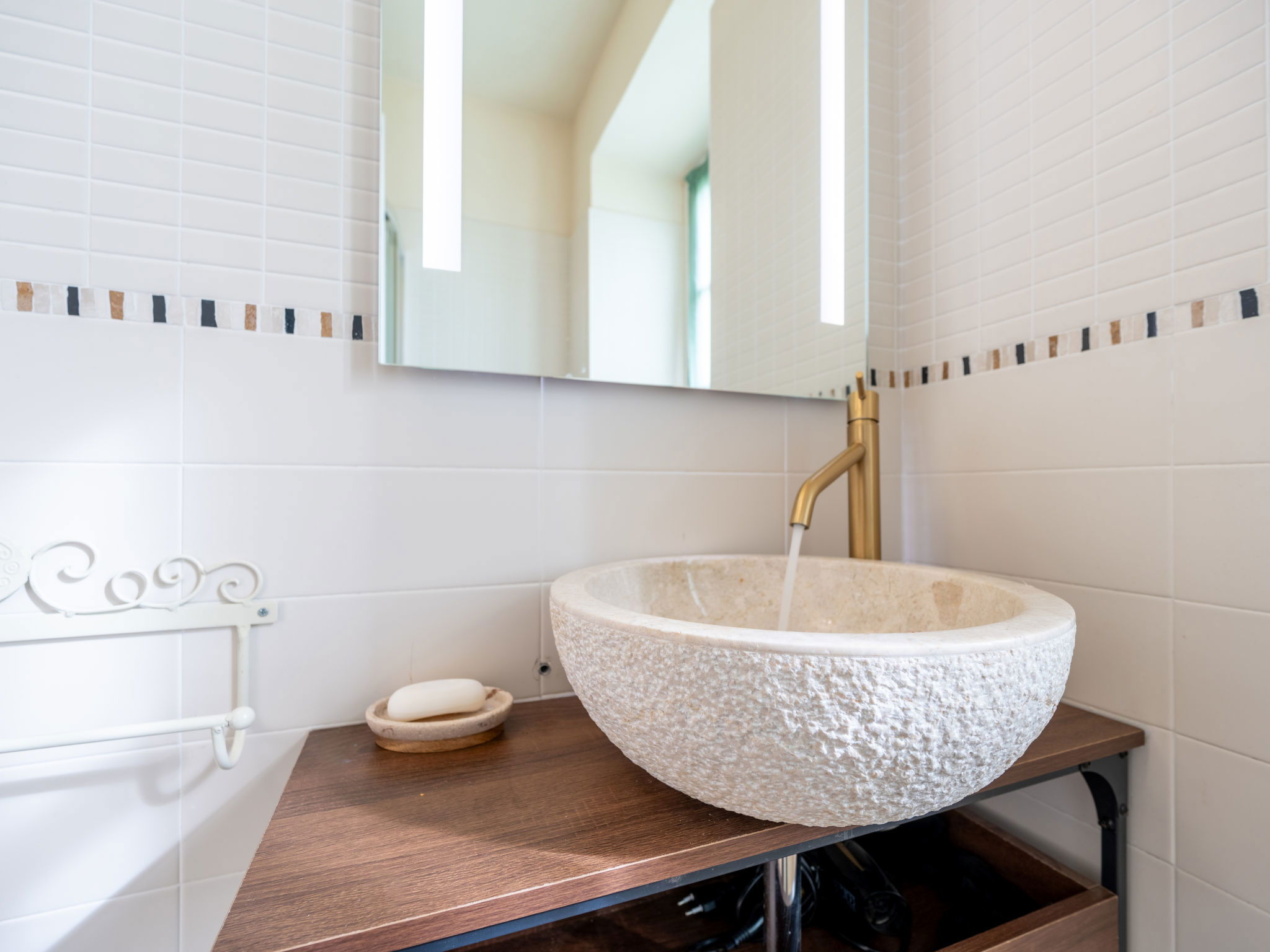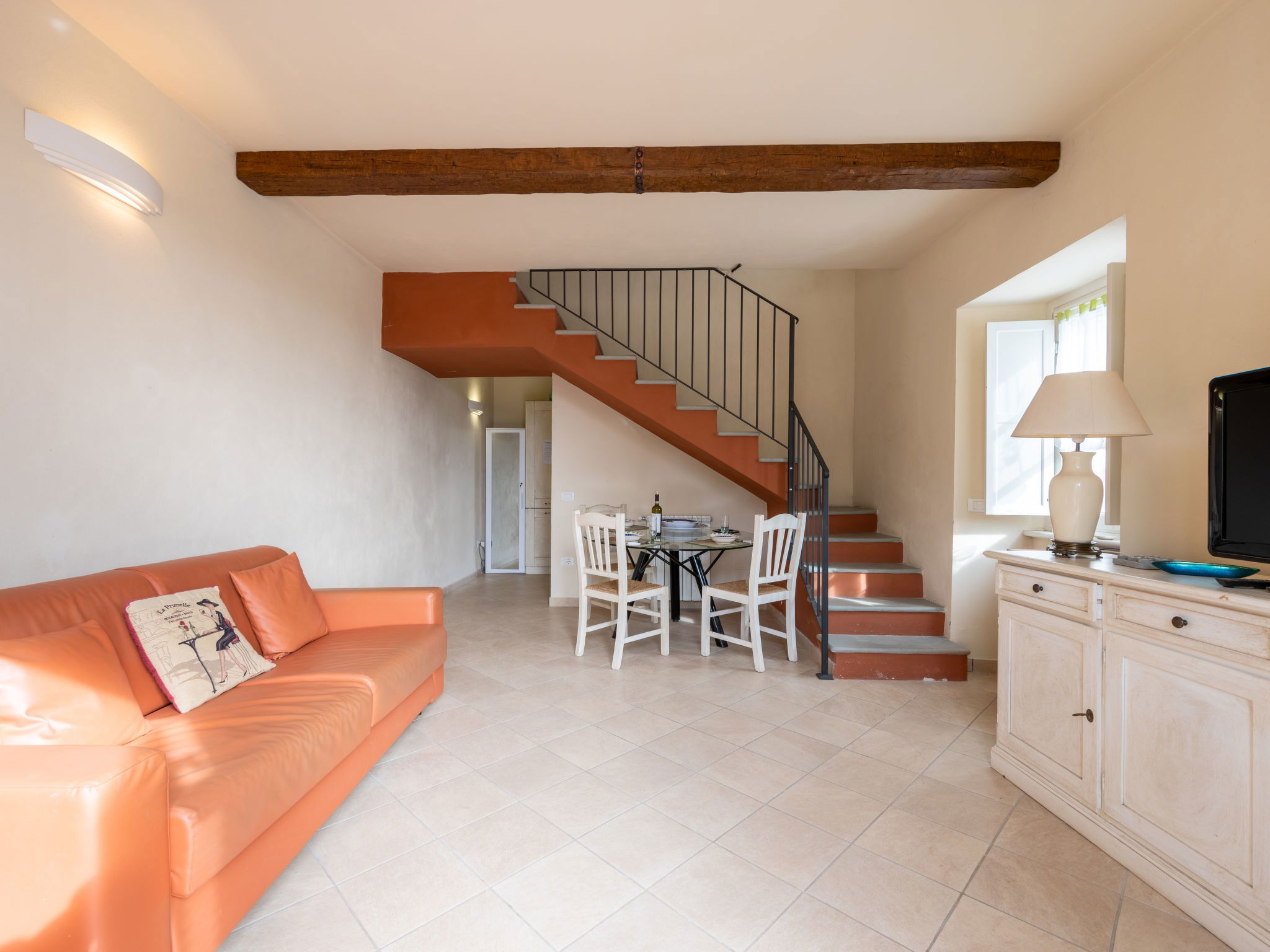"Marco", 2-room apartment 75 m2 on 2 levels. Rustic furnishings: living/sleeping room with 1 double sofabed and TV. Exit to the terrace. Open kitchen (oven, Gas stove, 4 gas rings, toaster, kettle, electric coffee machine). Upper floor: 1 double bedroom. Shower/WC. Heating. Heating available only from 01.10. to 15.04. Natural stone floors. Terrace 25 m2. Terrace furniture. Facilities: washing machine, baby cot for up to 2 year olds. Internet (WiFi, free). Please note: maximum 1 pet/ dog allowed. Private entrance, smoke alarm, fire extinguisher. IT006179C2365DD3VU