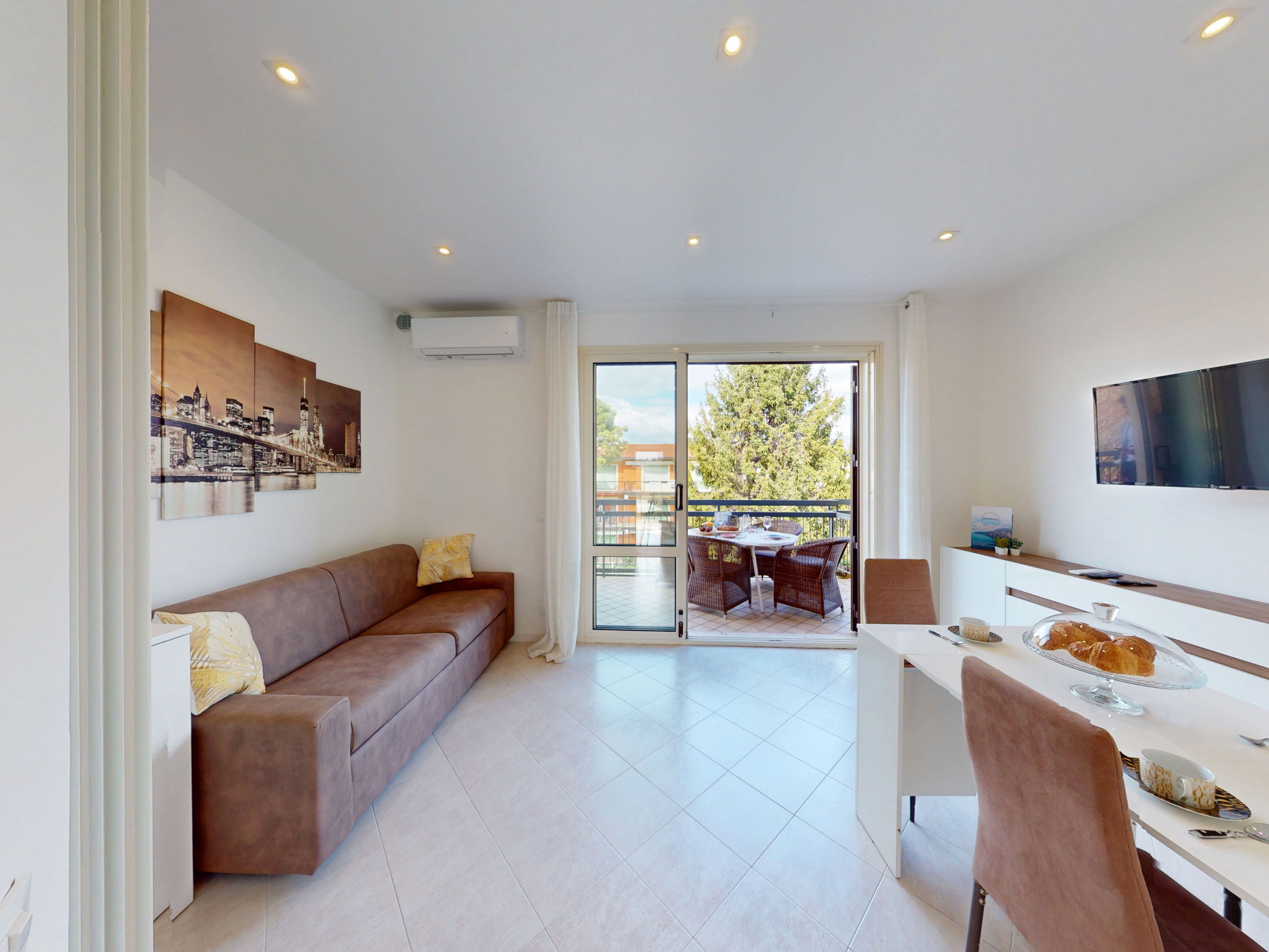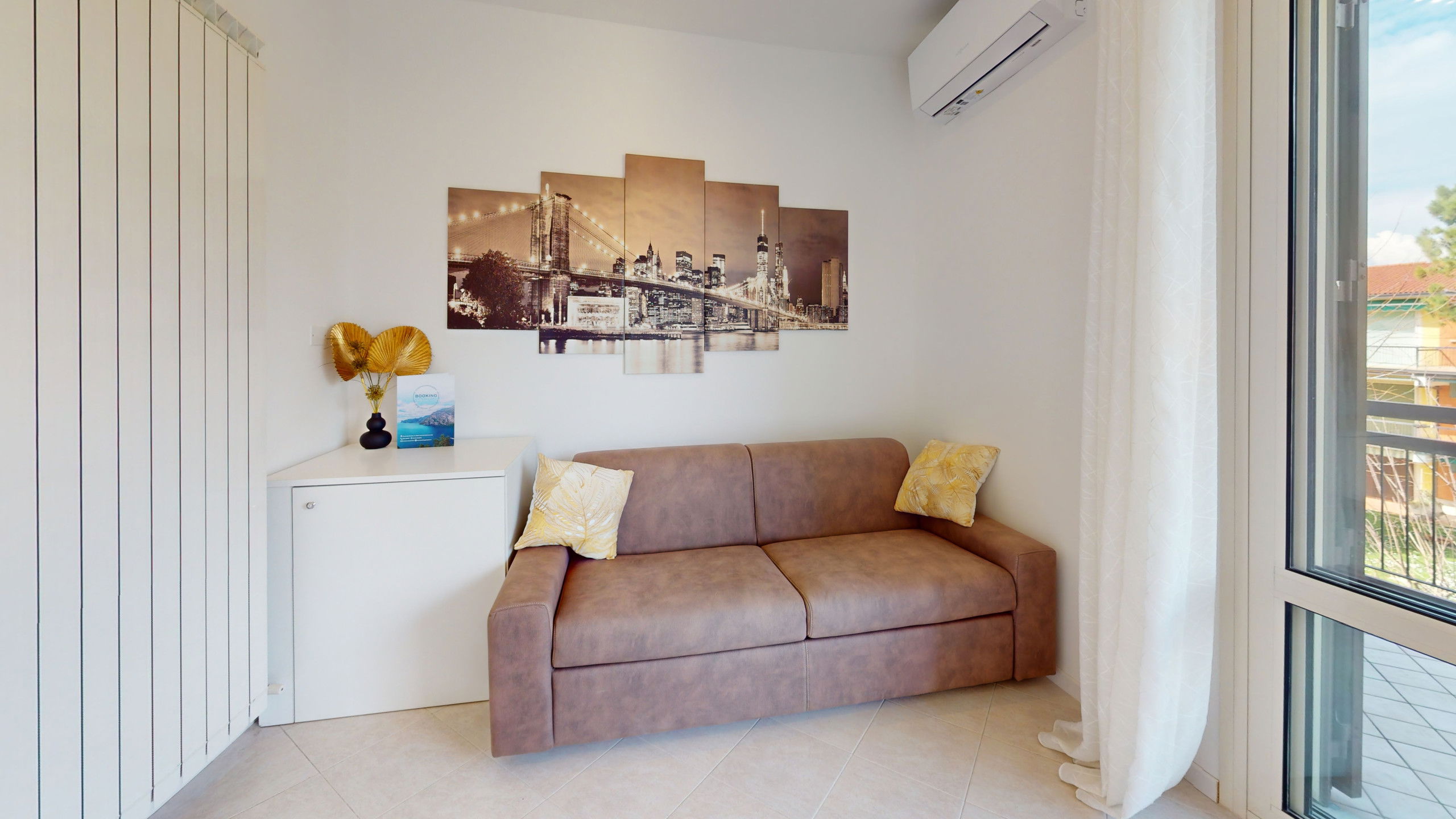 This welcoming four-person apartment offers everything necessary for a stay of pure relaxation: a bright living area with a sofa bed, ideal for enjoying comfort at any time of the day, and an equipped balcony where you can enjoy the breeze while admiring the view.