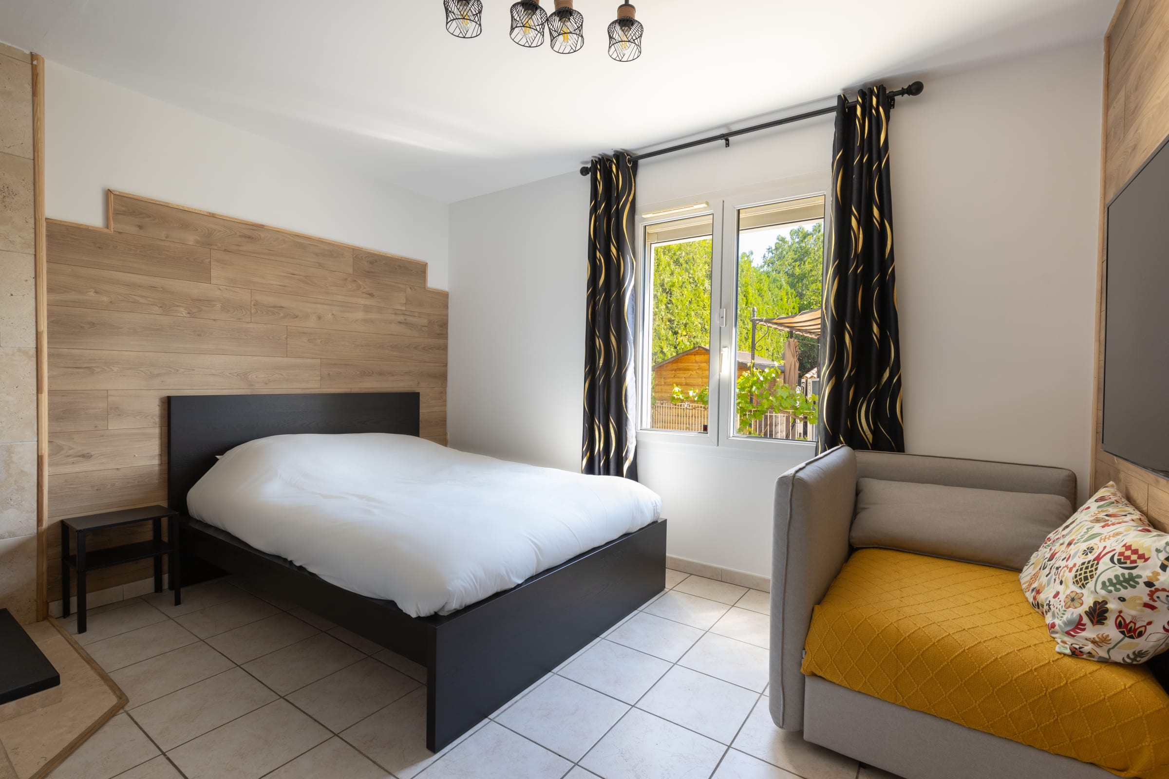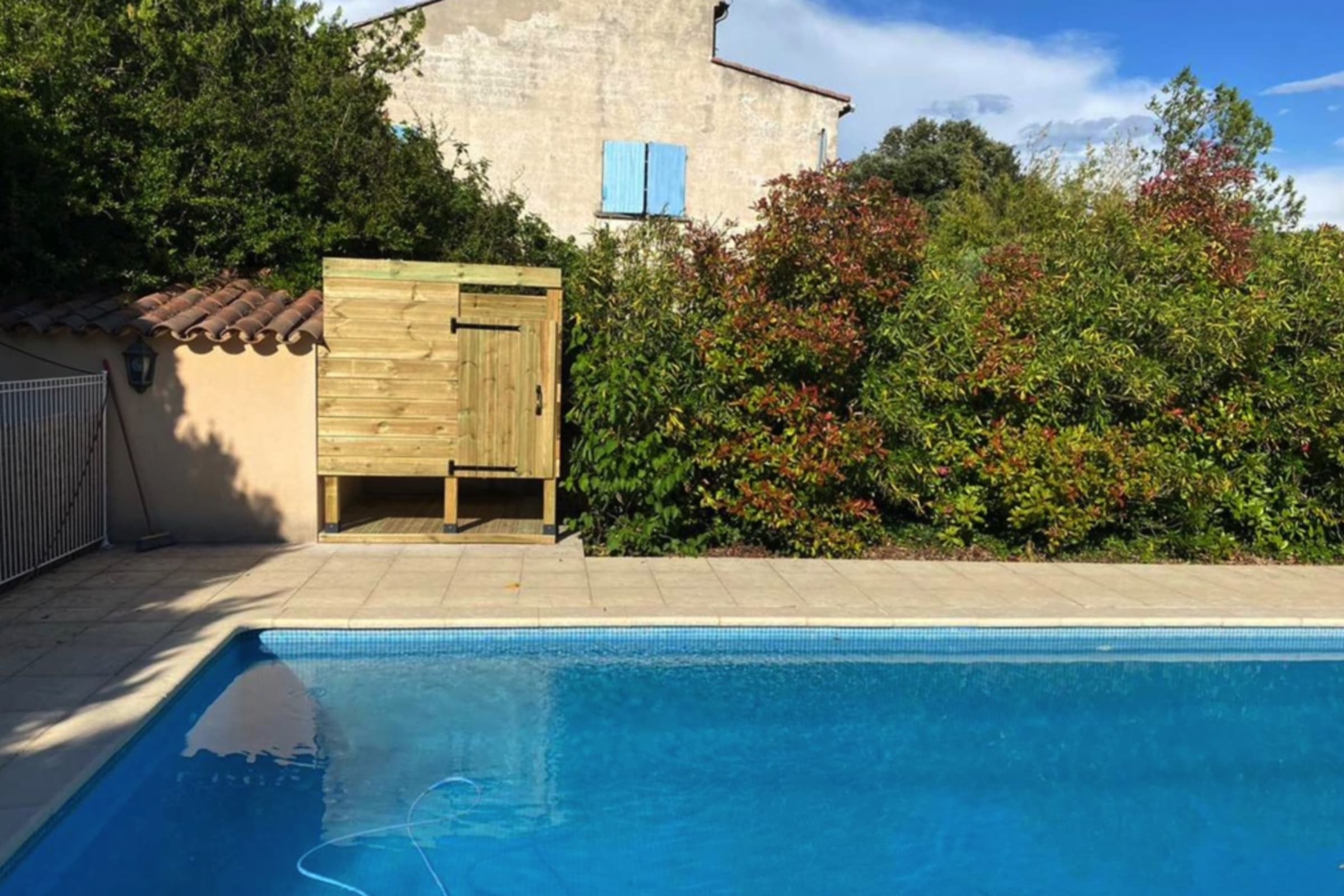 Outside, you'll discover a large wooded plot of 1,400 m², a magnificent swimming pool with a heated outdoor shower, and everything you need to relax and enjoy the Provençal way of life. For the safety of little ones, the pool is equipped with a fence.