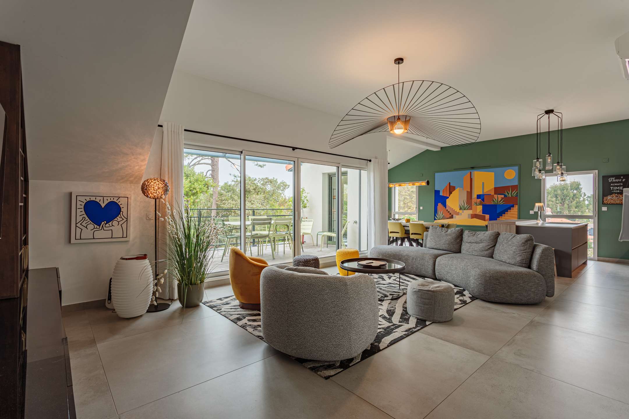 You will be charmed by its large living room with its lounge area, dining room and fully equipped open kitchen, all giving direct access to the balcony.
