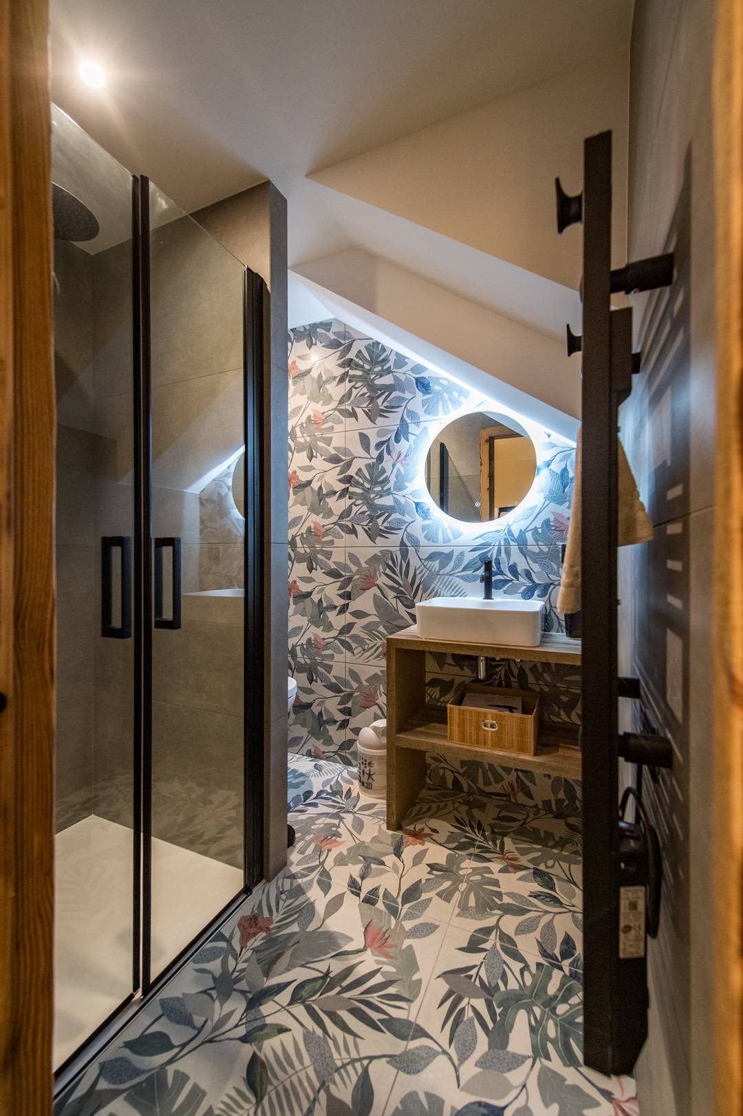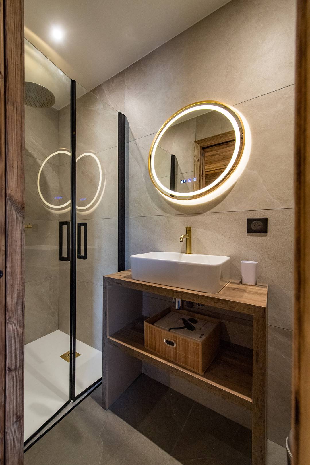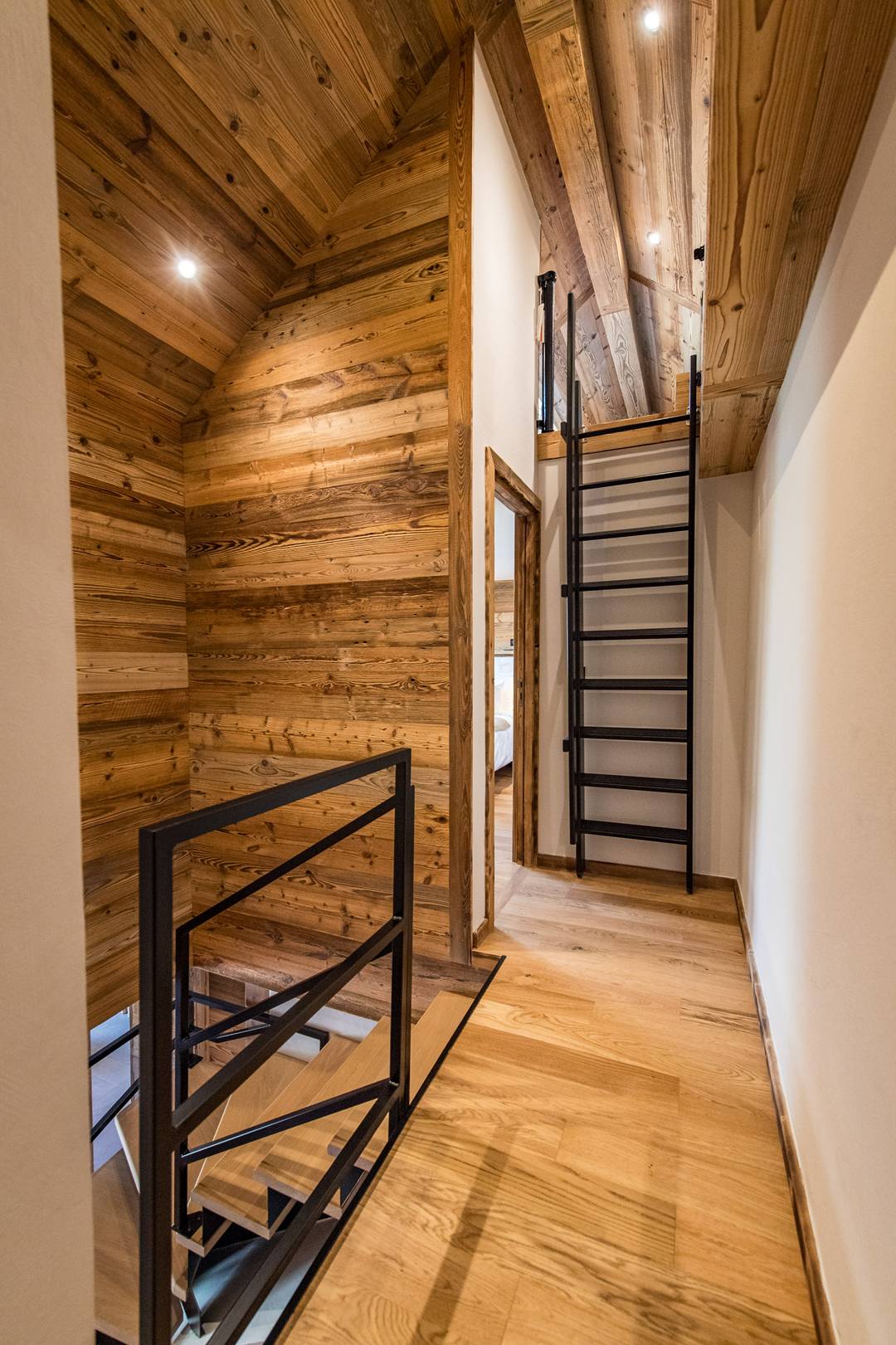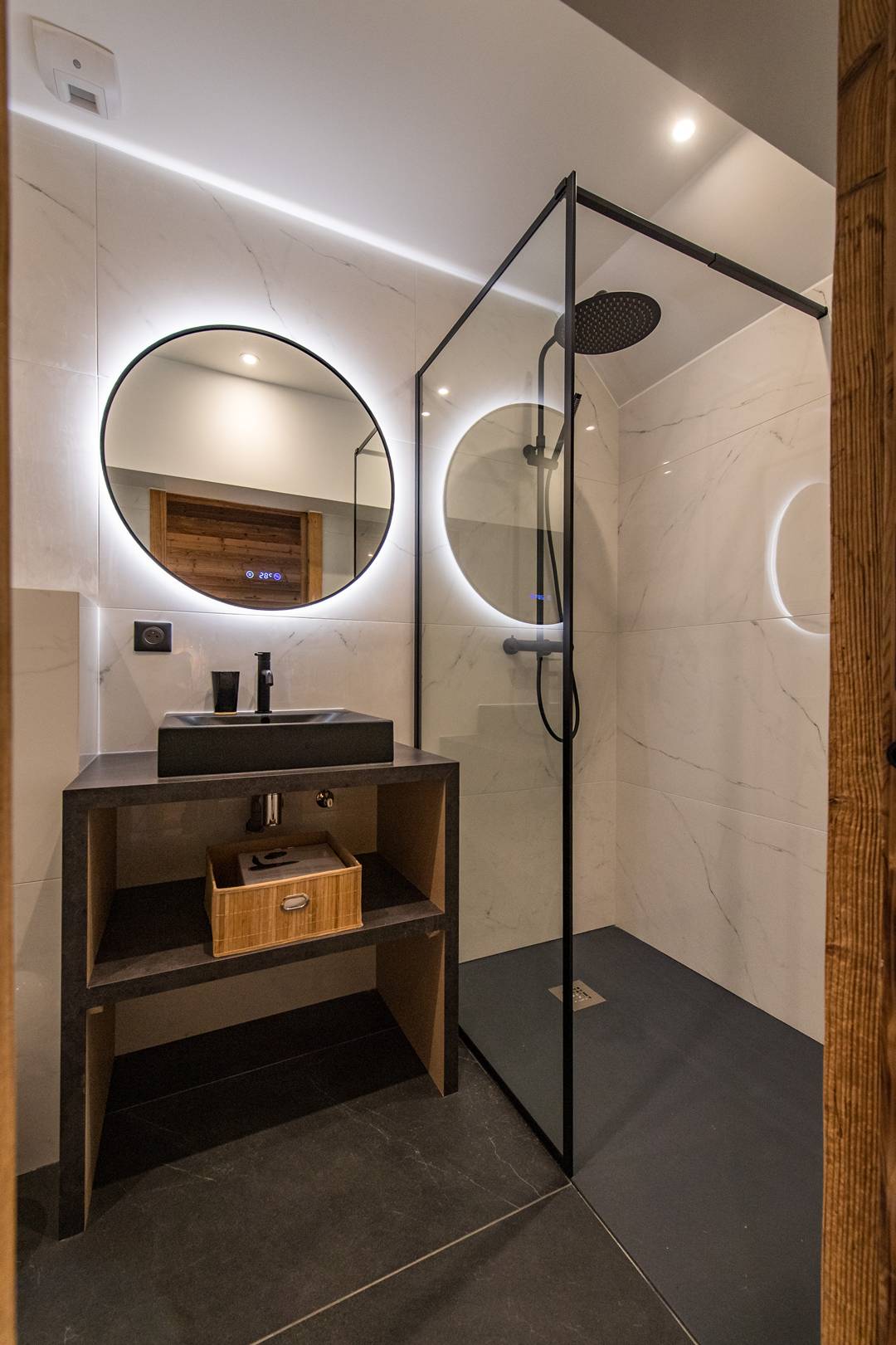 On this floor, one double bedroom has a 160cm bed, own shower room with toilet, closet and TV. Still on the lower floor, a mountain corner with two 80*190 cm bunk bed sleep 4 and own shower room with toilet.