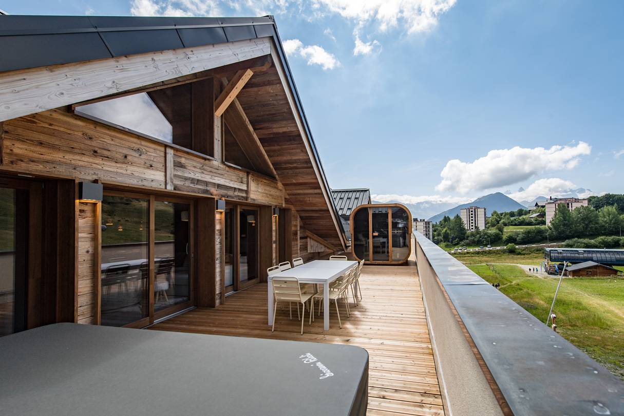 Les Airelles residence is located on the La Toussuire snow front, a few steps from the slopes and the shops.