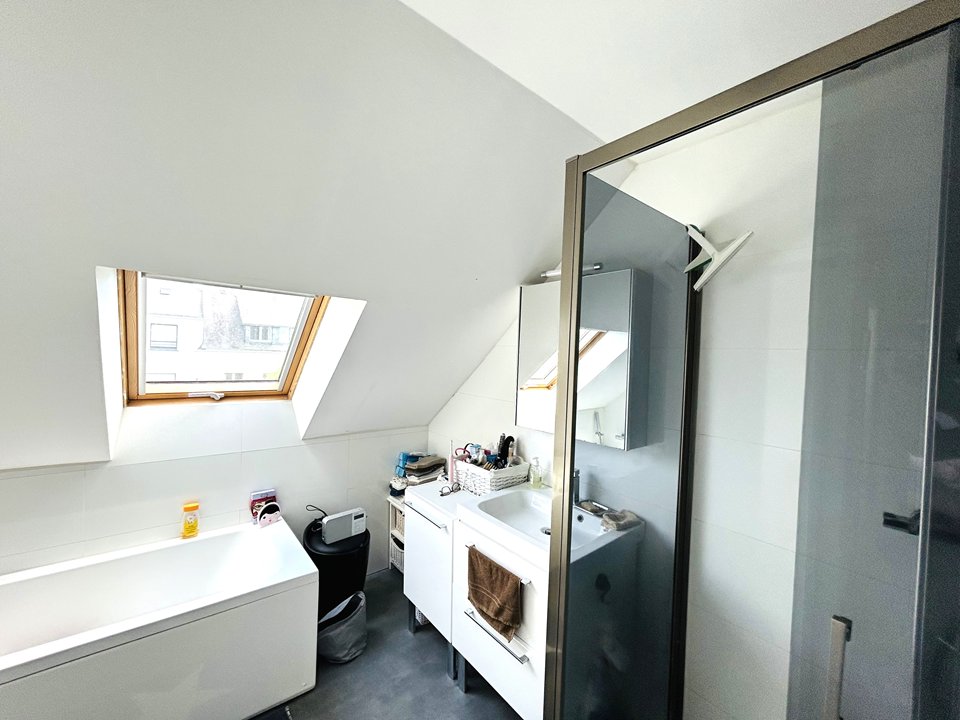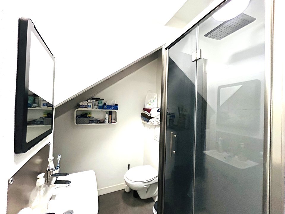 - A bathroom with shower, bath and toilet.