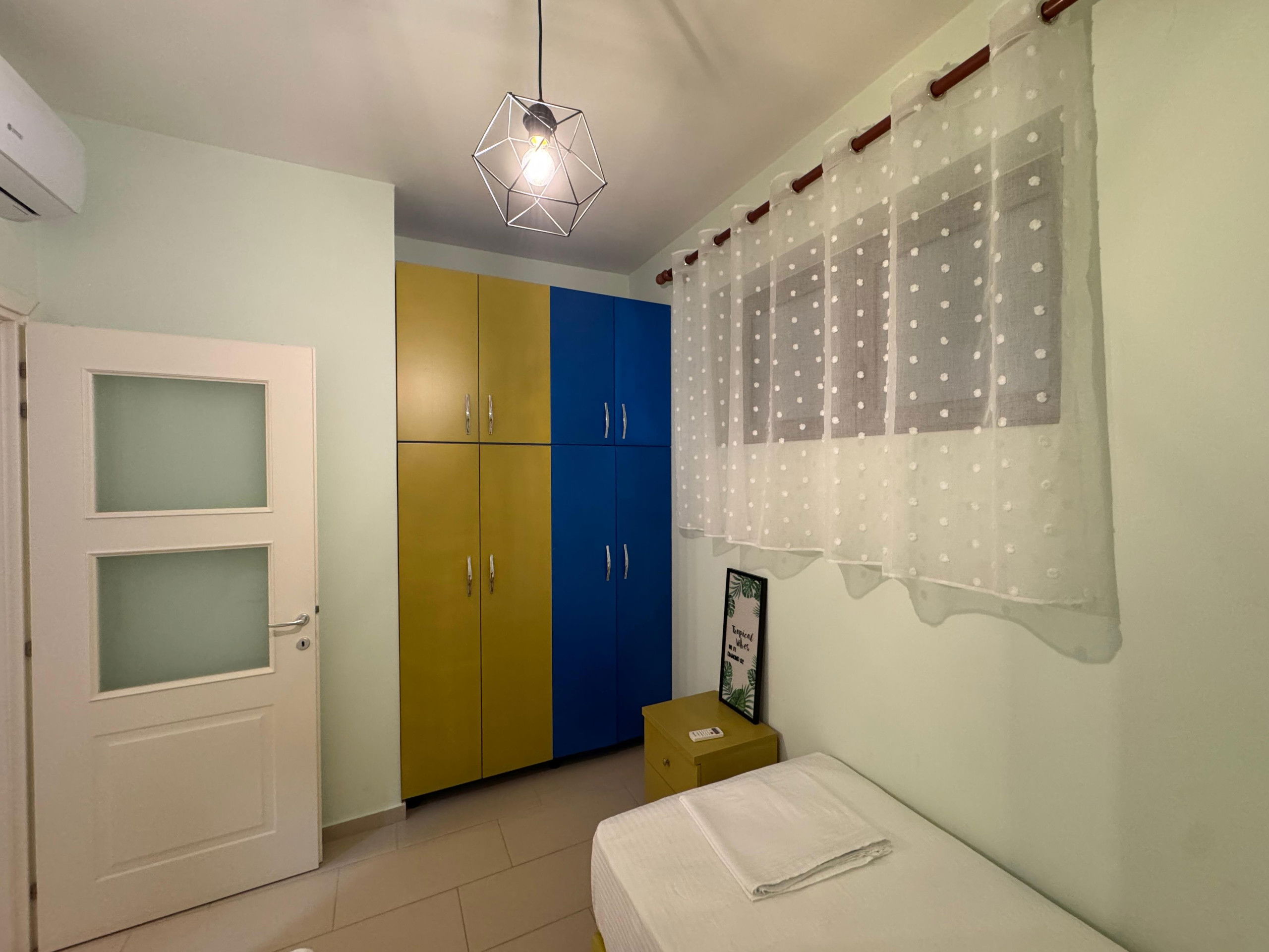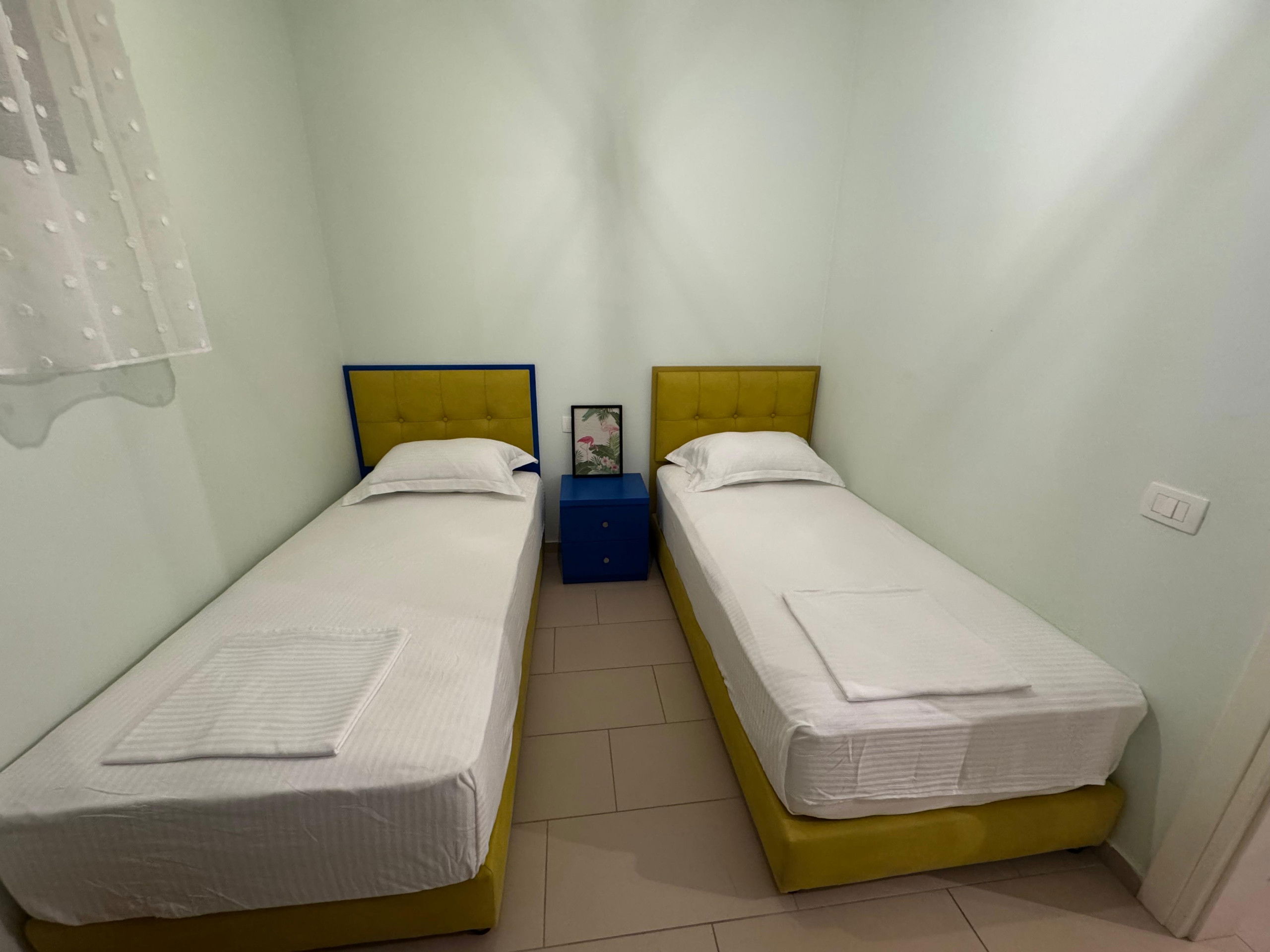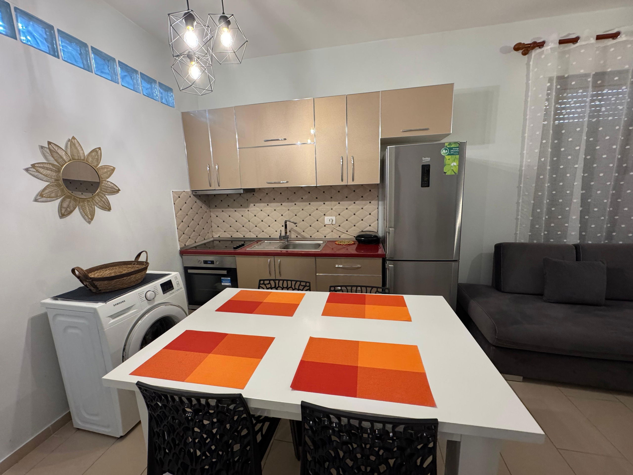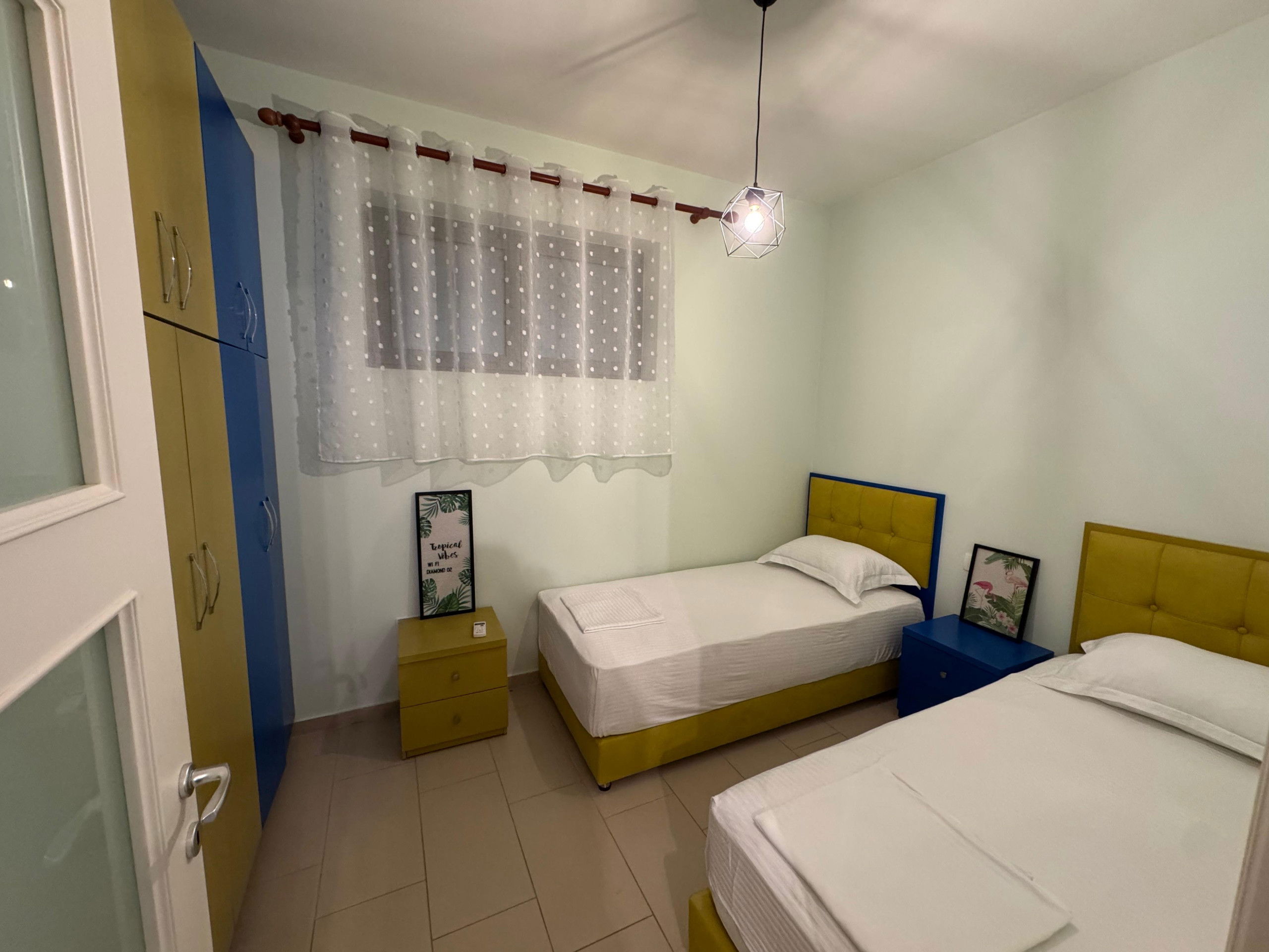 The apartment in Vlorë has 2 bedrooms and has capacity for 5 people. The apartment is comfortable, is a new build, and is 50 m². The property is located right next to the beach. The property is located 10 m from Aquamarina Diamond Hill water park, 10 m from Perla e Jonit from the restaurant, 50 m from Market Soni supermarket, 100 m from Marina Bay rock beach, 100 m from the bus station, 150 m from Liro rock beach, 800 m from Plazhi Ri sand beach, 5 km from Skele city, 25 km from International Vlora Airport airport, 25 km from Shushica river, 28 km from Llogara National Park nature reserve, 157 km from Tirana International Airport international airport. The house is situated in a family-friendly neighborhood next to the sea.The accommodation is equipped with the following items: lift, washing machine, dryer, fireplace, iron, internet (Wi-Fi), hair dryer, air-conditioned, garage the same building, 1 TV.In the induction open plan kitchen, refrigerator, oven, freezer and toaster are provided.