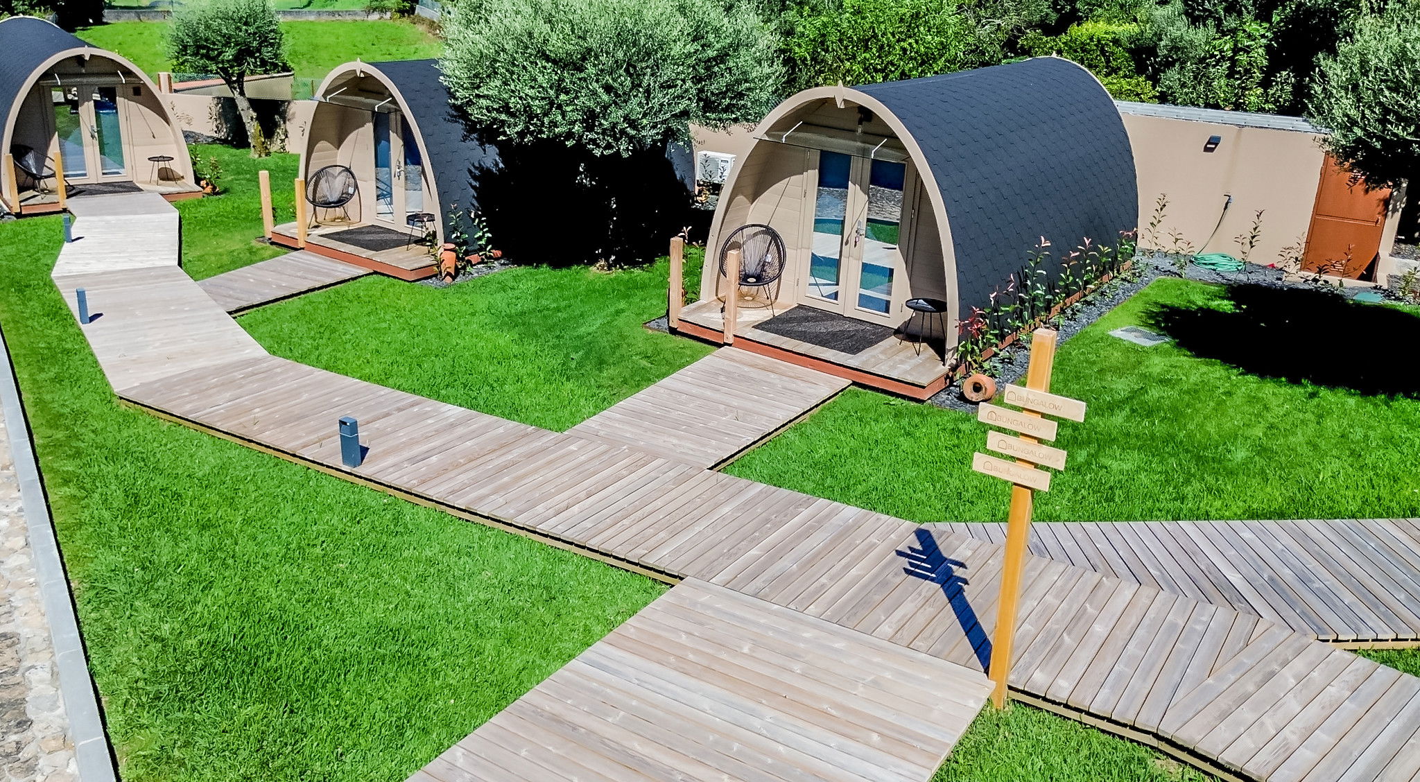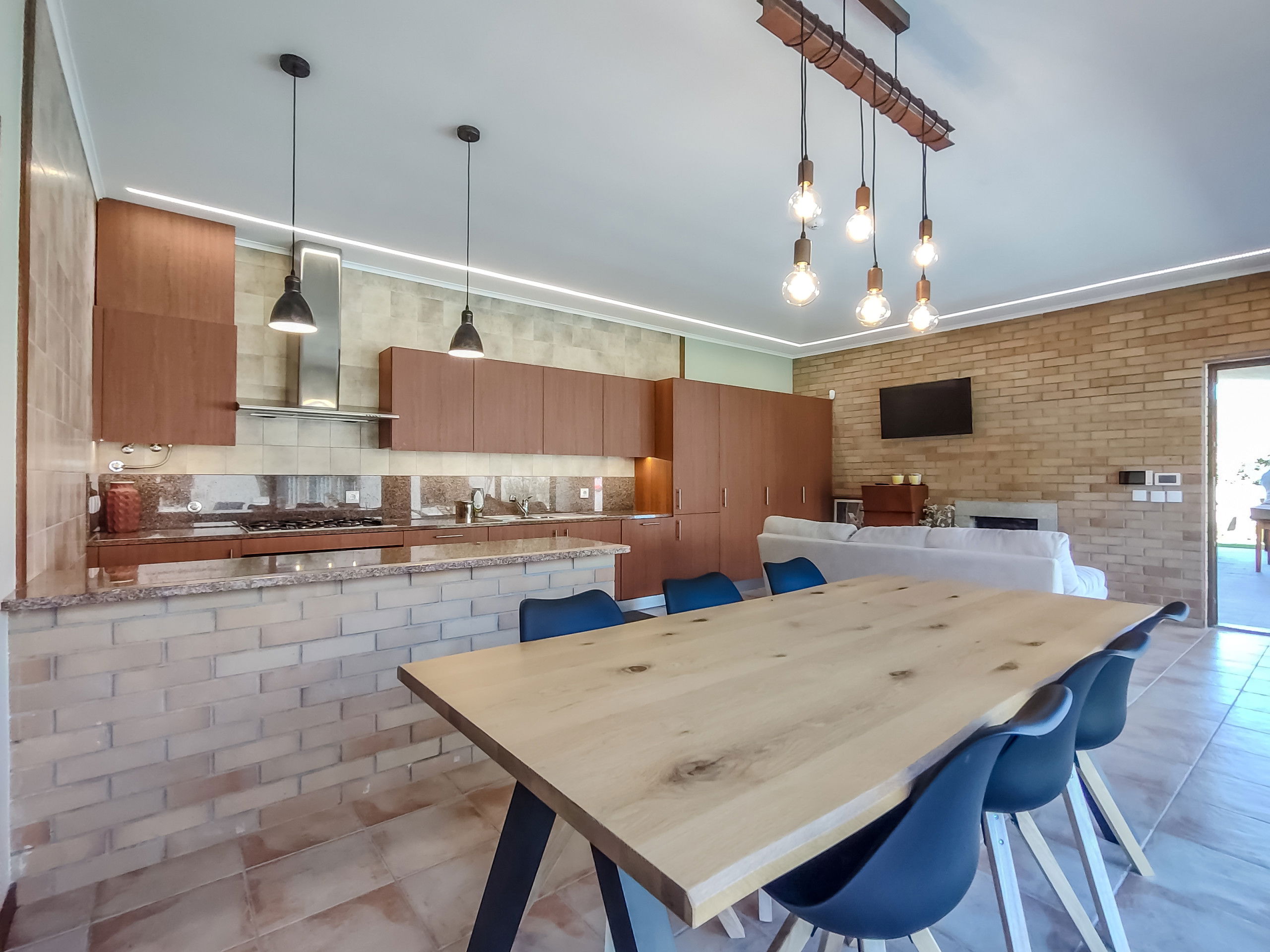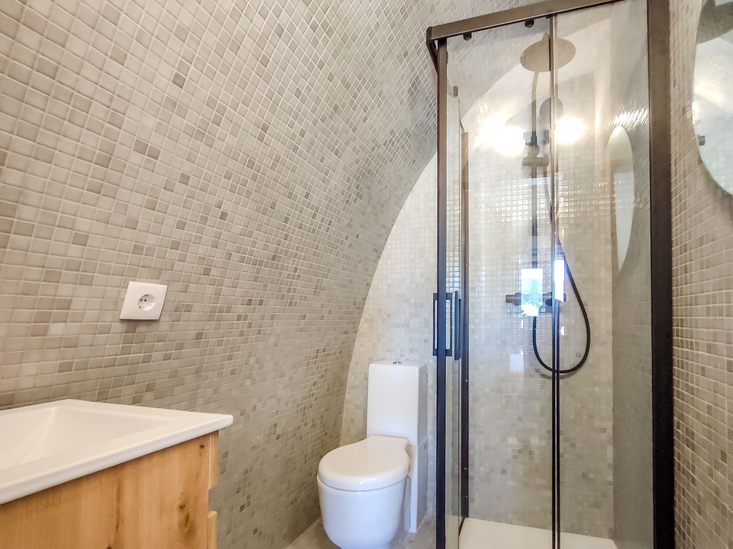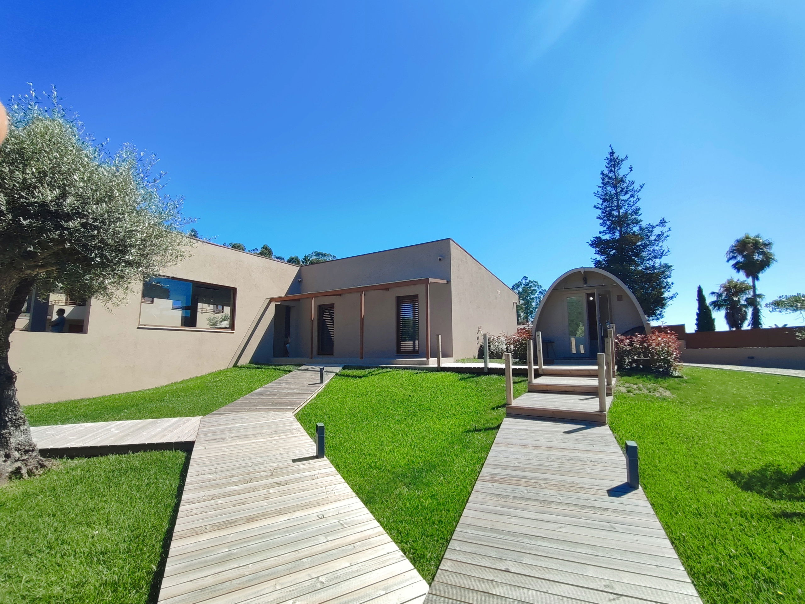 - A main two-storey house with a total of 3 bedrooms on the upper floor. One family suite with a private bathroom and an adjoining room for 1 to 2 children. Two double-bedded rooms with ensuite bathroom. The ground floor is designated for common areas such as the kitchen, living room, dining room, and a guest bathroom. The entire property is equipped with home automation for modern and personalized comfort.
