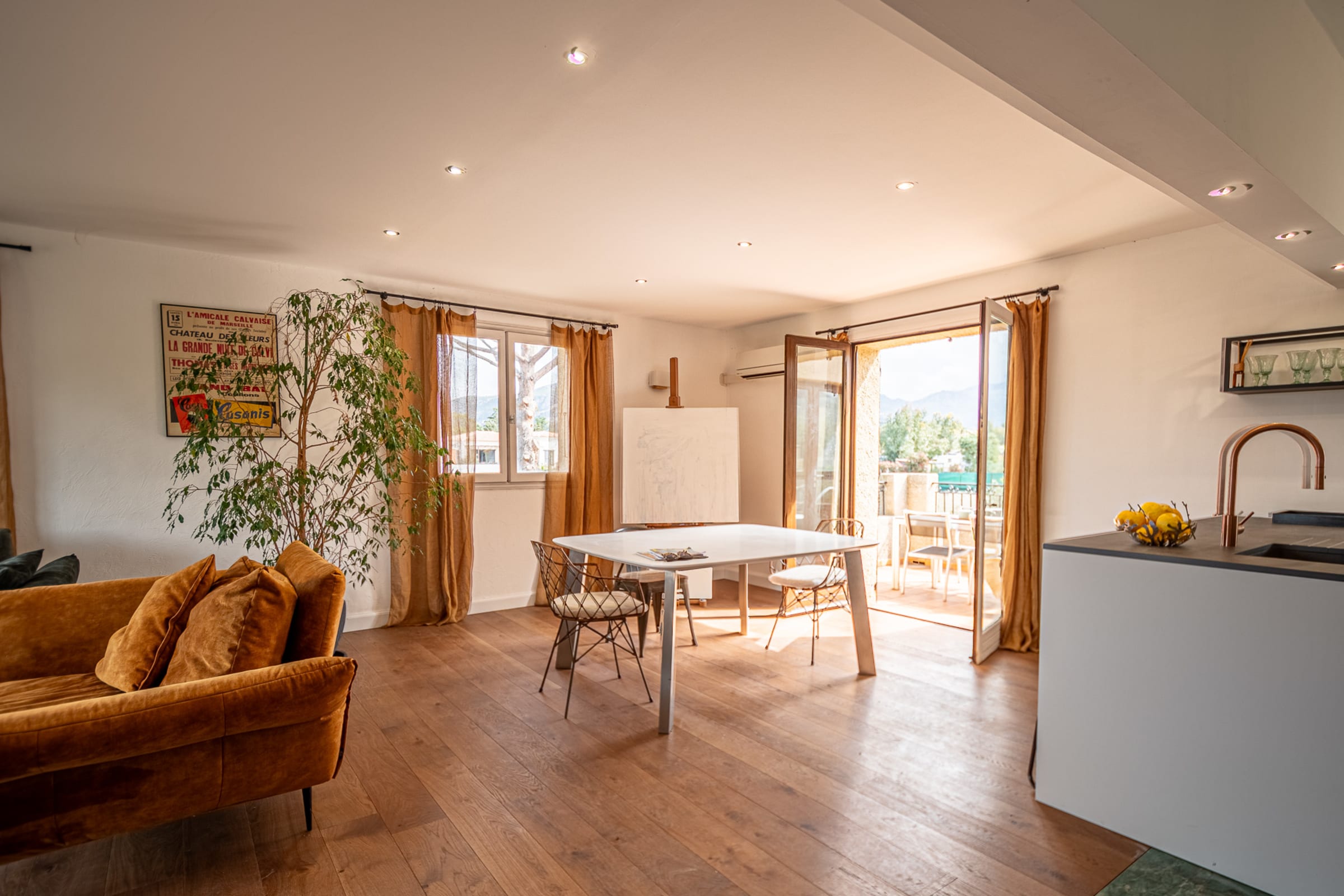 Welcome to your perfect Corsican getaway in Calenzana, a picturesque village located just minutes from the stunning beaches of Calvi. This beautifully decorated 3-room apartment is situated on the floor of a house that comprises just two units, ensuring peace and privacy.