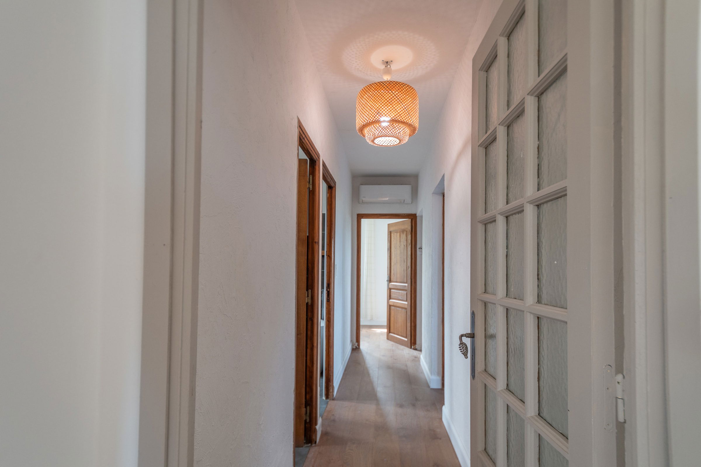 The flat features two cozy bedrooms, a modern bathroom, a bright living room and a fully equipped kitchen. Air conditioning is available in the main room and in the bedrooms corridor providing comfort even during the hottest months.