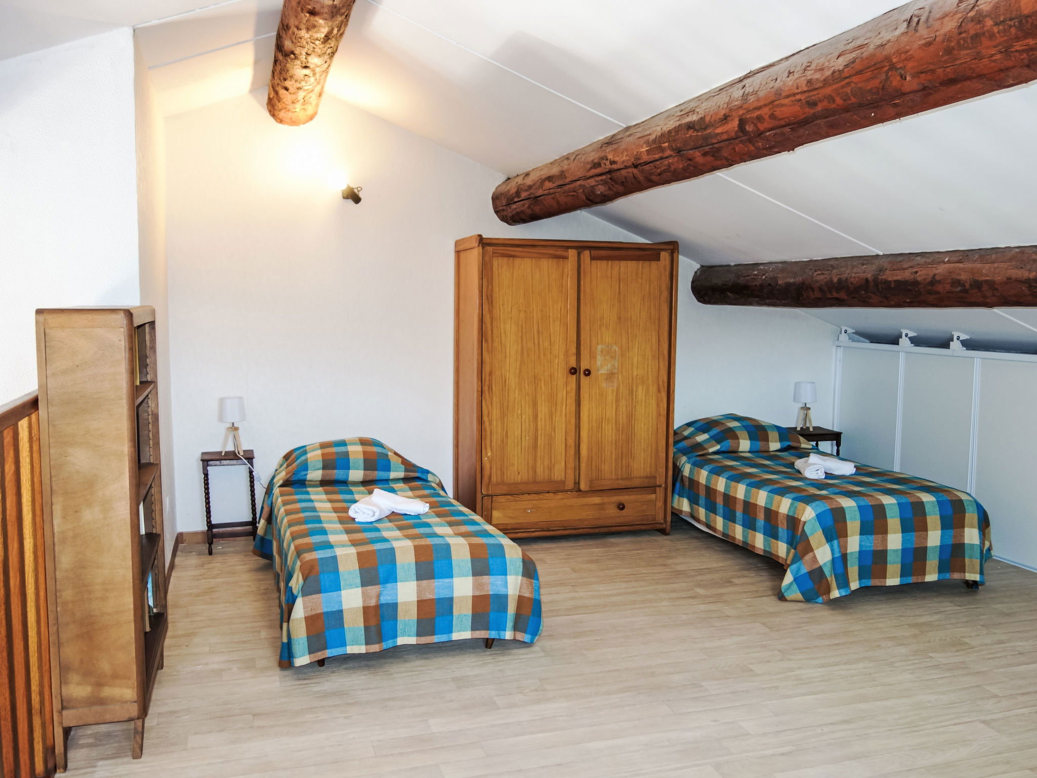 3-room apartment 77 m2 on 2nd floor. Comfortable and beautiful furnishings: living/dining room with TV (flat screen). Exit to the terrace. 1 room with 1 bed (100 cm, length 190 cm), 1 sleeping facility (80 cm, length 190 cm). Kitchen (mini-oven, dishwasher, 4 ceramic glass hob hotplates, toaster, microwave, freezer, electric coffee machine, Capsules for coffee machine (Dolce Gusto)). Exit to the balcony. Shower, sep. WC. Electric heating. Upper floor: (steep stair) large gallery with sloping ceilings, ceiling height 85 - 190 cm with 3 beds (80 cm, length 190 cm). Terrace 8 m2. Terrace furniture. Facilities: washing machine. Internet (WiFi, extra). Parking at the house. Please note: 1 small pet/ dog allowed. TV only FR. Smoke alarm. Offer by a private individual according to Art. 155, IV of CGI. 83112001641ON