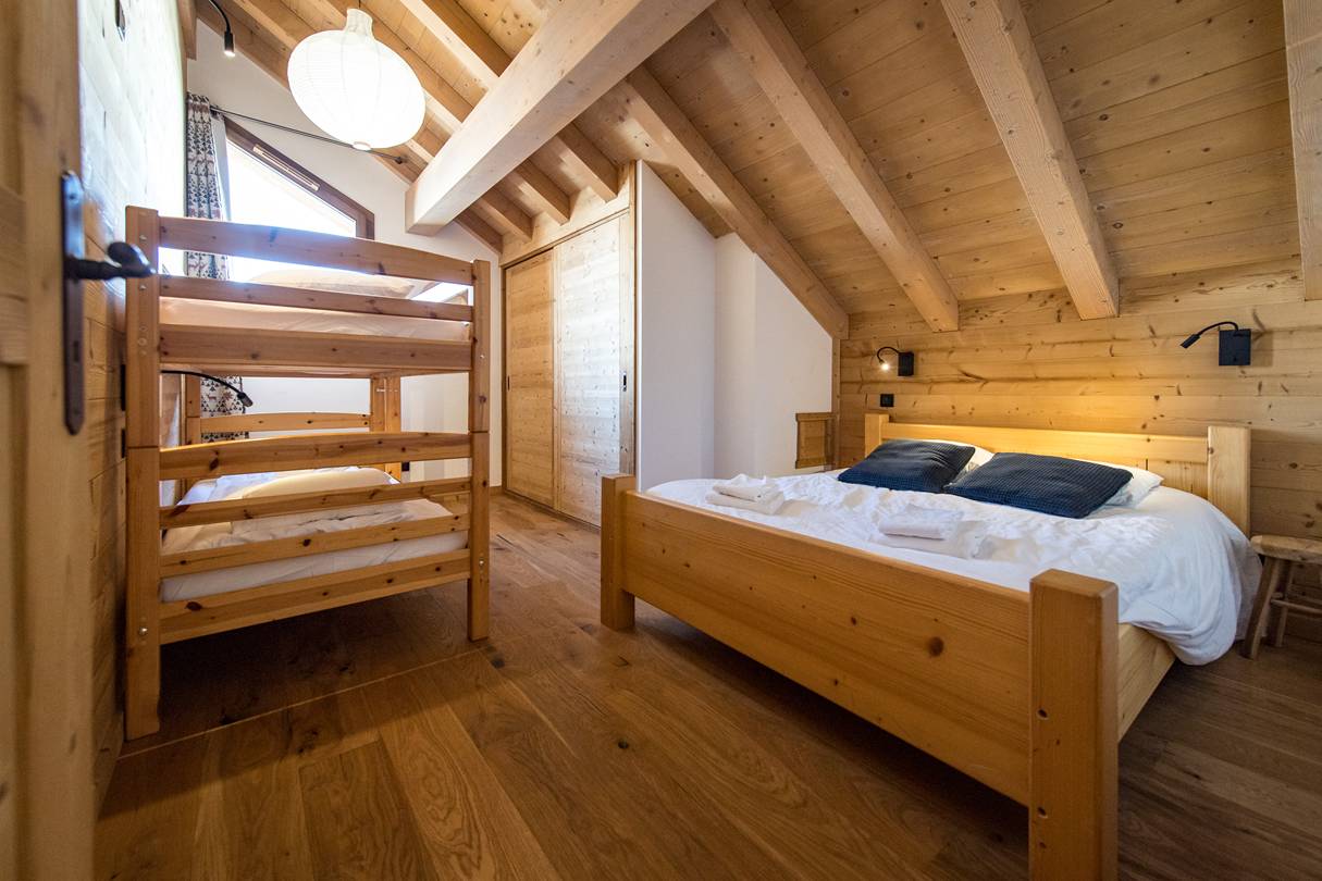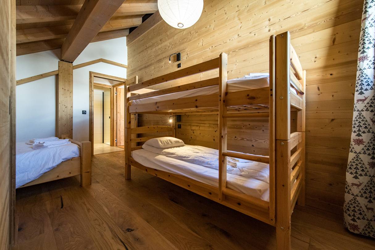 A large dormitory for 6 people with 2 90x190 bunk beds and oe 140x190 ed on the mezzanine (the sleeping area is not suitable for children under 6 years old). The dormitory has is own shower room.