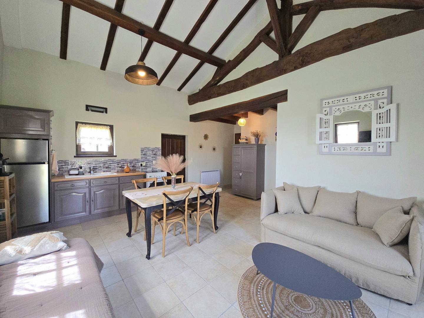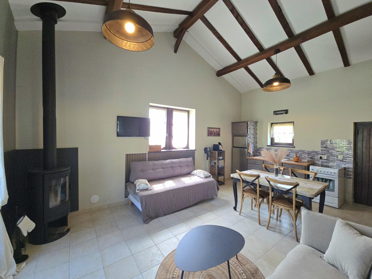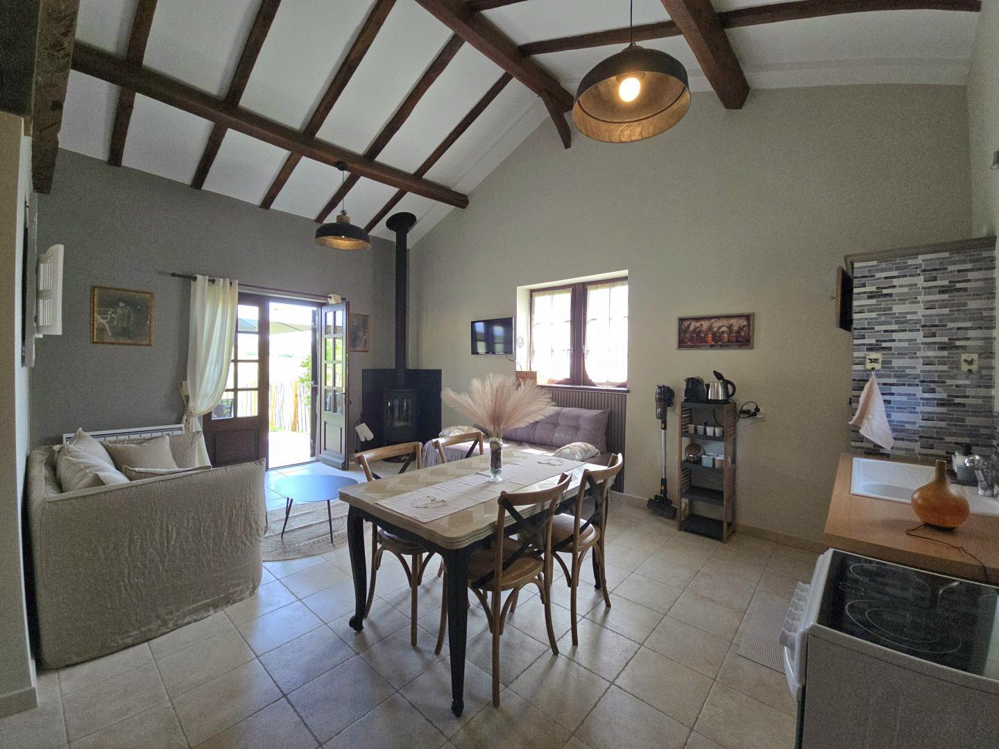 You will access a living room with a lounge area equipped with a sofa bed, a bench, a TV and a wood stove, internet. Then a kitchen area equipped with 4 ceramic hobs, oven, Nespresso coffee maker, fridge freezer... and a dining area. A separate toilet. You will have a bedroom with a 160x200 bed, and its adjoining bathroom, private with a shower, a sink and a washing machine. In front of the cottage you can enjoy a terrace with garden furniture, parasol, plancha. You will share with the owners an enclosed garden of approximately 2500m2 and a chlorine swimming pool measuring 8x4, with a depth of 1m60, secured by a bar cover, open from mid-May to the end of September. The cottage is adjoining the owners' garage and close to their home.