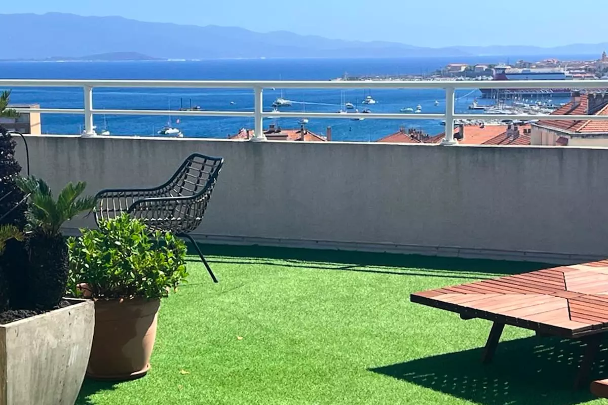 Exclusively, you will particularly appreciate, day and night, its exceptional fully equipped 350m2 roof terrace with parasol, electric awning, garden furniture, dining table and chairs, teak sun loungers. All this with a breathtaking 360 degree view over the entire bay of Ajaccio, the mountains and the city.
