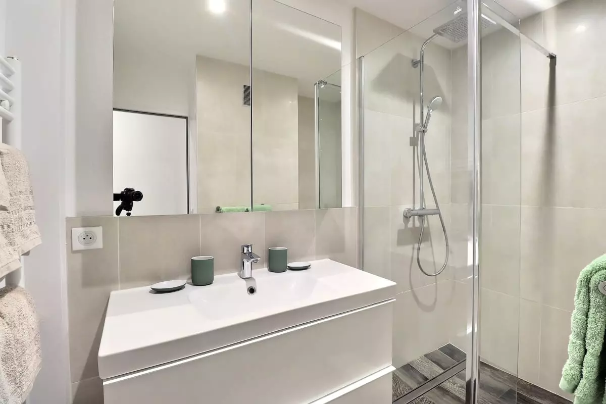 For your nights, the apartment features three separate bedrooms, each carefully furnished. Each room is equipped with a double bed and a large closet for your belongings. One of the bedrooms, a true suite, even has a private bathroom and a balcony, perfect for starting the day gently.