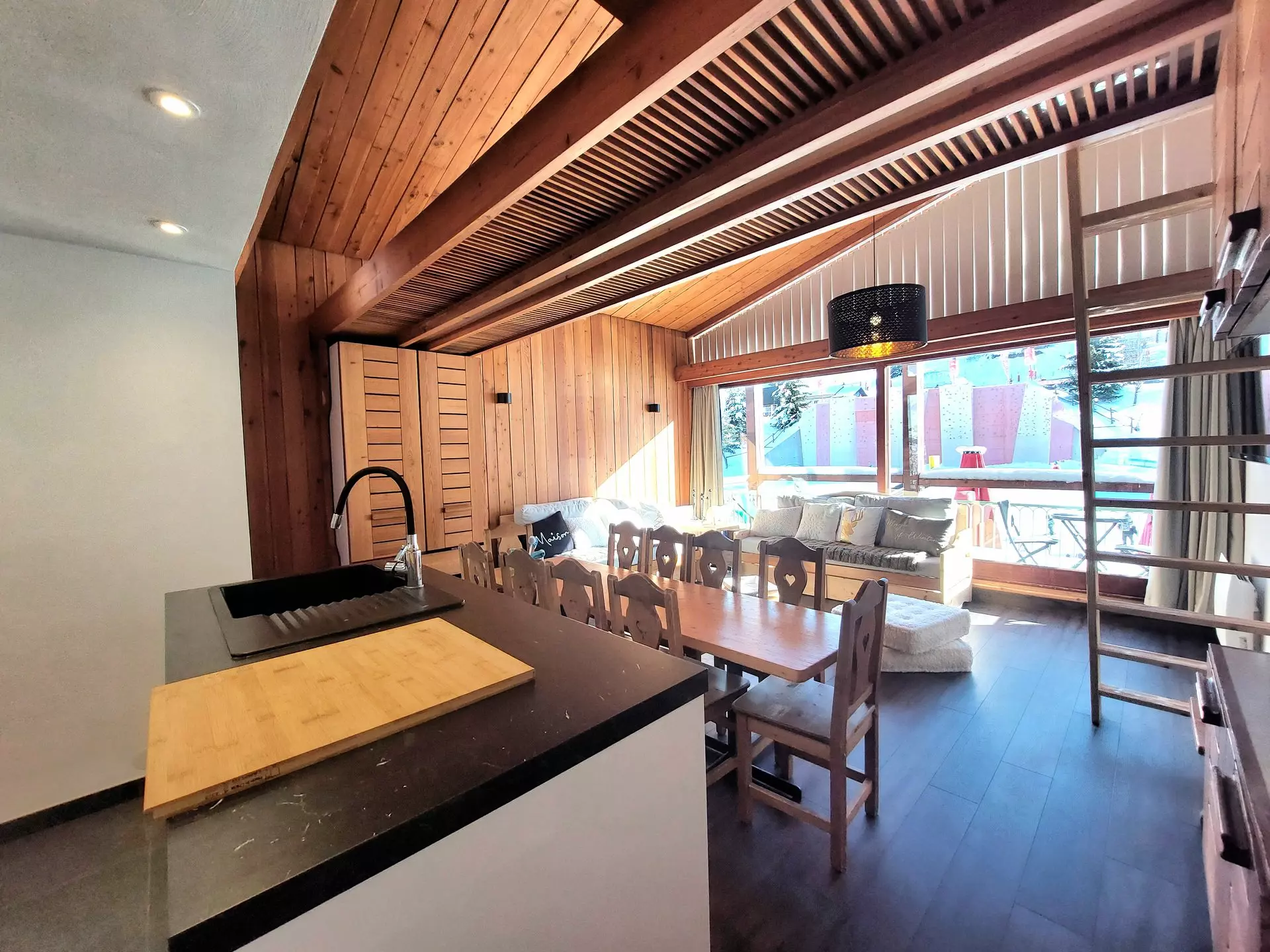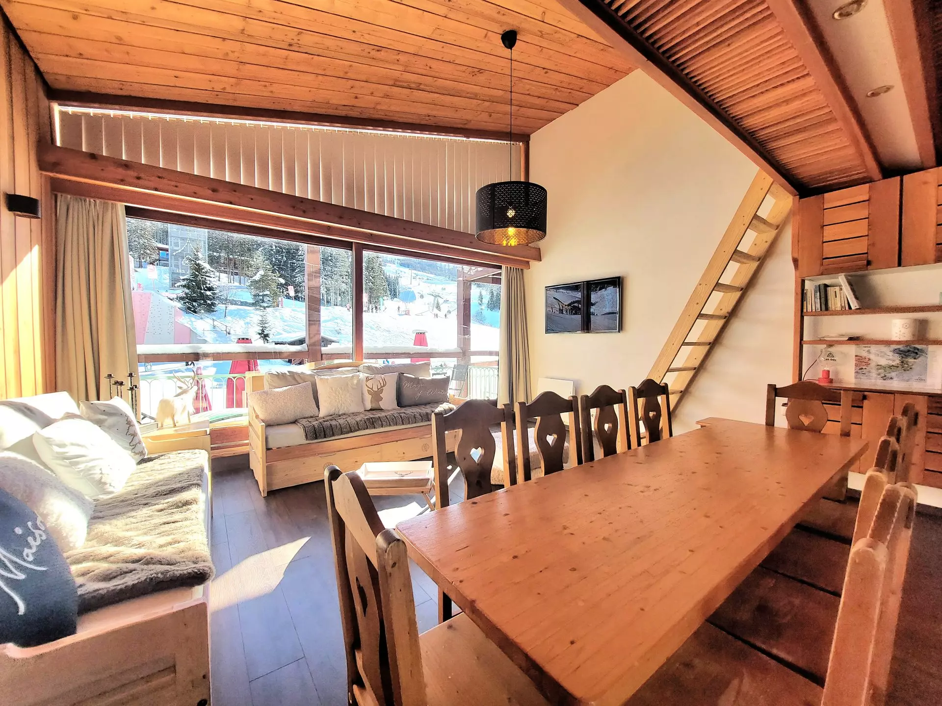 Renovated apartment for 8/9 people, located at the foot of the slopes and shops, gable-end and crossing, on the 1st and last floor (no elevator) of the Tournavelles 1 residence, with a surface area of 57m², panoramic view of the slopes and valley.