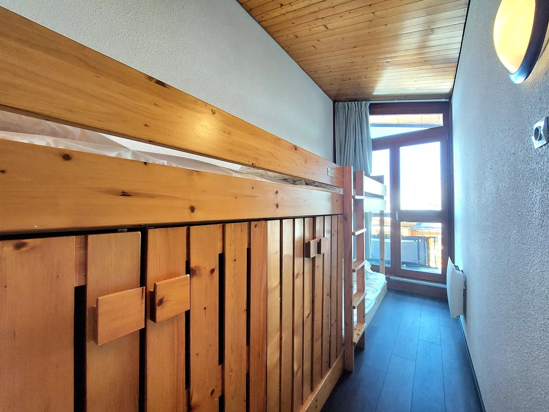 Bedroom 2 with 2 high beds and 1 single bed.