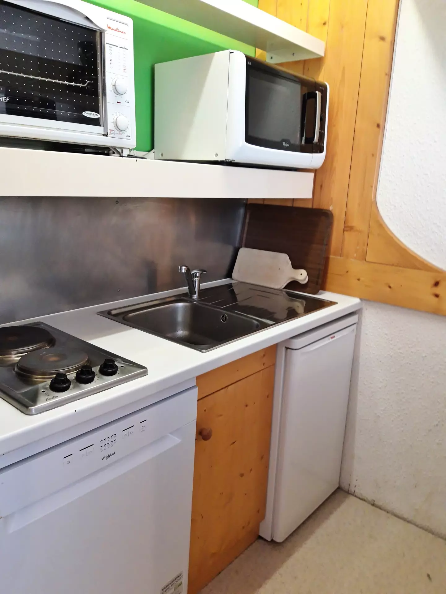 The kitchen includes: 2 electric hotplates, mini oven, microwave, dishwasher, refrigerator, filter coffee maker and kettle.