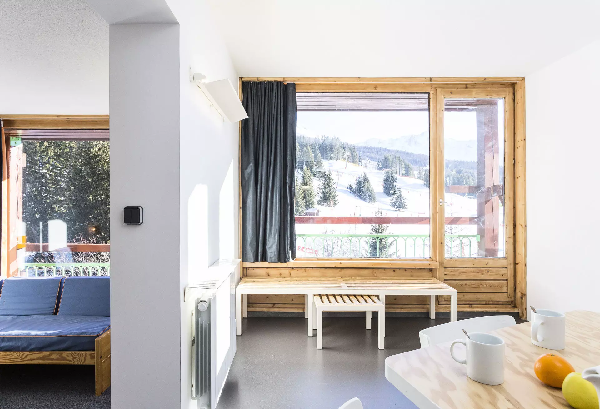 Renovated 3-room cabin apartment of 54m² for 6/7 people, south-facing, on the 15th floor of the Lauzières du Charvet residence, at the foot of the slopes and shops. With 2 balconies.