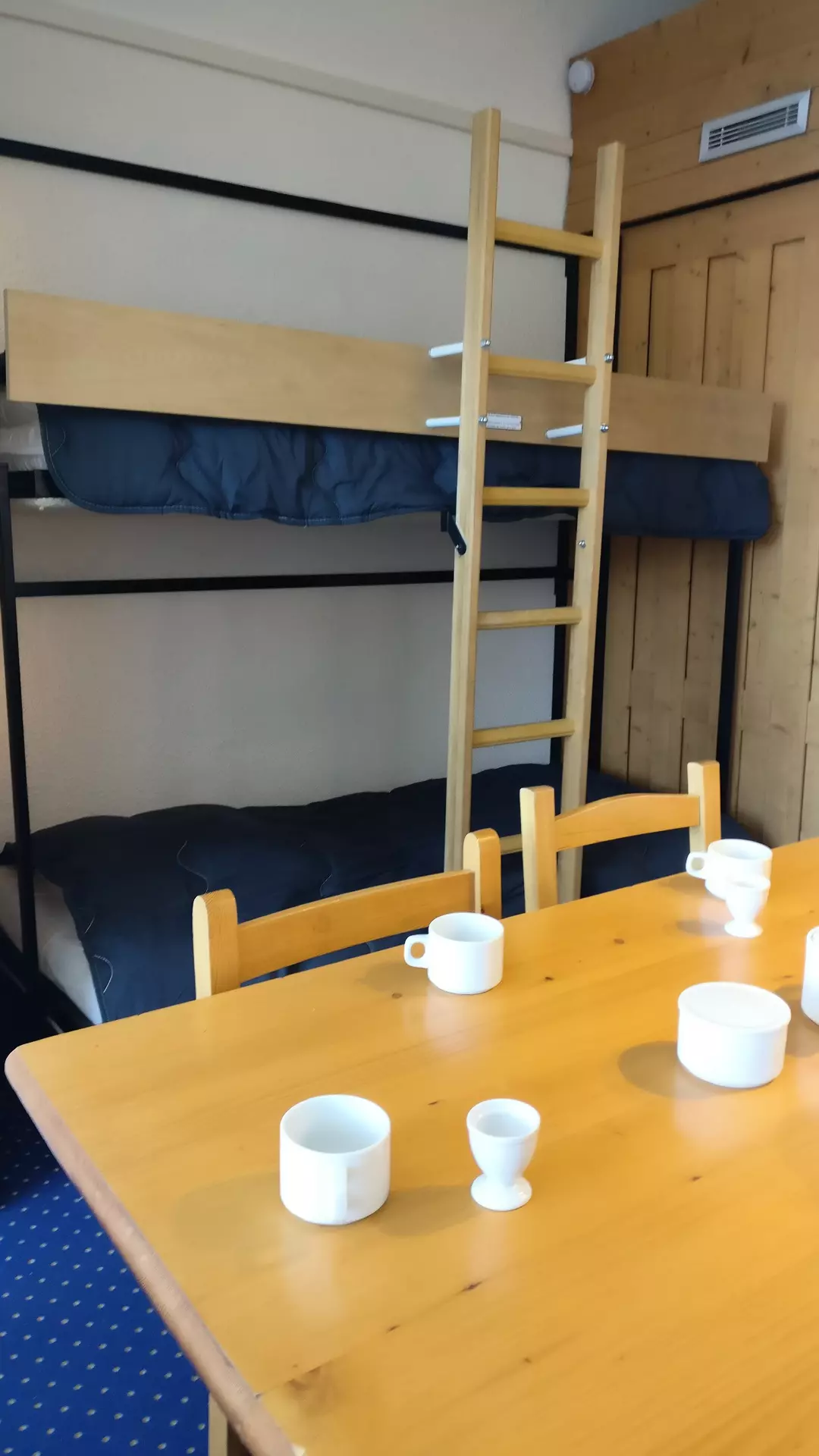 Living room with an alcove and 2 bunk beds, a dining table and 2 sofa beds and TV