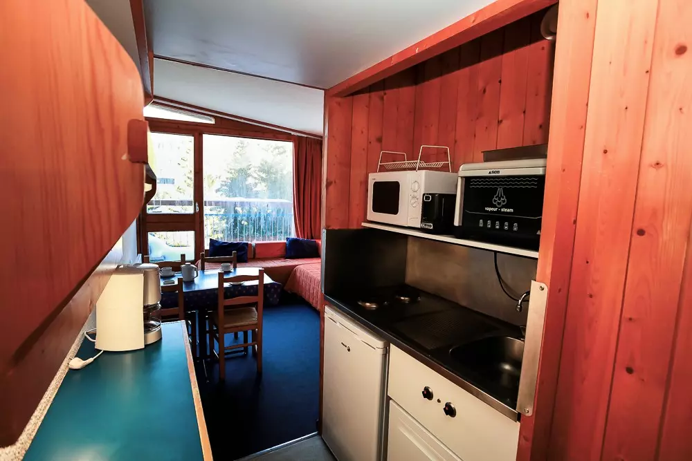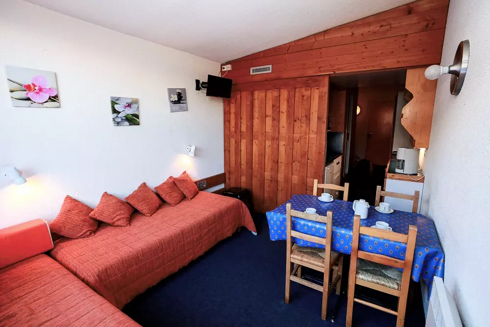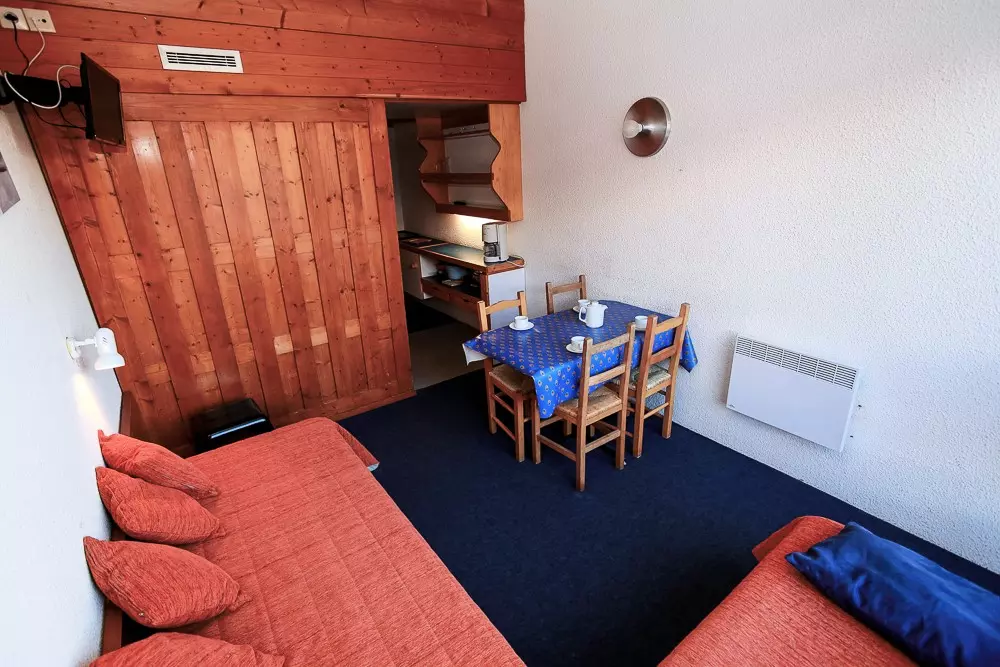 Studio with mountain corner comprising an entrance equipped with 2 bunk beds (the bed is not suitable for children under 6 years old).