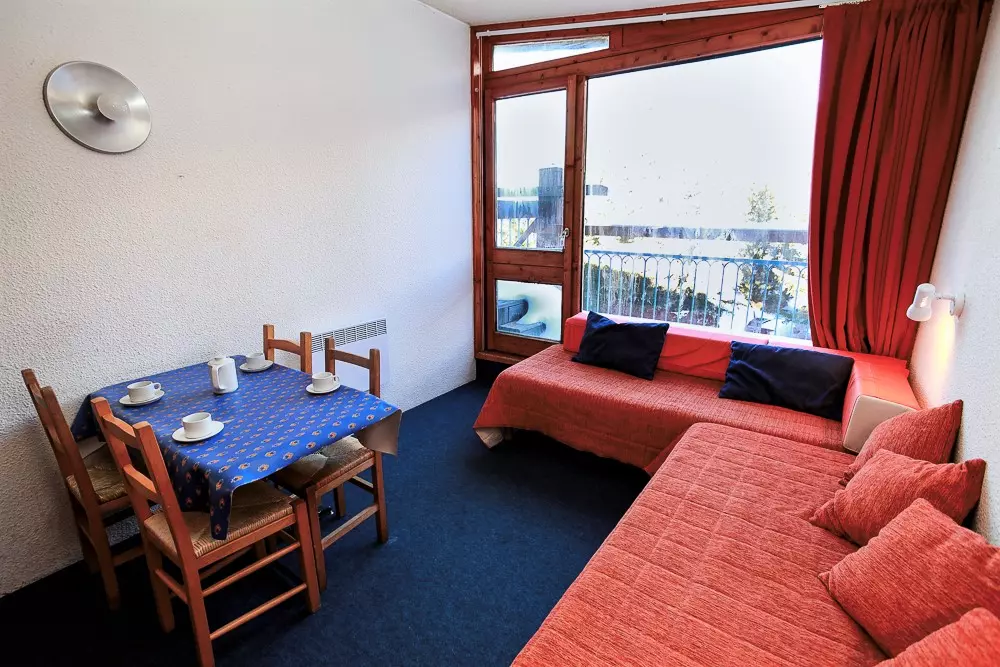 25m² mountain corner studio for 4 people, facing northeast on the 11th floor of the Belles Challes du Charvet residence, at the foot of the slopes and shops. With balcony.
