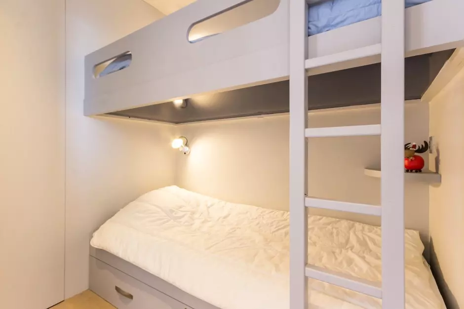 Cabin area separated by a sliding door with 2 bunk beds (the upper bunk is not suitable for children under 6 years old)