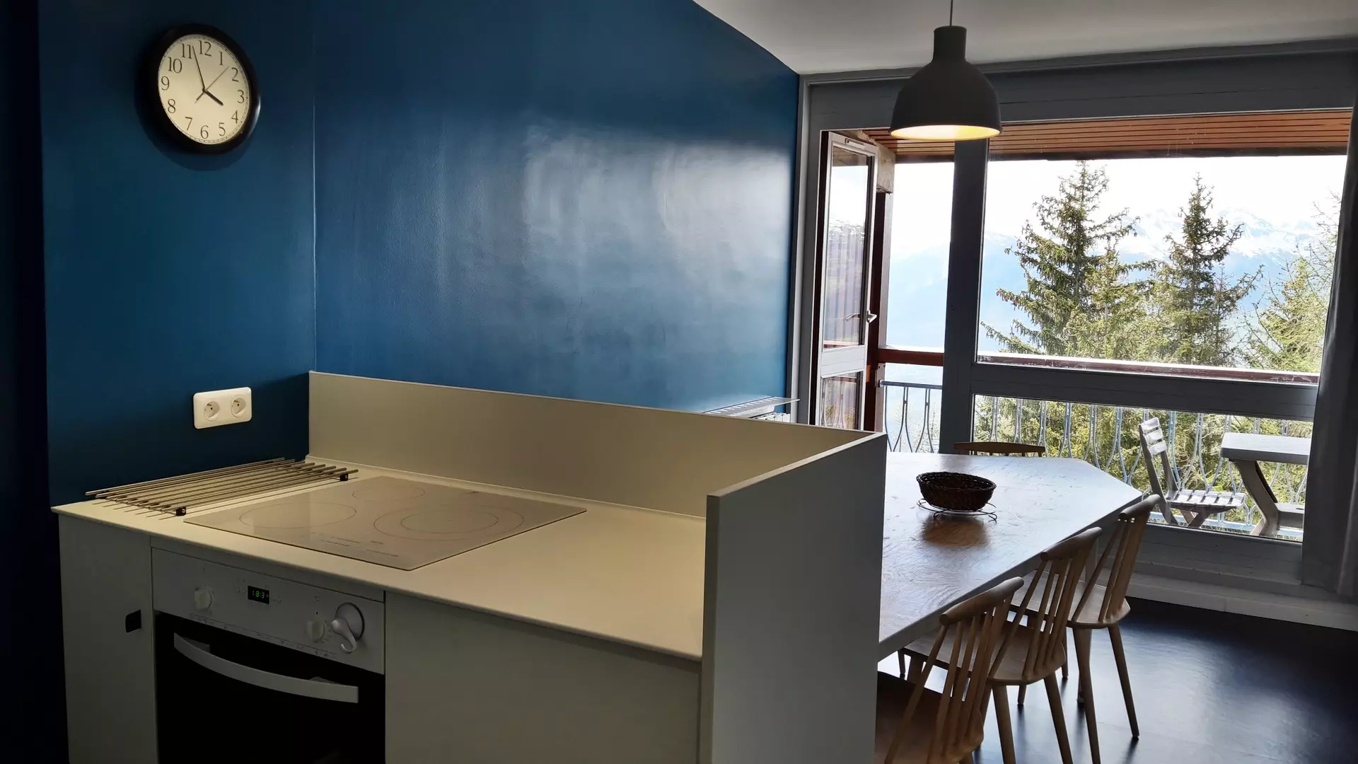 Three-room furnished apartment for 7/8 people, with a surface area of 54m², located on the 8th floor of the Thuria residence, with a west-facing balcony.
