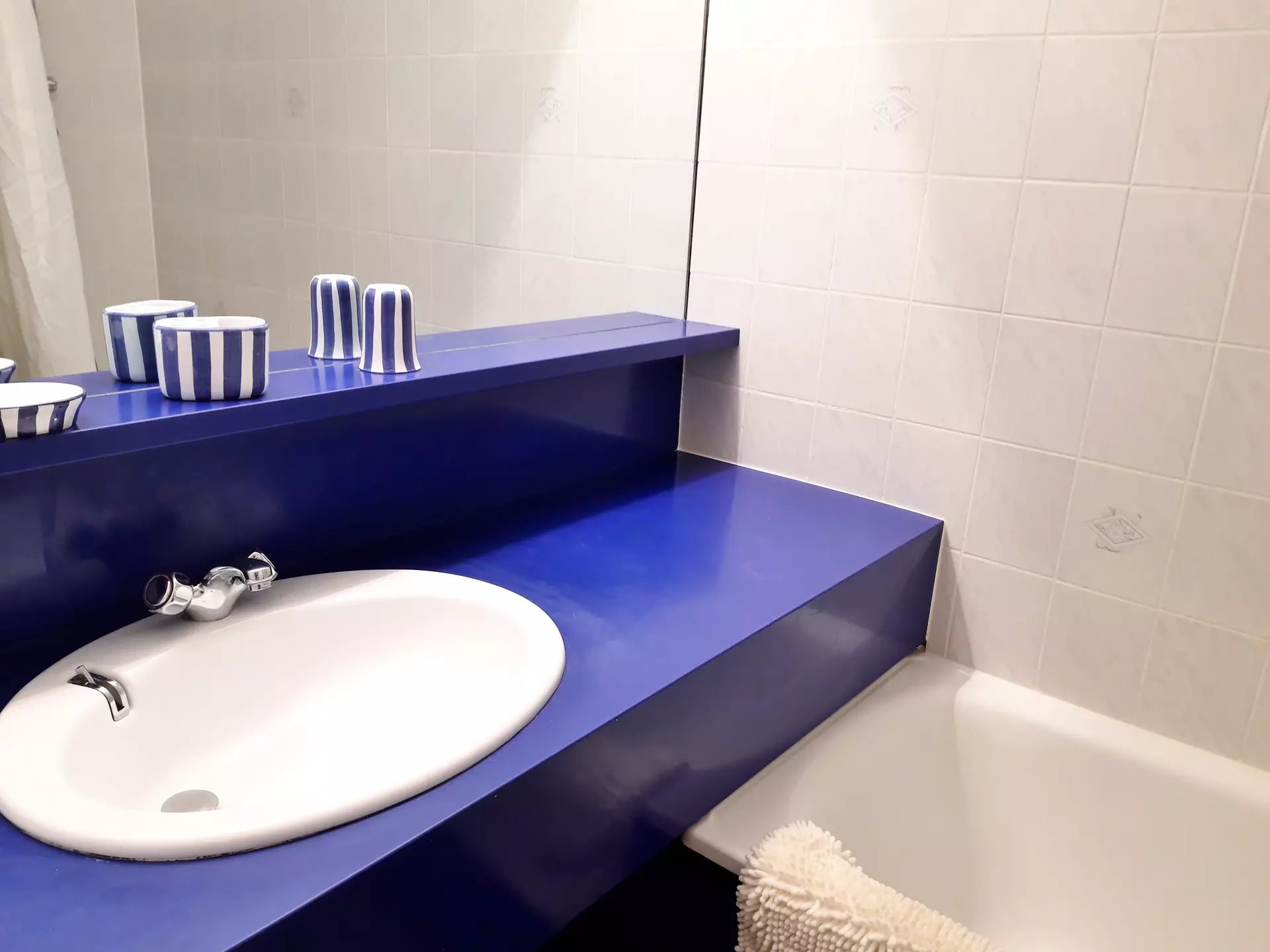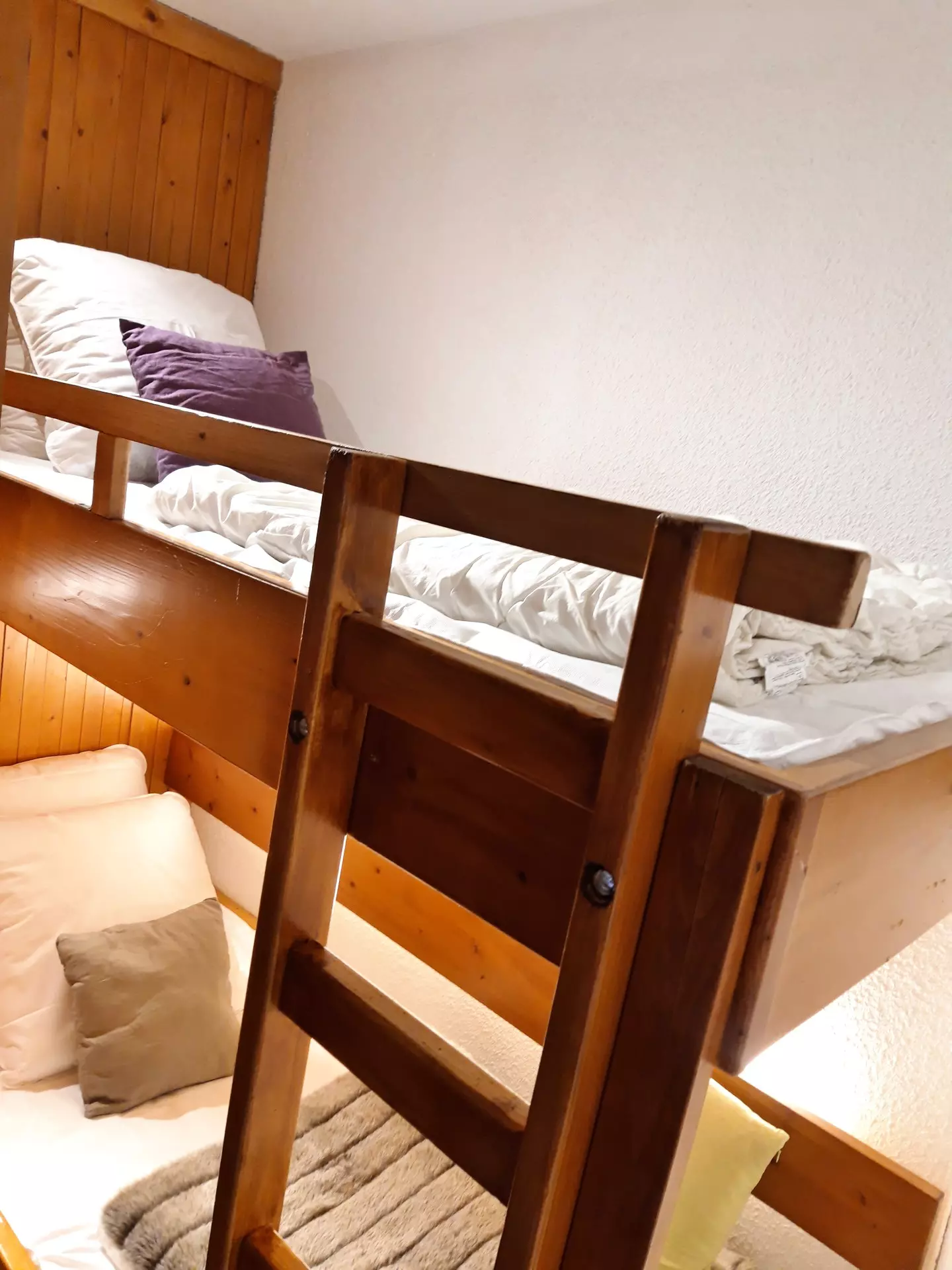 It is composed of a cabin area, separable from the living room by a sliding door with 2 bunk beds of 80cm (the upper bunk is not suitable for children under 6 years old)