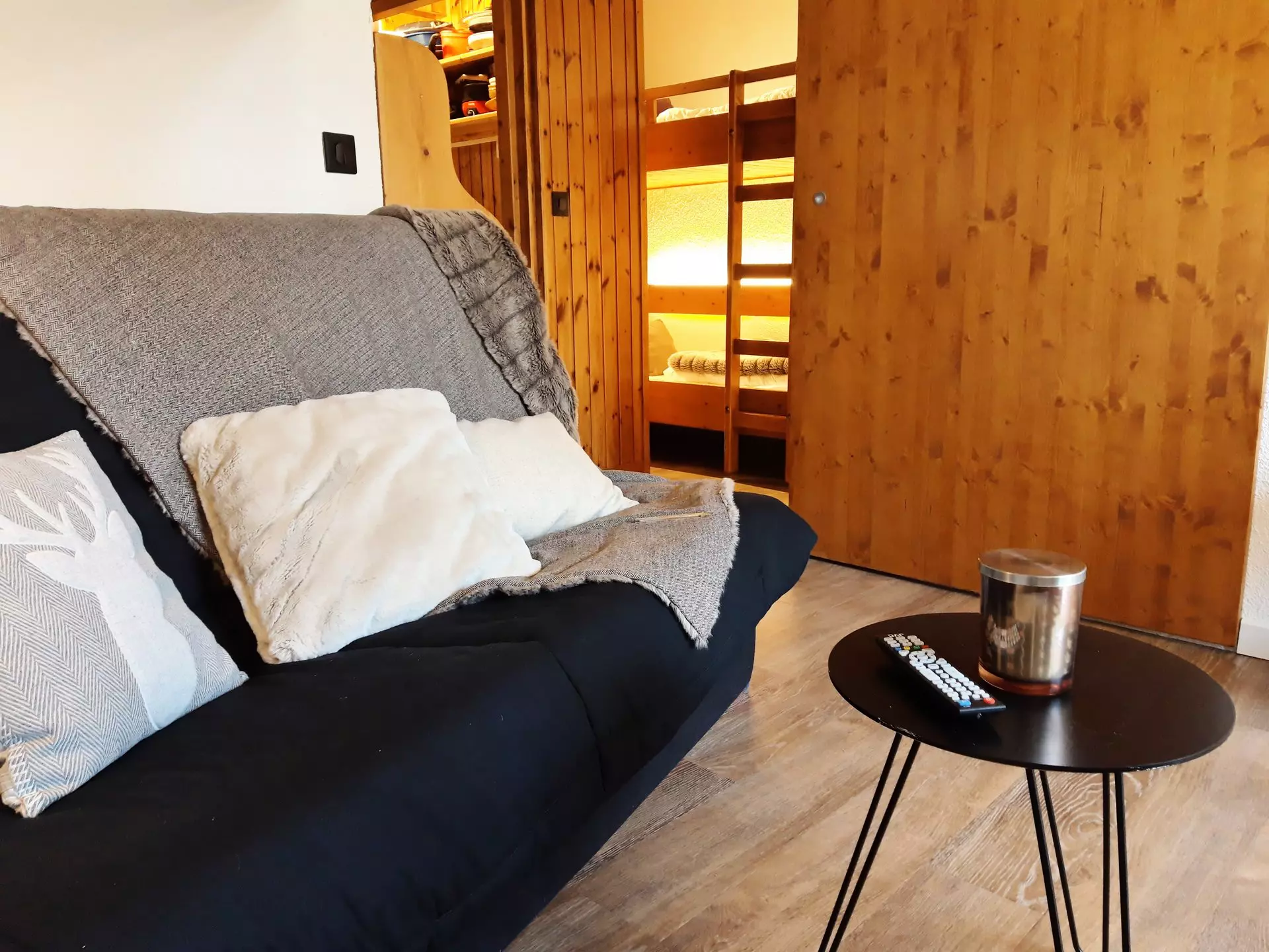 The living room is equipped with a CLIC-CLAC convertible bed and TV