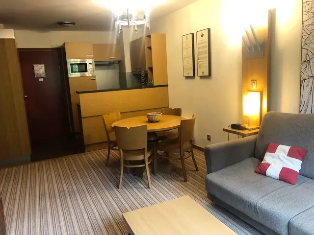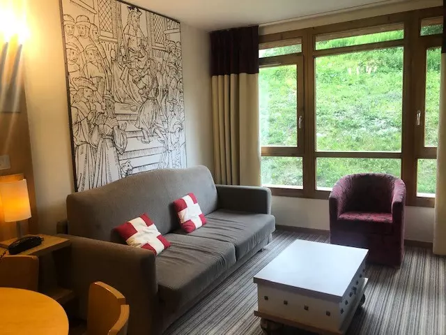 2-room apartment equipped for 4 people, with a surface area of 37 m², located in the Les Souverains residence, in Les Arcs 1800, east-facing balcony.