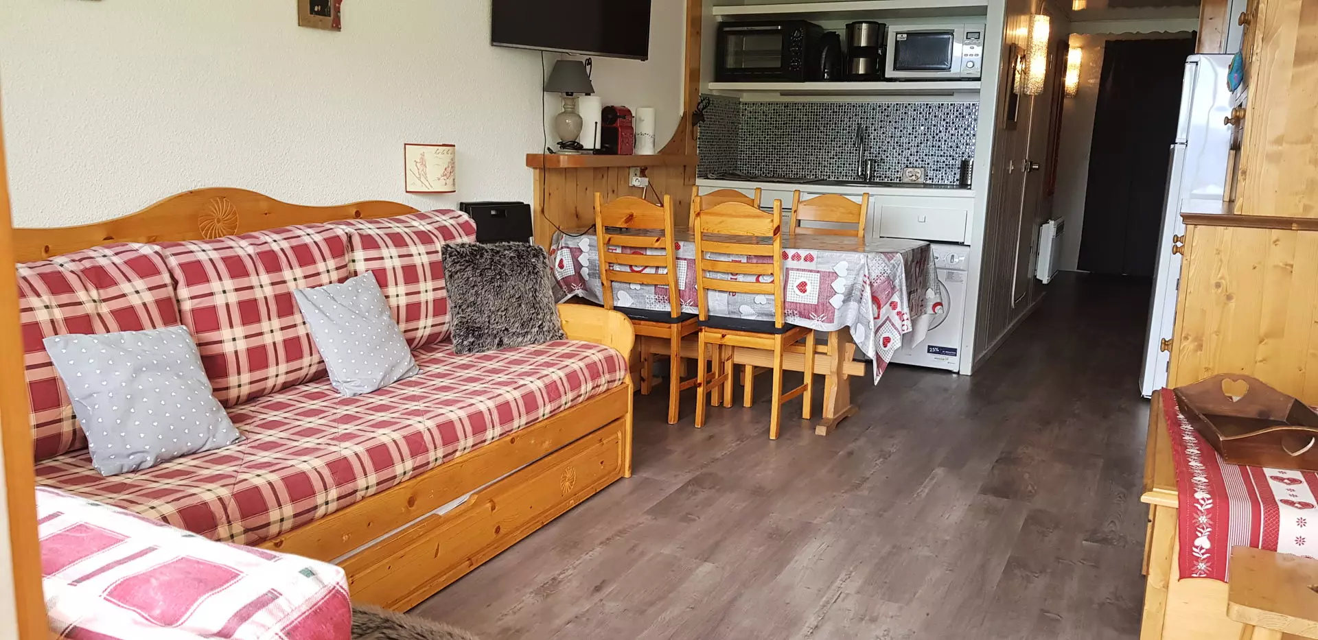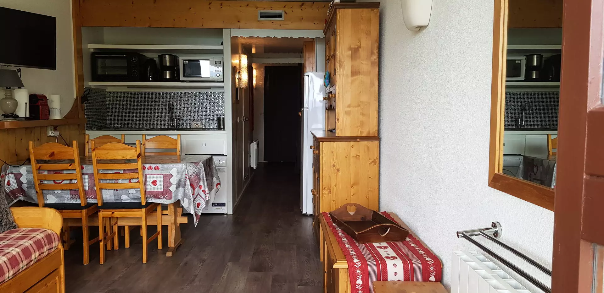 This 30m² studio, which can accommodate up to 5 people, is located on the 2nd floor of the Pierra Menta residence, a residence with elevator.