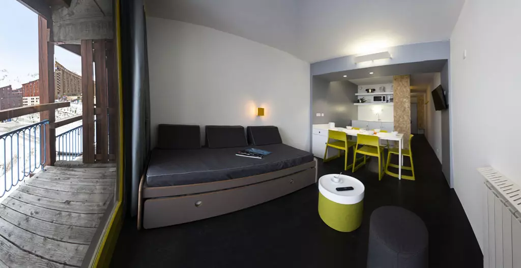 Renovated and colorful cabin studio with a surface area of 29m² for 5 people, located on the 10th floor of the Varet 3 residence, balcony facing South/South-East with view of the resort and the slopes