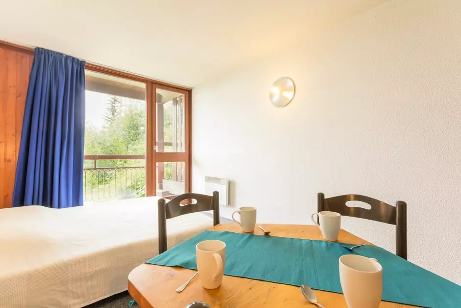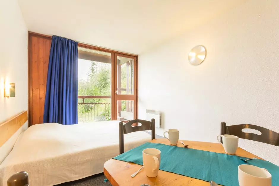 28m² studio cabin, equipped for 5 people, located on the 5th floor of the Varet 2 residence, with a North/North-West facing balcony with a view of Mont Blanc.